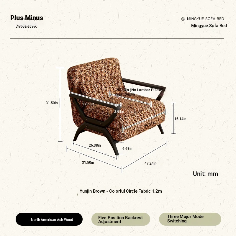 {Moon Multifunctional Sofa Bed} North American Ash * Garden Brown-Circle Yarn 47.24 in Shipment Period 90 Days
