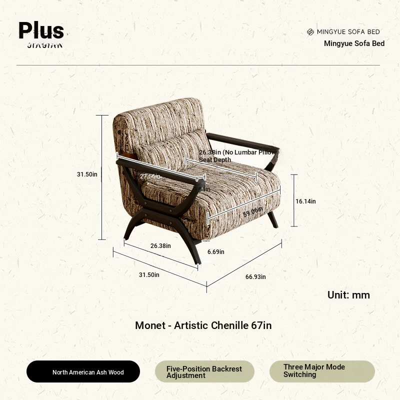 {Moon Multifunctional Sofa Bed} North American Ash * Monet-Art Chenille 66.93 in 90 Days