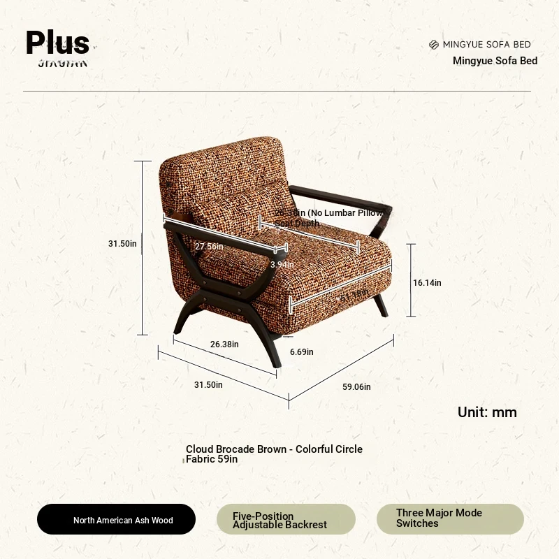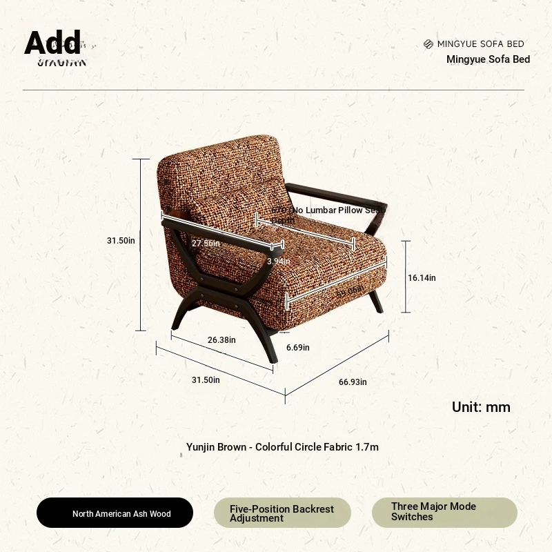 {Moon Multifunctional Sofa Bed} North American Ash * Garden Brown-Circle Yarn 59.06 in Shipment Period 90 Days