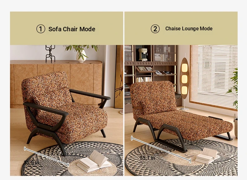 Adjustable Multi-Functional Foldable Sofa Bed in North American Ash Wood - Vintage Style Perfect for Small Living Rooms