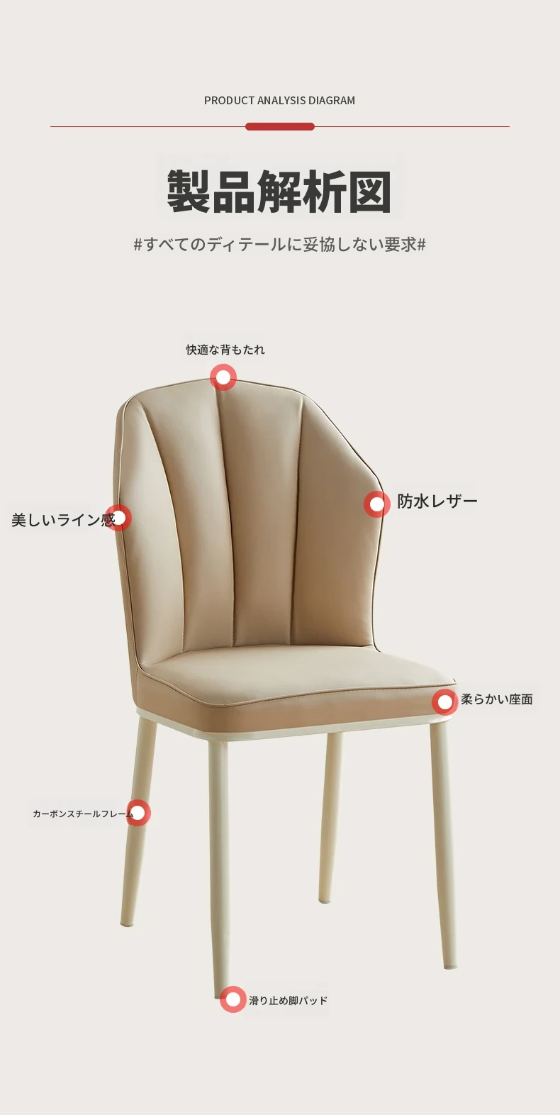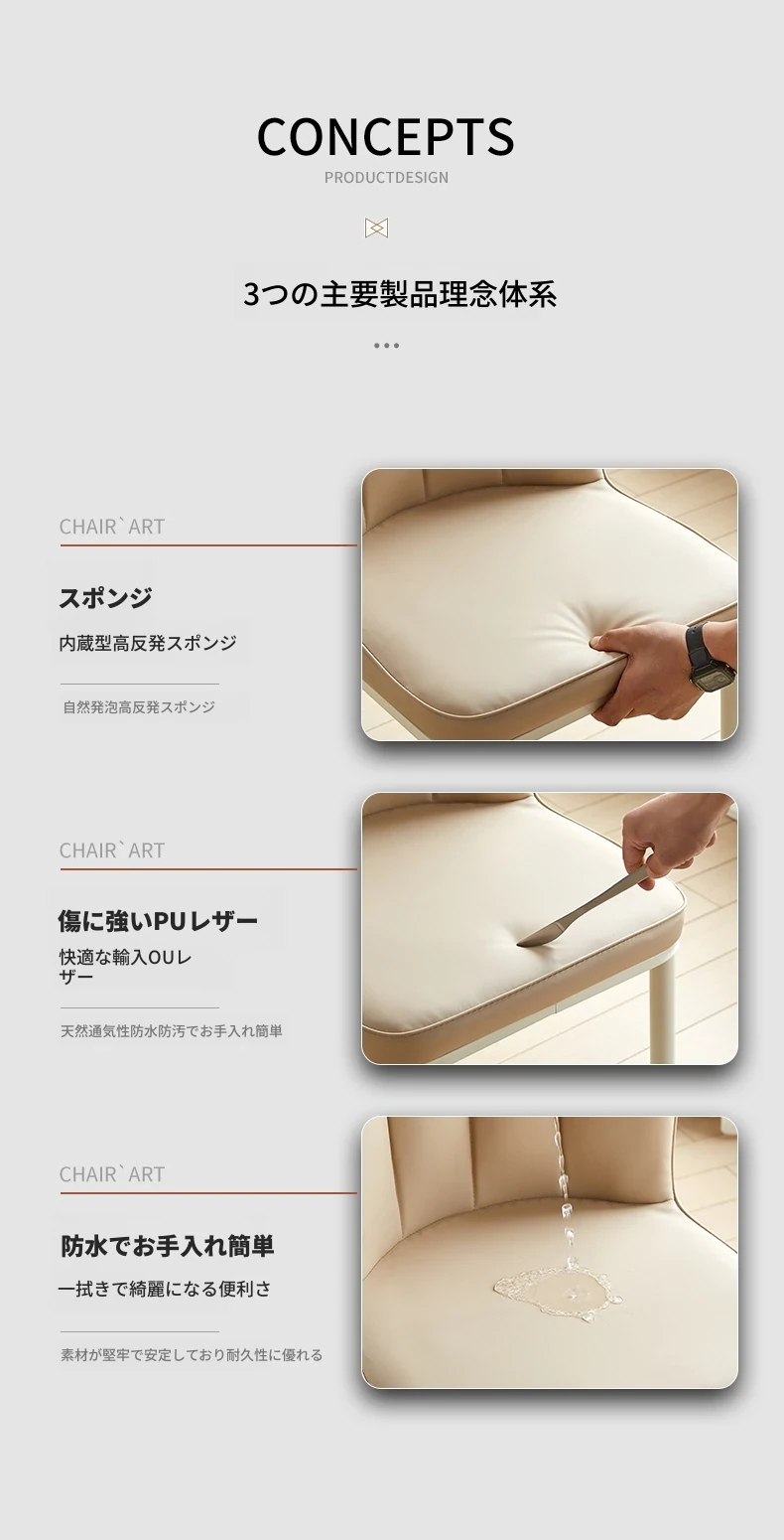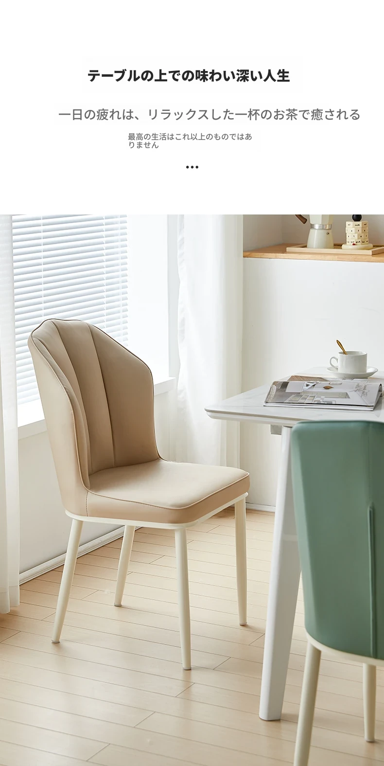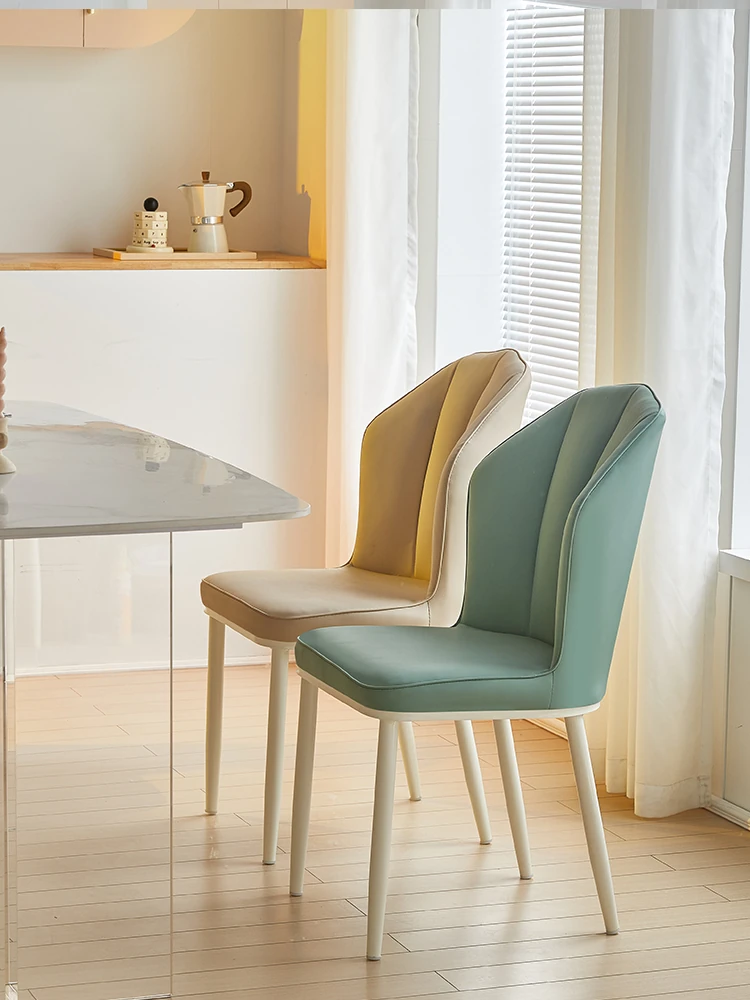 クリーミーな風合いのモダンなダイニングチェア - シンプルでスタイリッシュなデザイン、快適なソフトパッケージ背もたれ。家庭用として最適なデザイナーチェアで、リラックスできる空間を演出します!