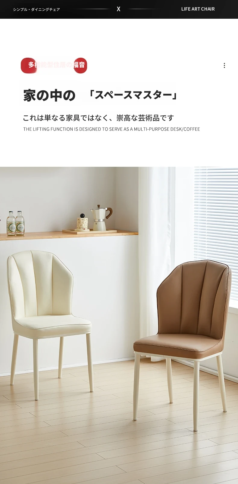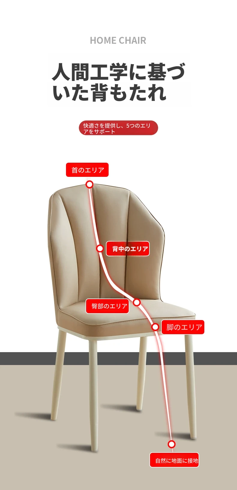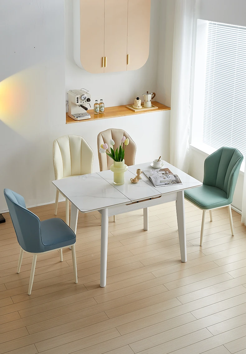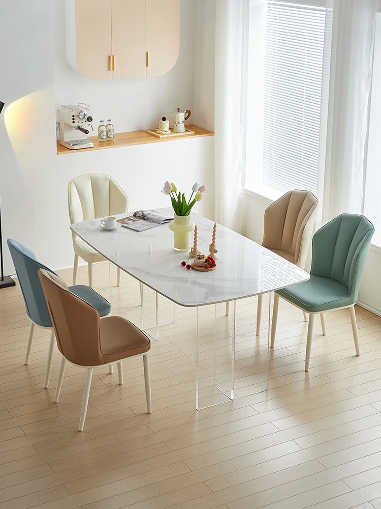 クリーミーな風合いのモダンなダイニングチェア - シンプルでスタイリッシュなデザイン、快適なソフトパッケージ背もたれ。家庭用として最適なデザイナーチェアで、リラックスできる空間を演出します!
