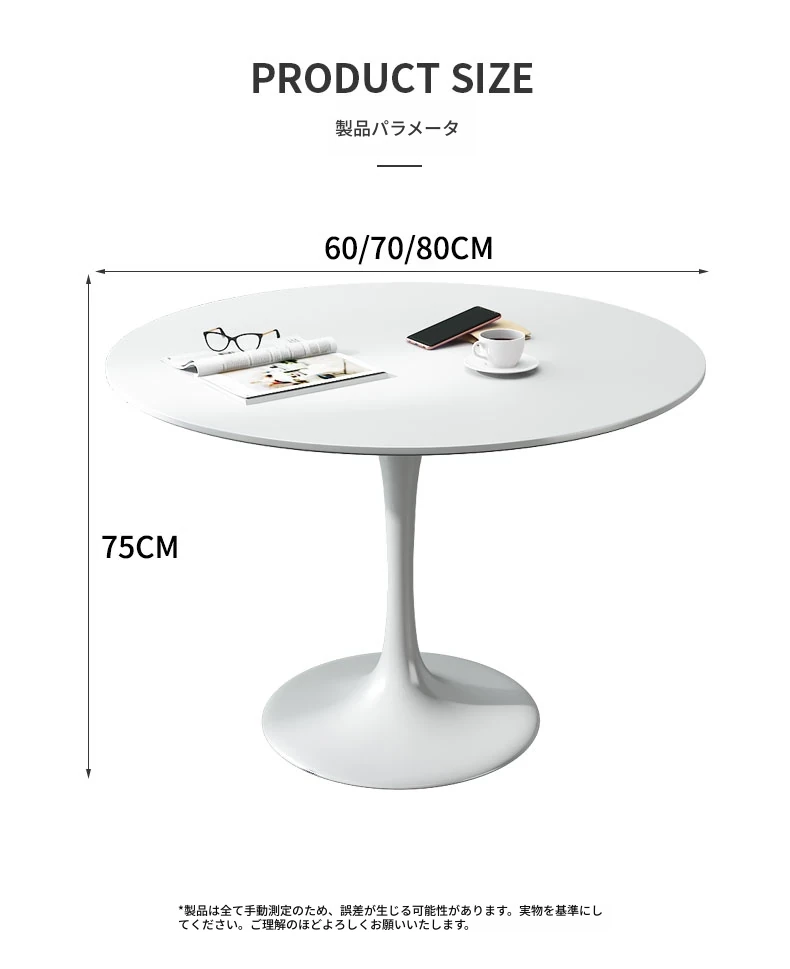直径80センチの白色ラウンドテーブル
