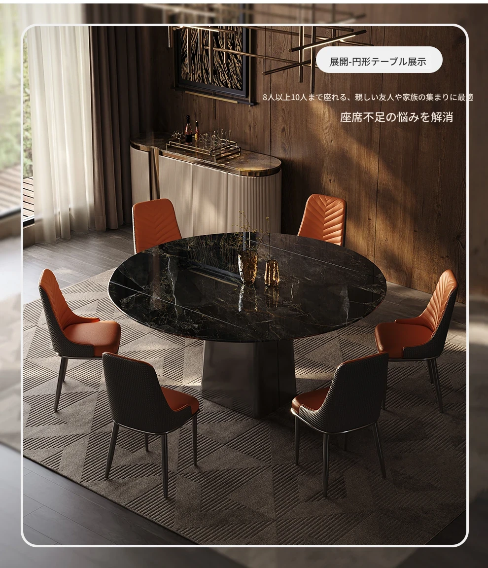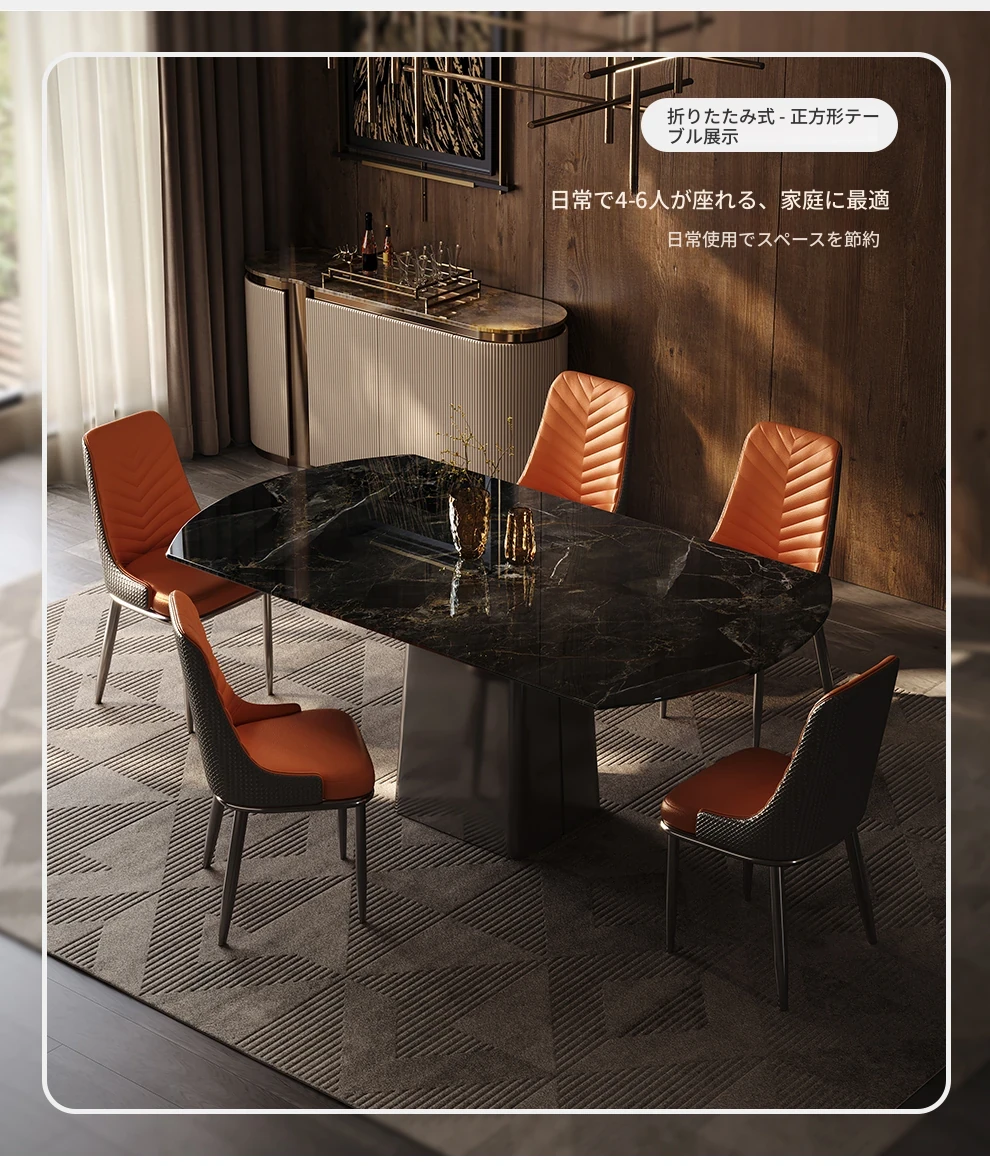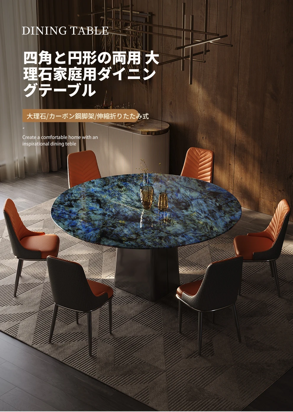 イタリアンライトラグジュアリー大理石ダイニングテーブル 微晶石回転伸縮可能 丸型・角型両用 2025年新作 テーブル&チェアセット 食卓に最適!