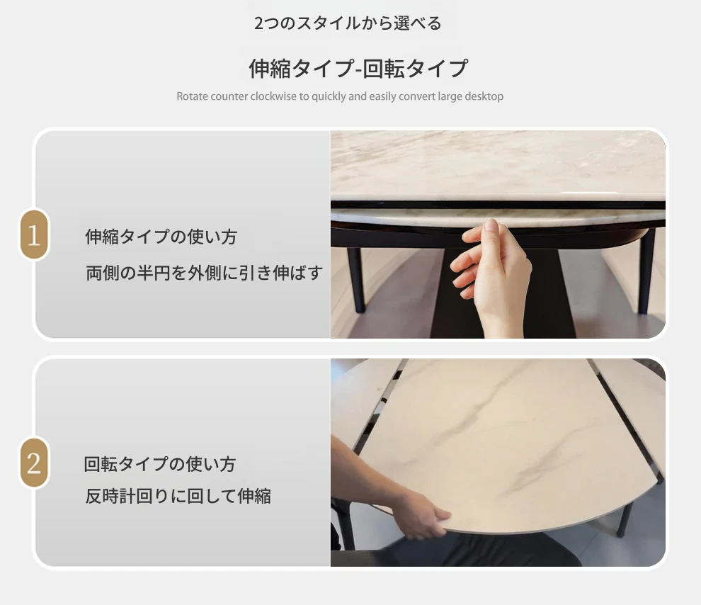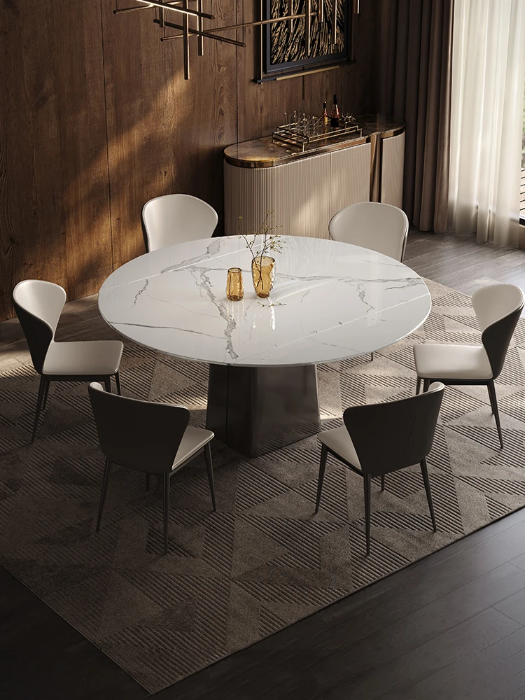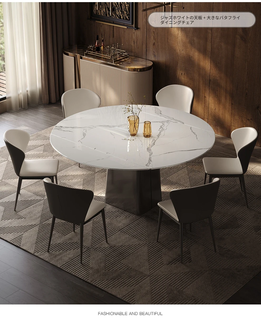 イタリアンライトラグジュアリー大理石ダイニングテーブル 微晶石回転伸縮可能 丸型・角型両用 2025年新作 テーブル&チェアセット 食卓に最適!