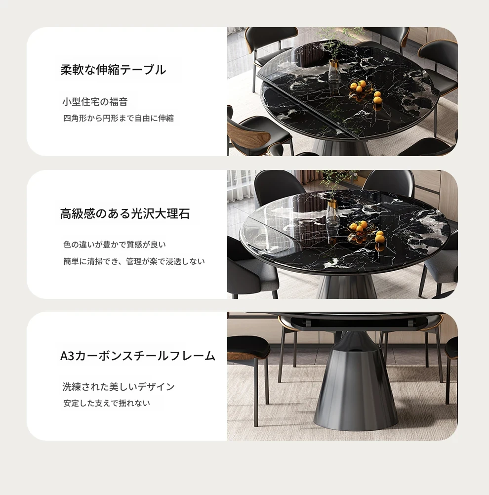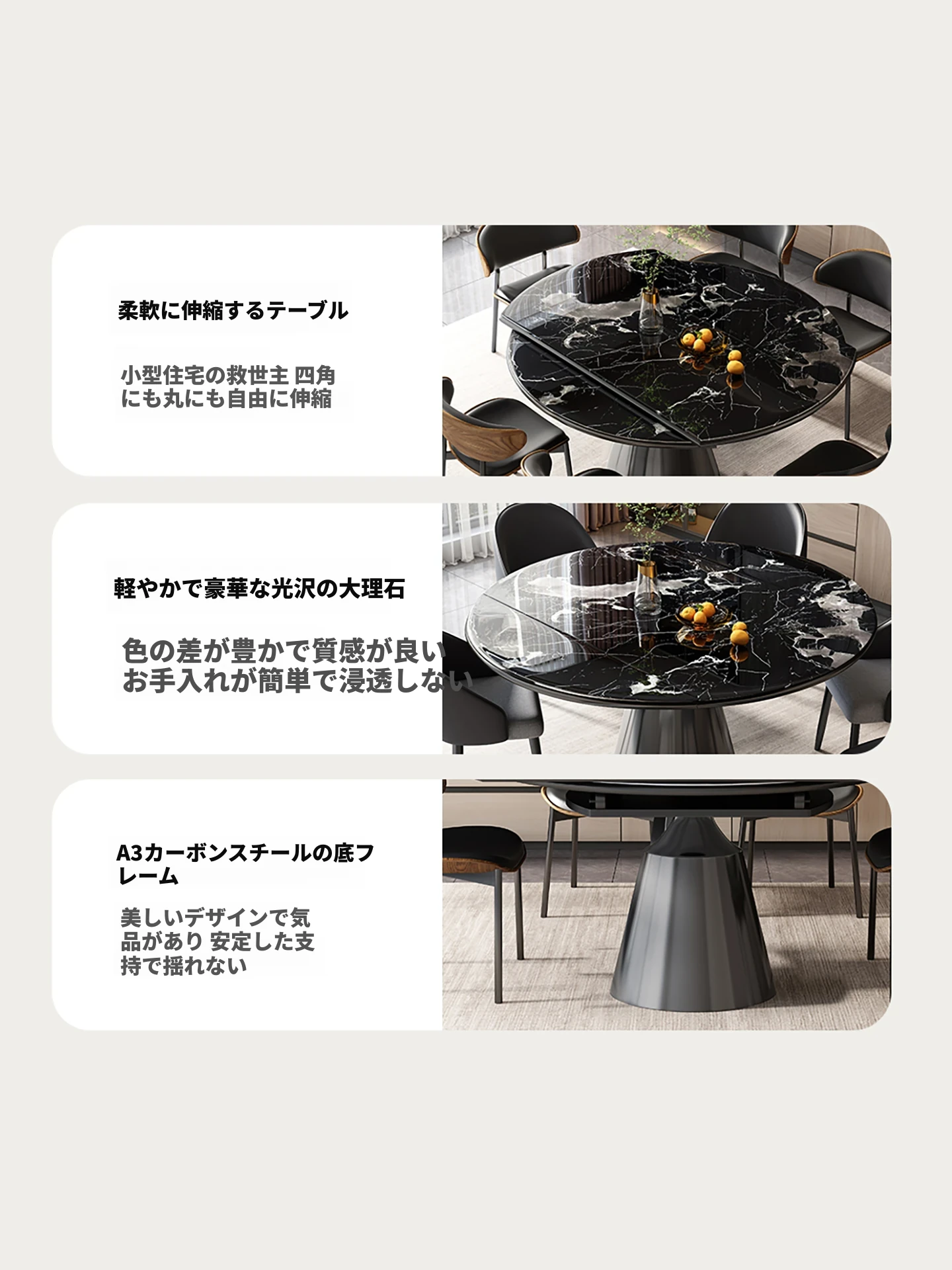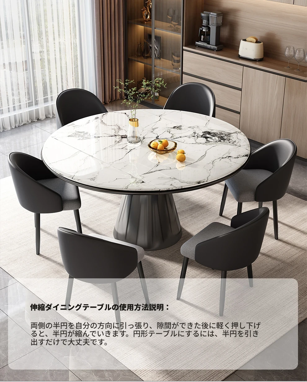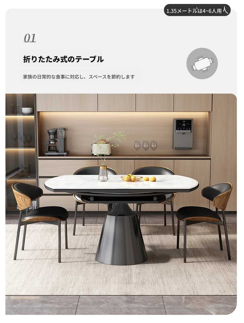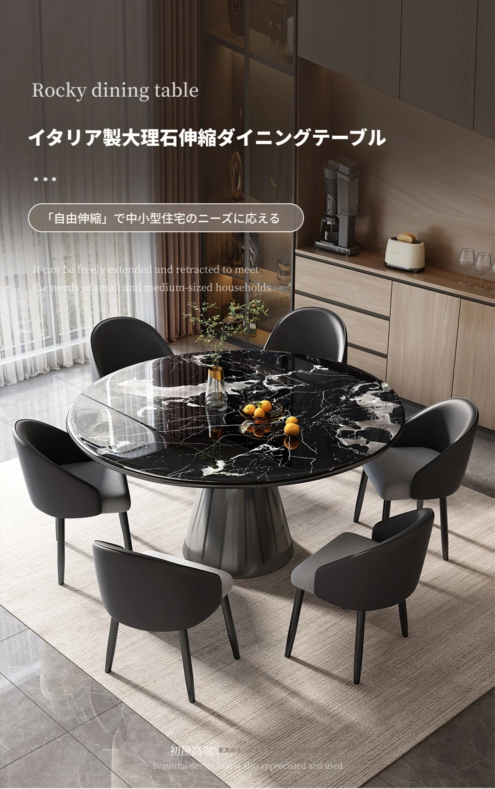 イタリアンスタイルの軽奢華天然大理石ダイニングテーブル、伸縮可能な折りたたみチェアとのセット!小型住宅にも最適な、四角と円の2WAYデザインで、空間を有効活用!おしゃれで実用的な食卓を手に入れましょう!