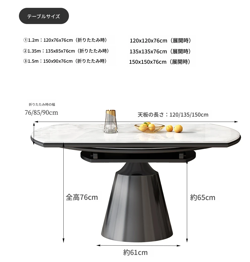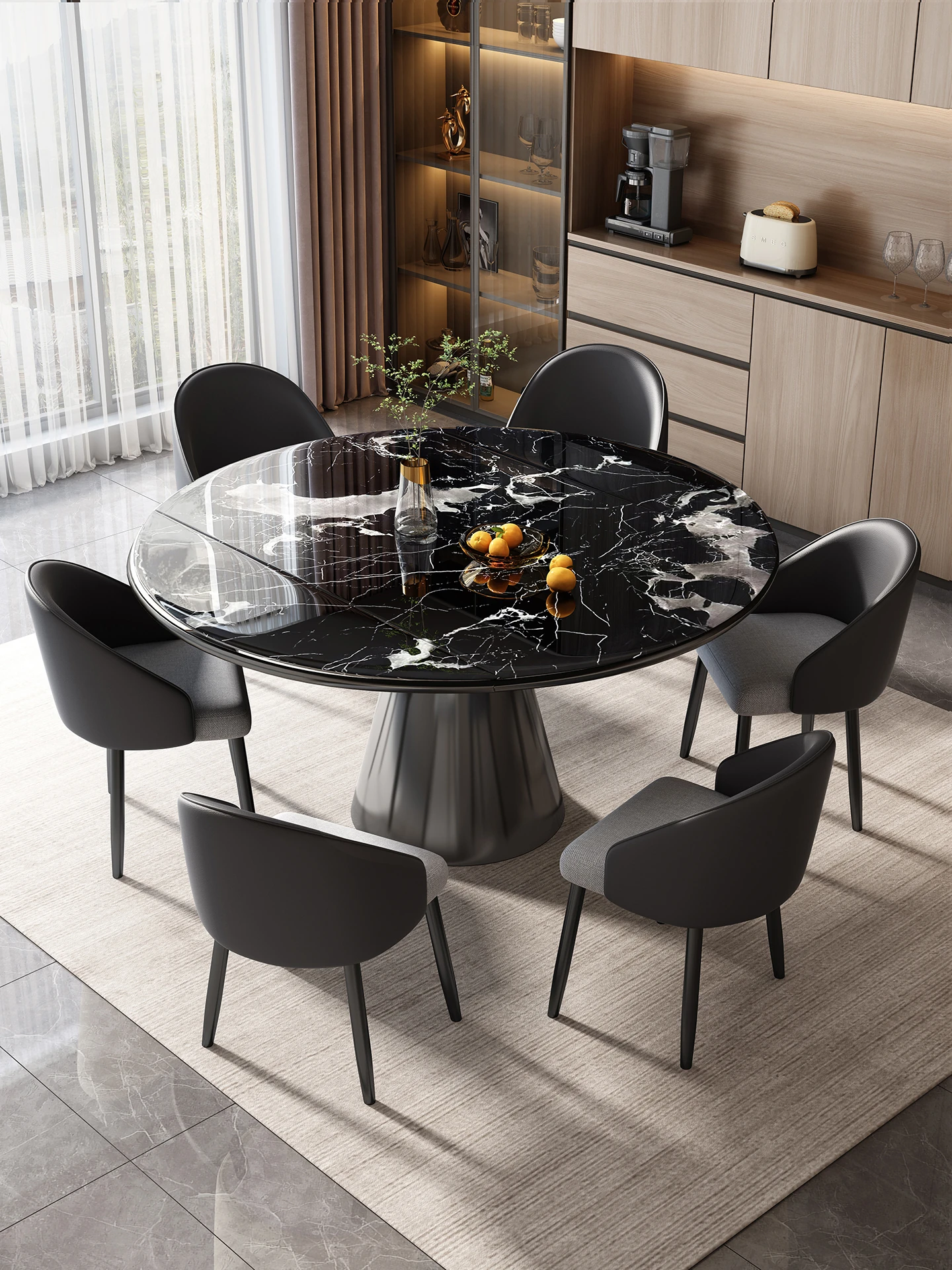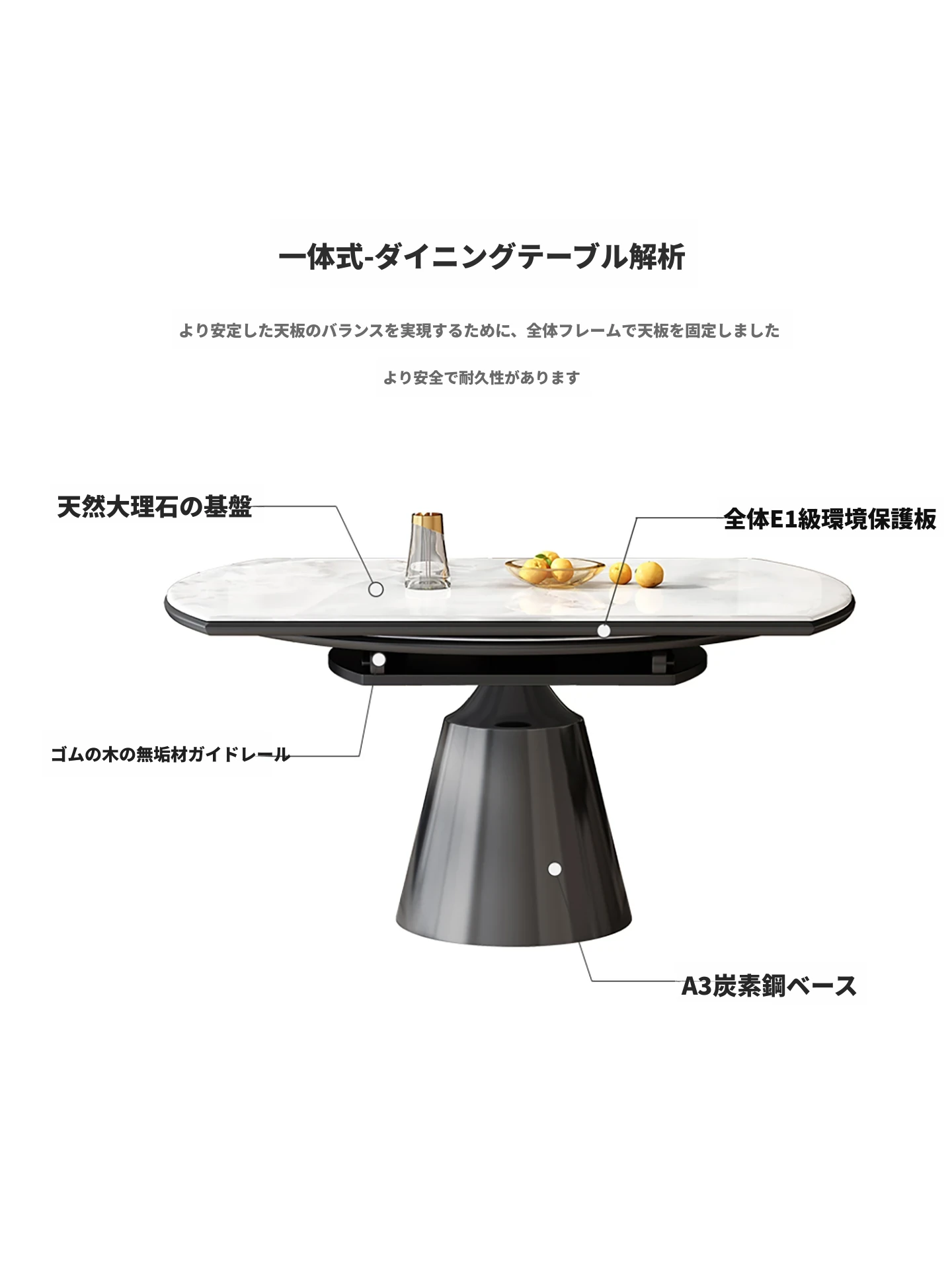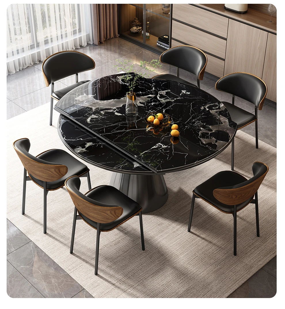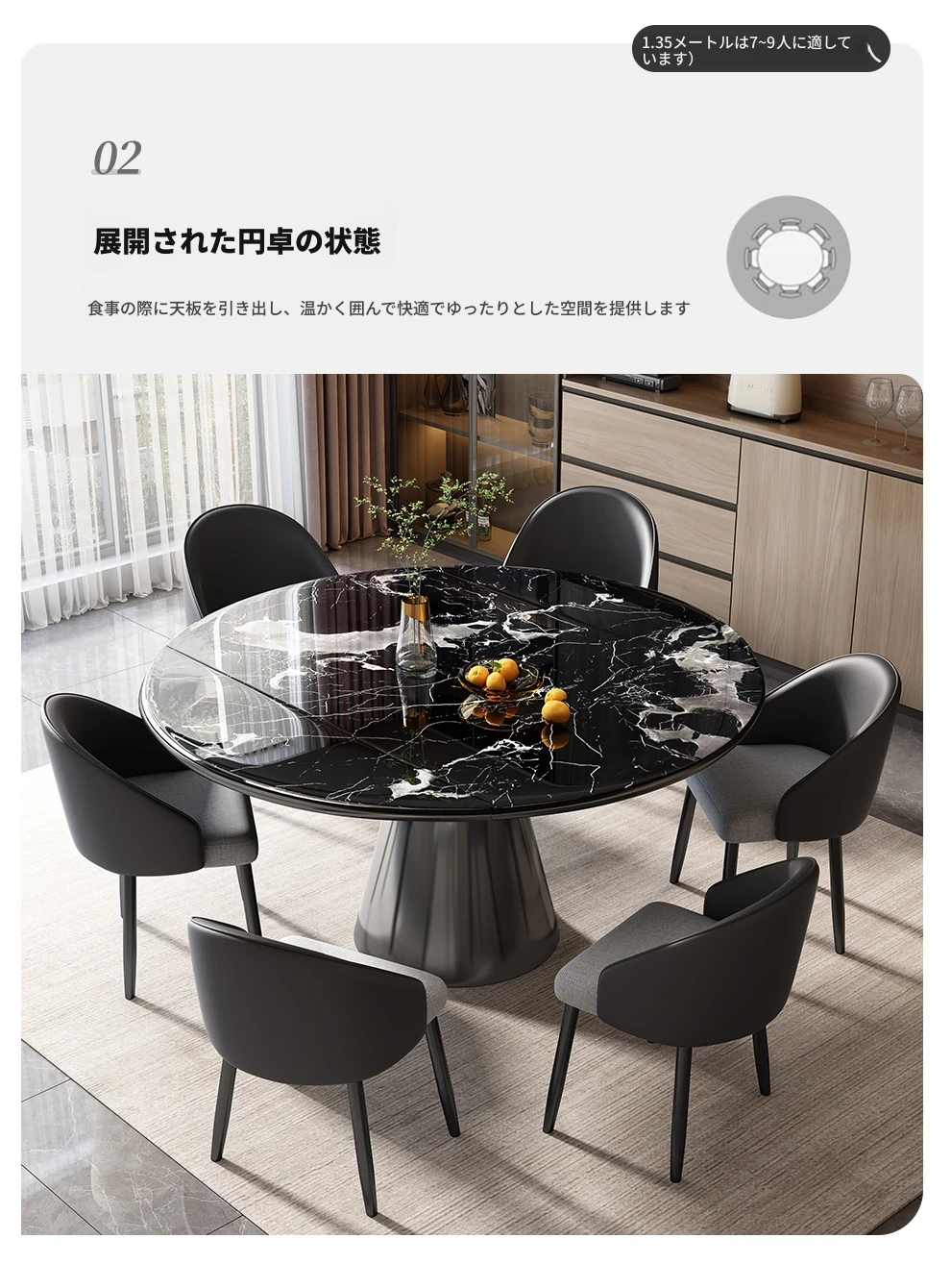 イタリアンスタイルの軽奢華天然大理石ダイニングテーブル、伸縮可能な折りたたみチェアとのセット!小型住宅にも最適な、四角と円の2WAYデザインで、空間を有効活用!おしゃれで実用的な食卓を手に入れましょう!