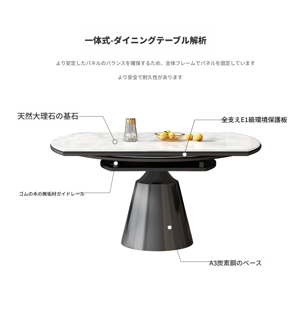 ブラックローズ-単一ダイニングテーブル【天然大理石天板+15mm全托底板】