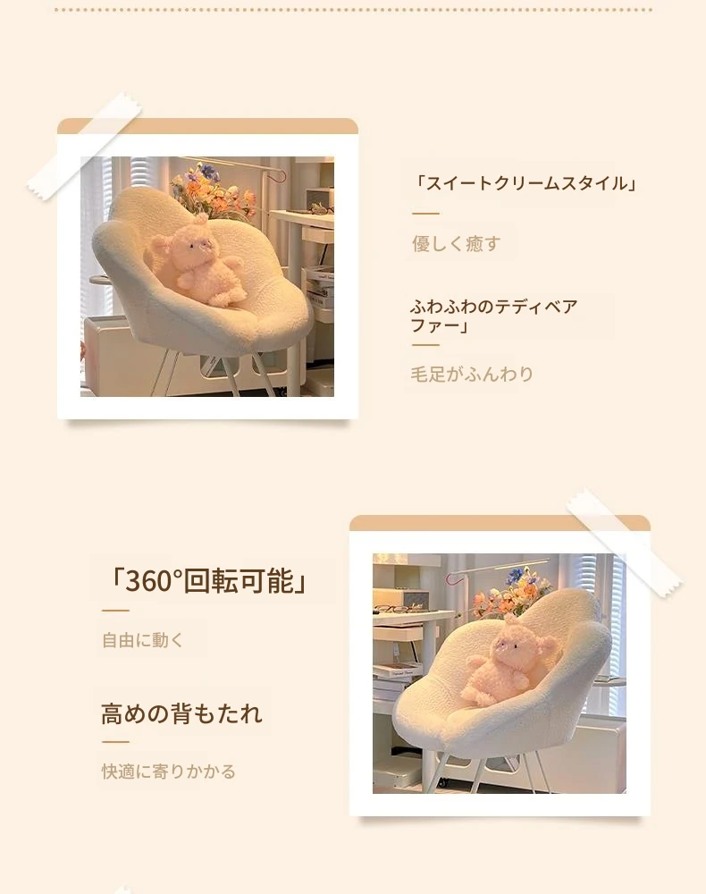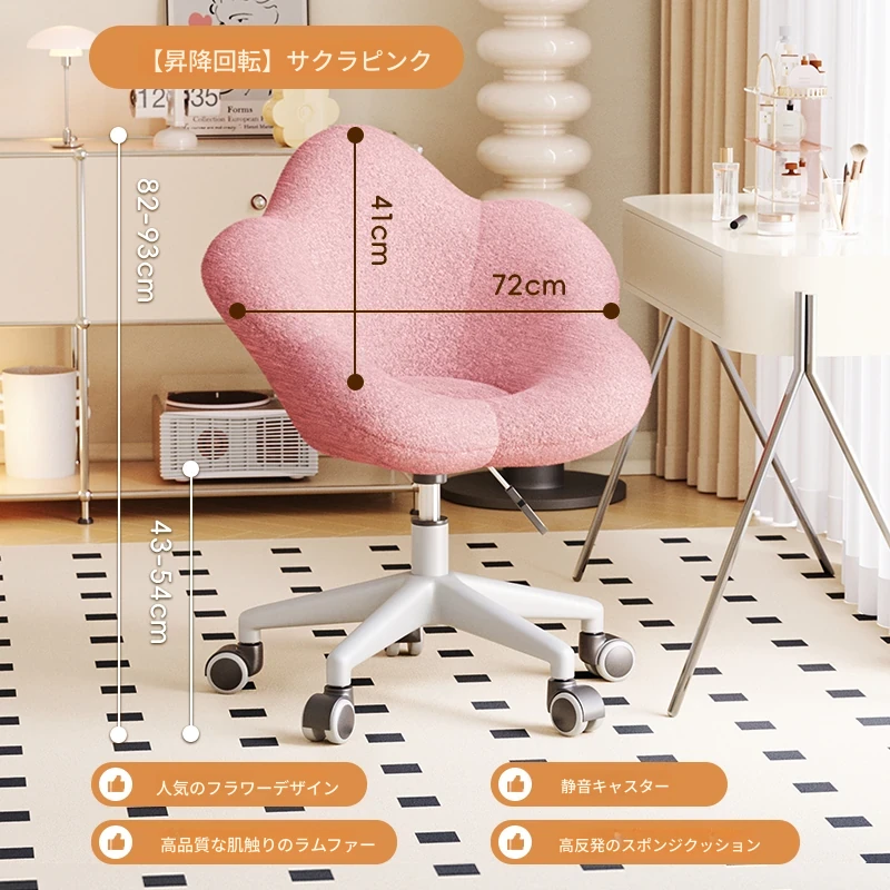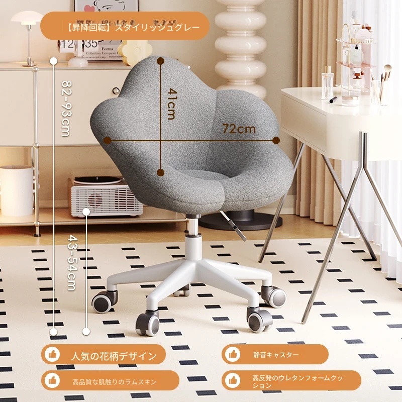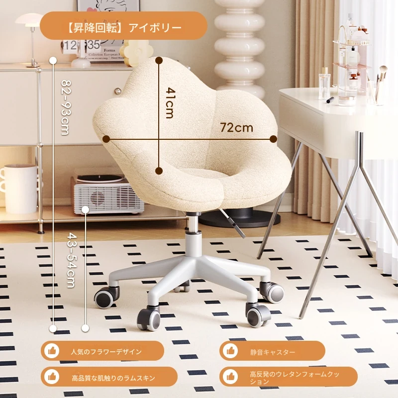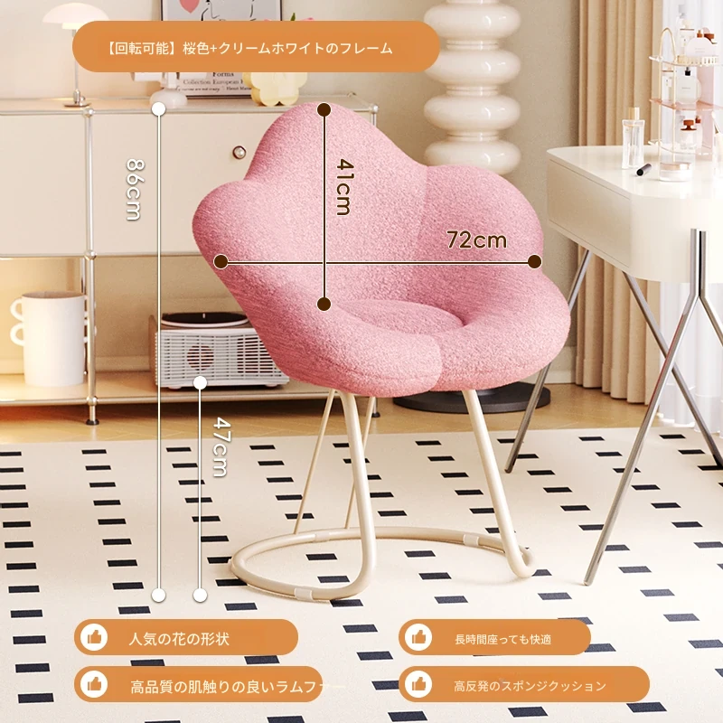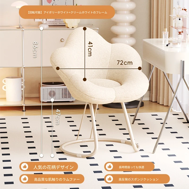 送料無料の新疆発!人気の化粧椅子、背もたれ付きのドレッサーチェア。クリーム風デザインで、女性の寝室にぴったり。花びら型の可回転椅子で、あなたの美しさを引き立てます!