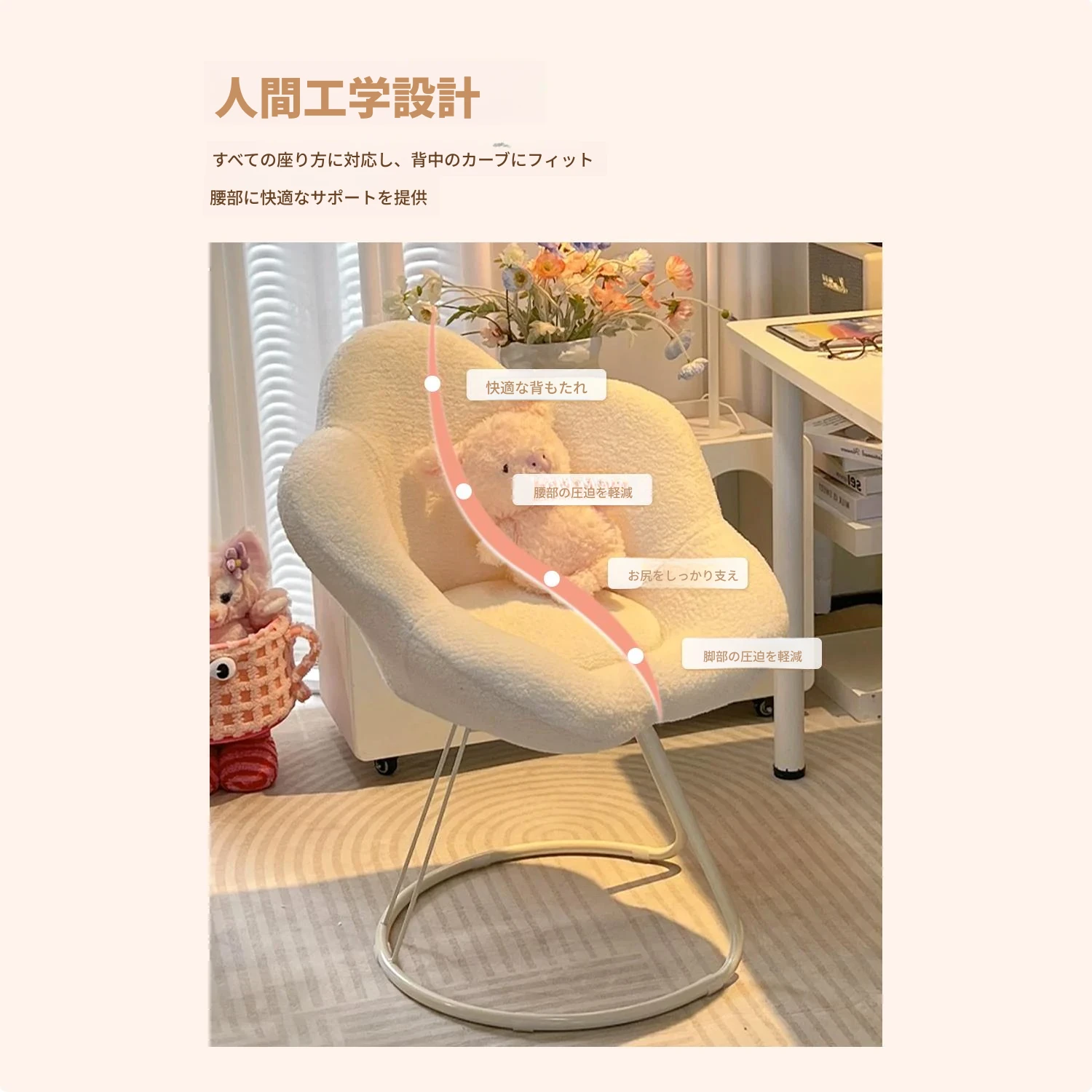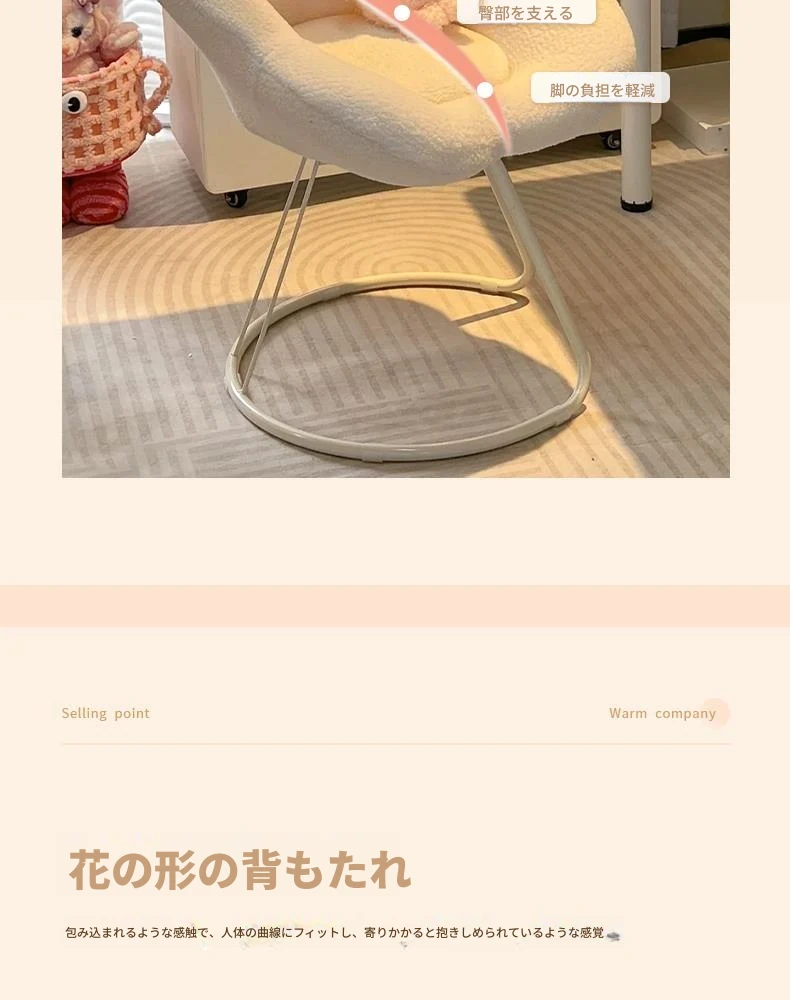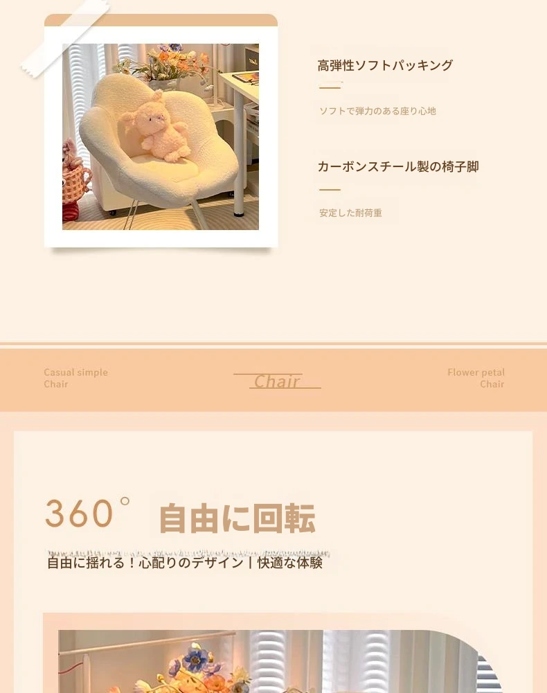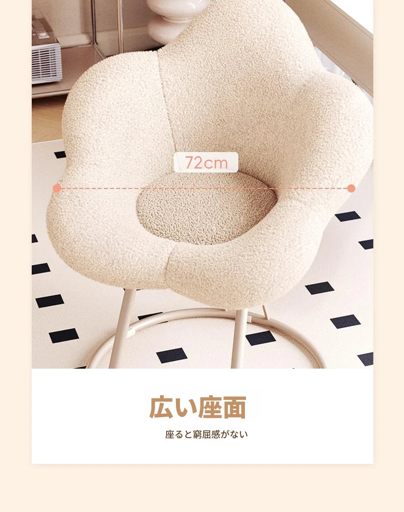 送料無料の新疆発!人気の化粧椅子、背もたれ付きのドレッサーチェア。クリーム風デザインで、女性の寝室にぴったり。花びら型の可回転椅子で、あなたの美しさを引き立てます!