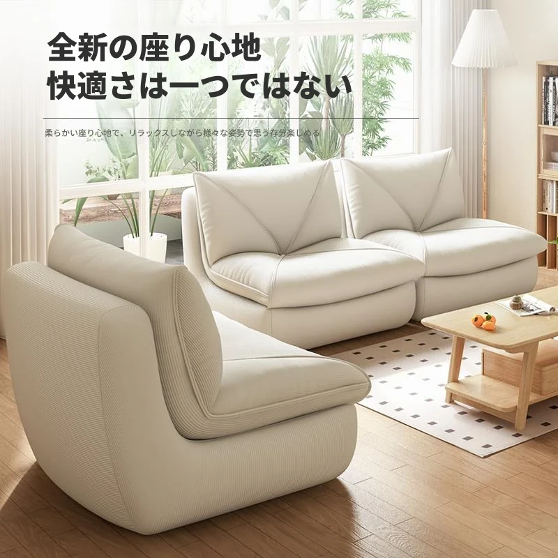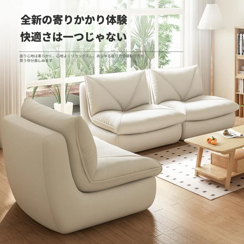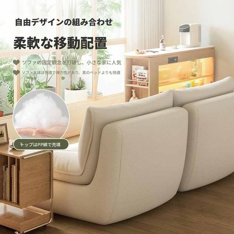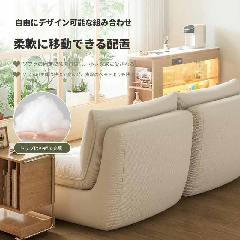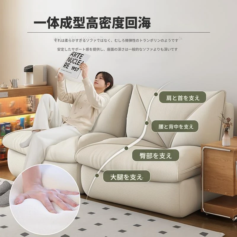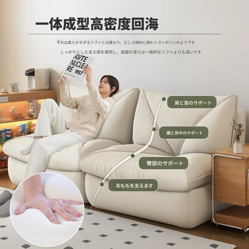 『コーデュロイ-クリームホワイト』もこもこクッションソファ/一体型天然スポンジ