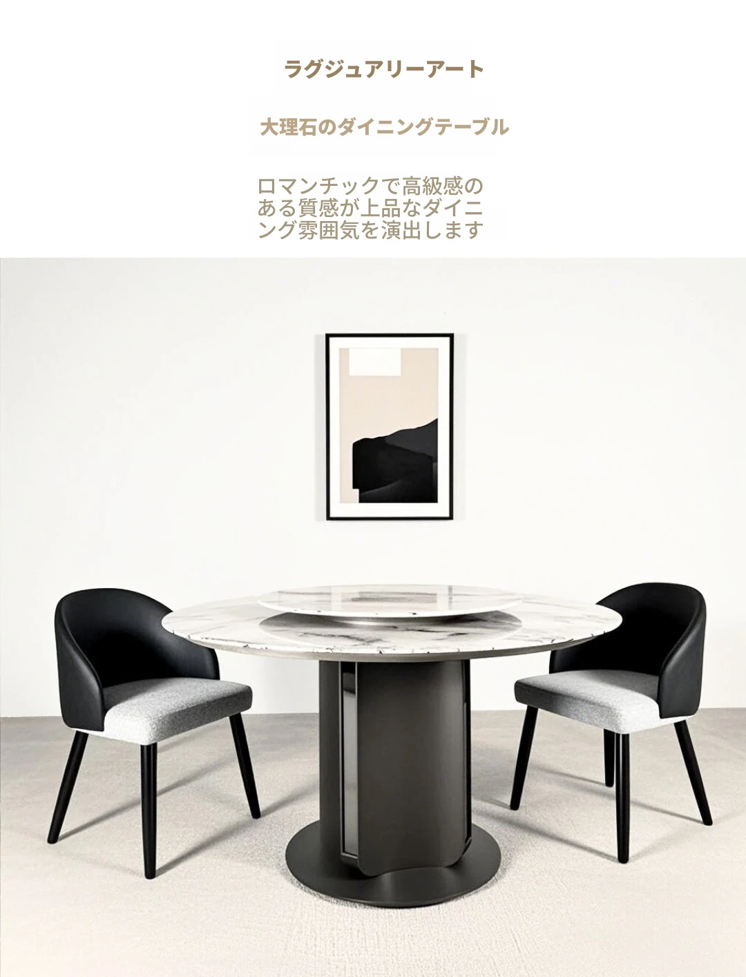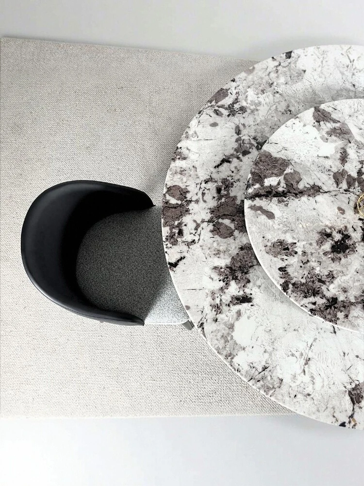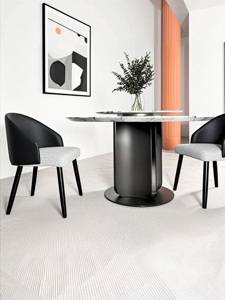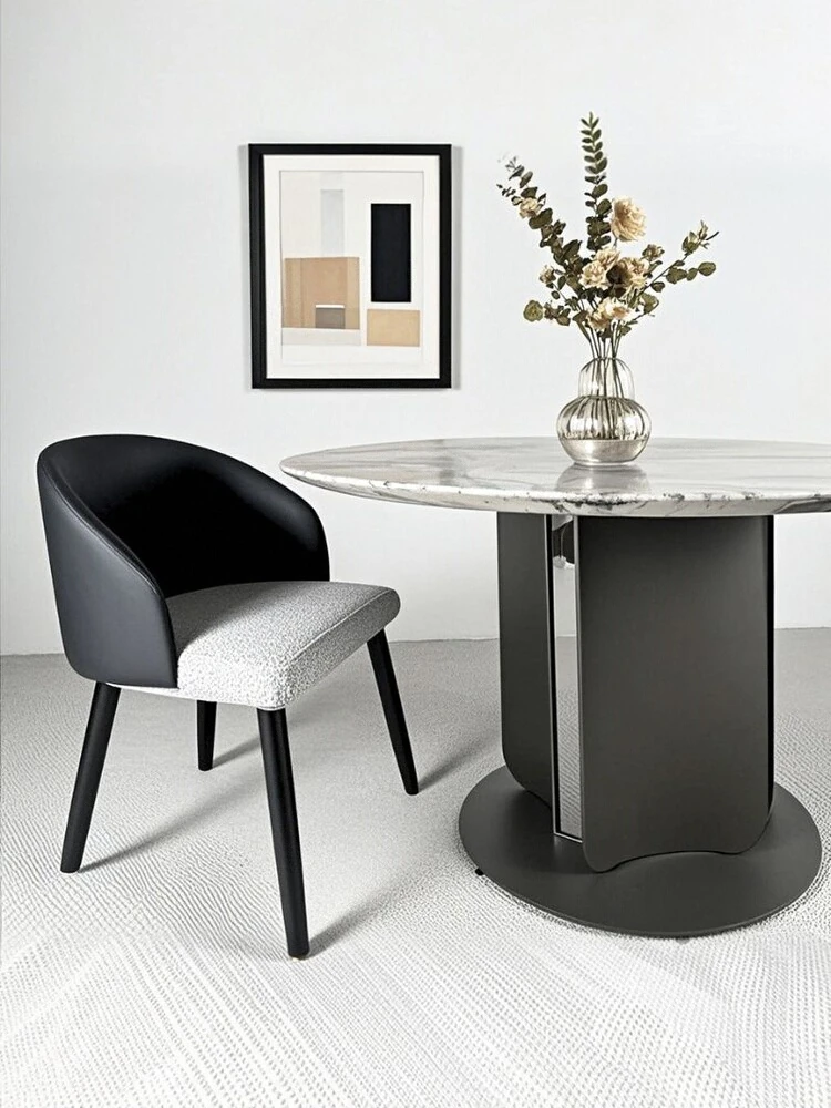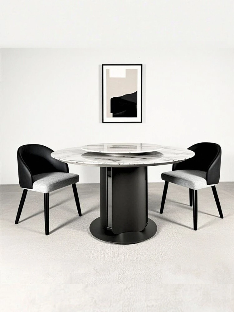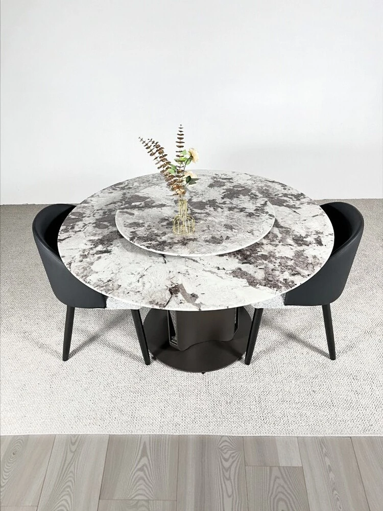イタリアンラグジュアリー大理石ダイニングテーブル&チェアセット - モダンシンプルな小型住宅向け、高級感あふれる円形テーブルで、快適な食事時間を実現!