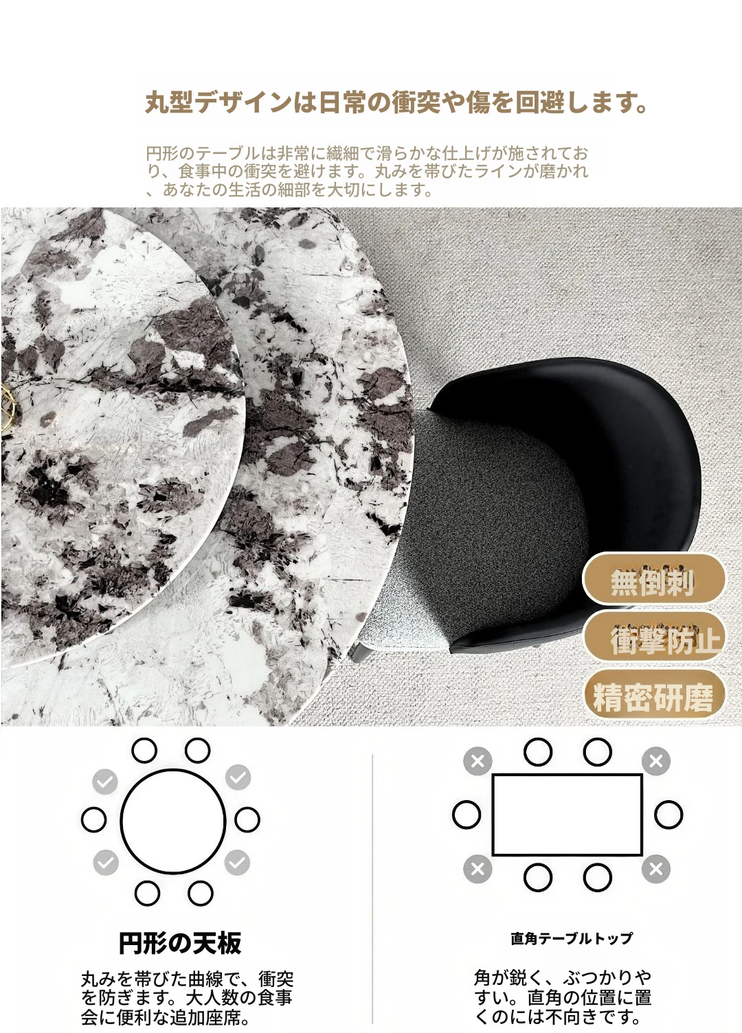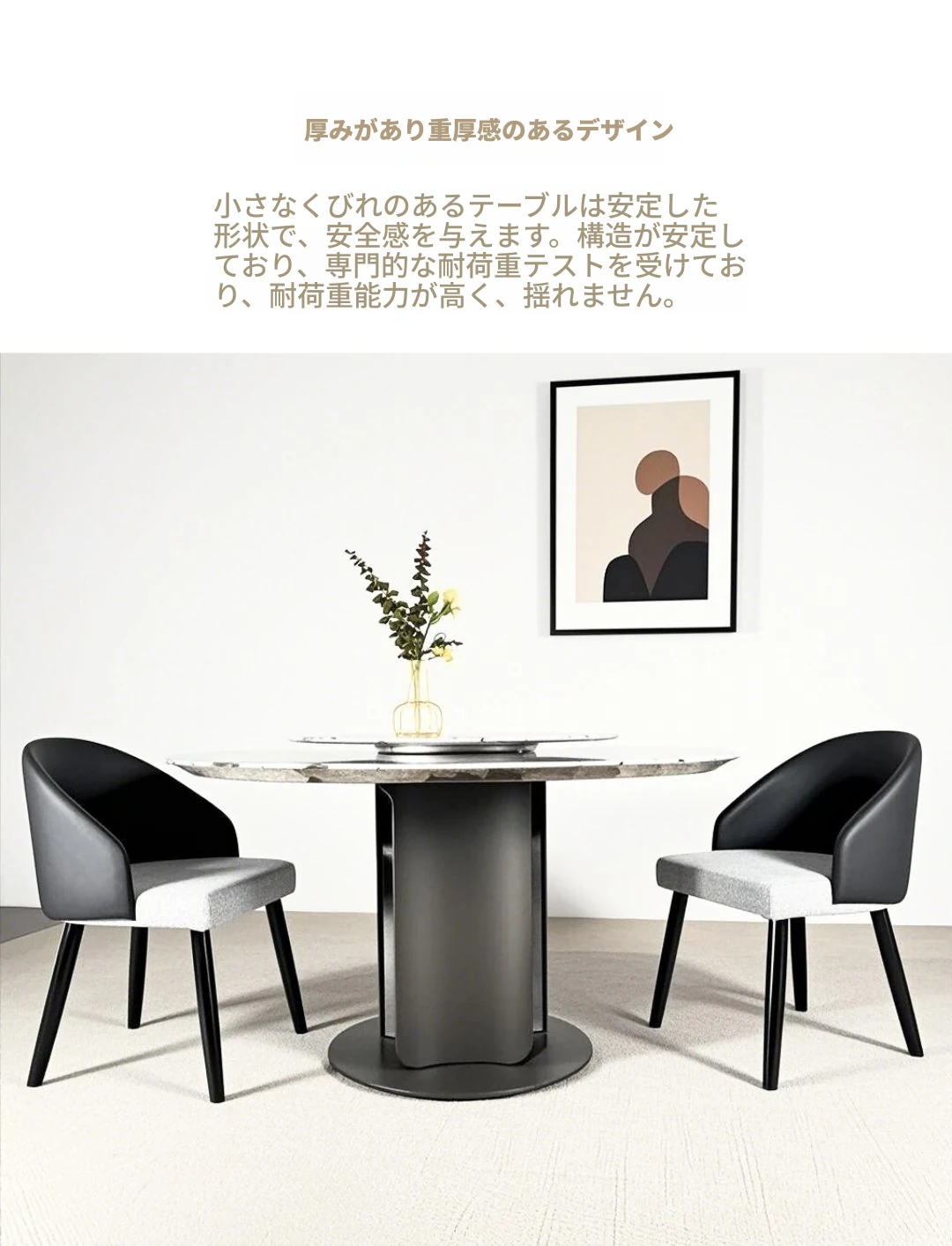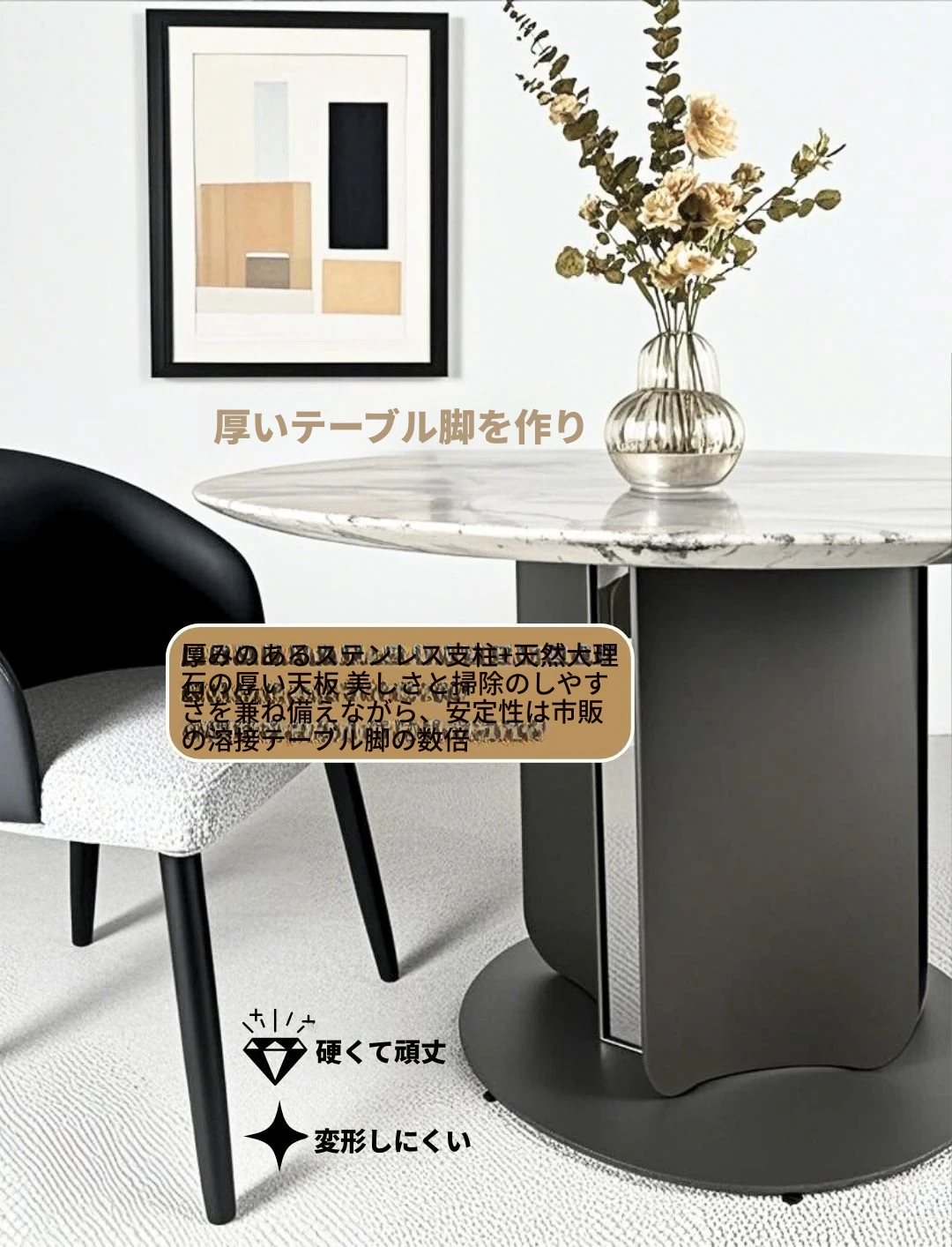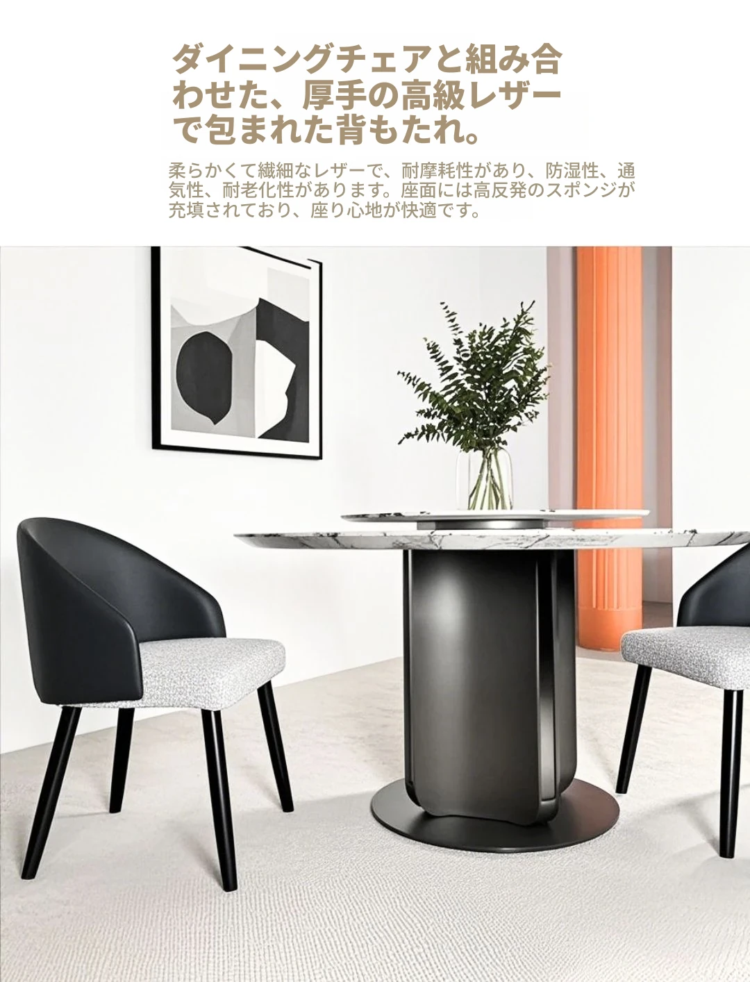 イタリアンラグジュアリー大理石ダイニングテーブル&チェアセット - モダンシンプルな小型住宅向け、高級感あふれる円形テーブルで、快適な食事時間を実現!