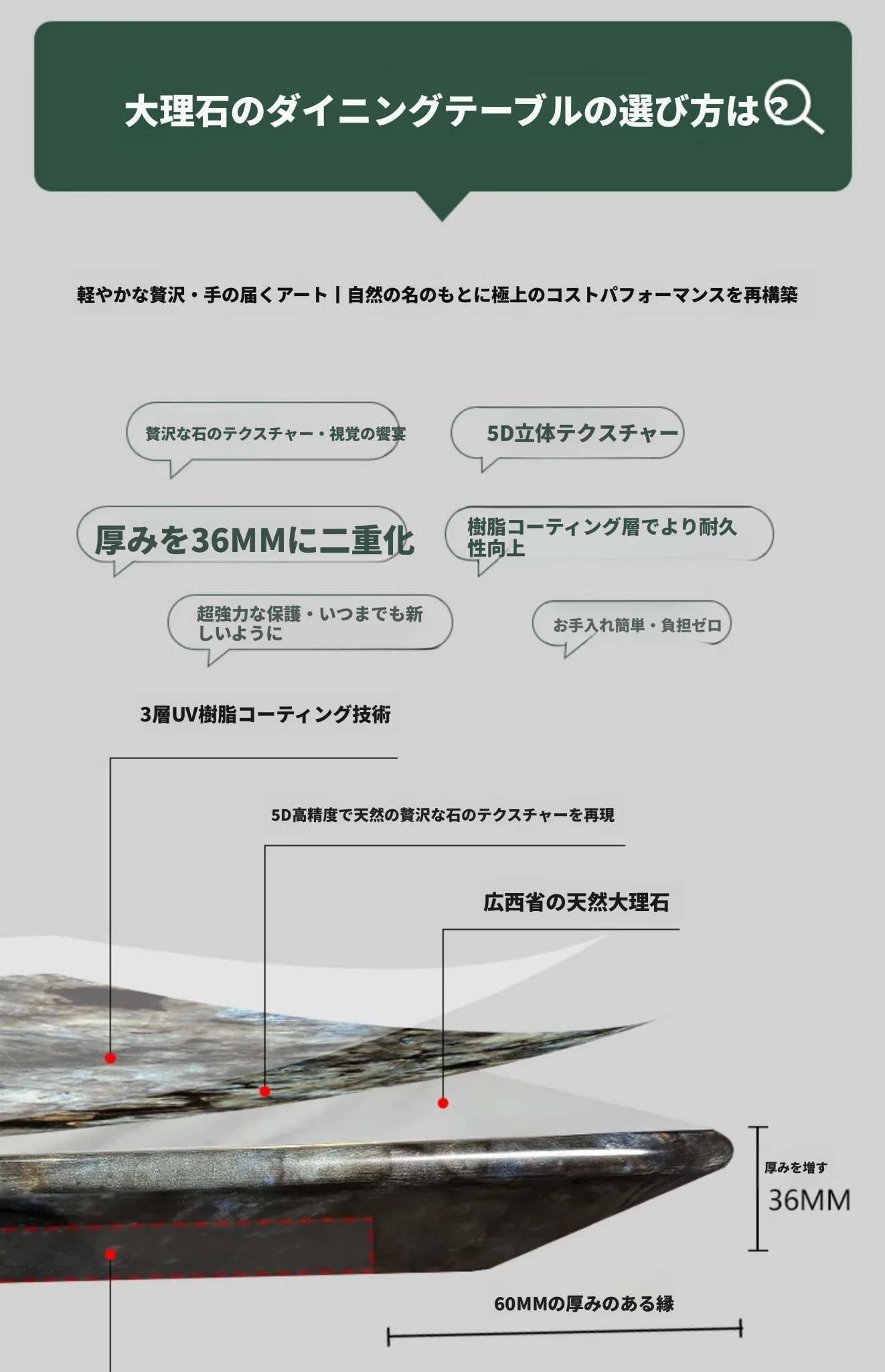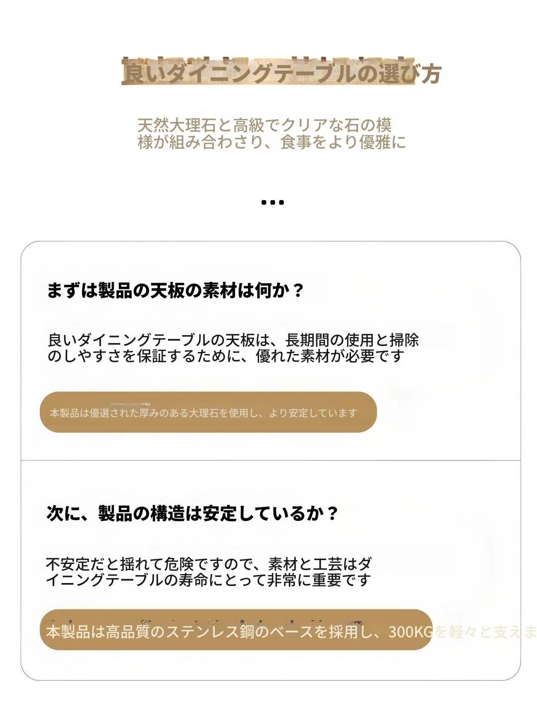 【高級大理石/回転盤なし】1.2m単独ダイニングテーブル