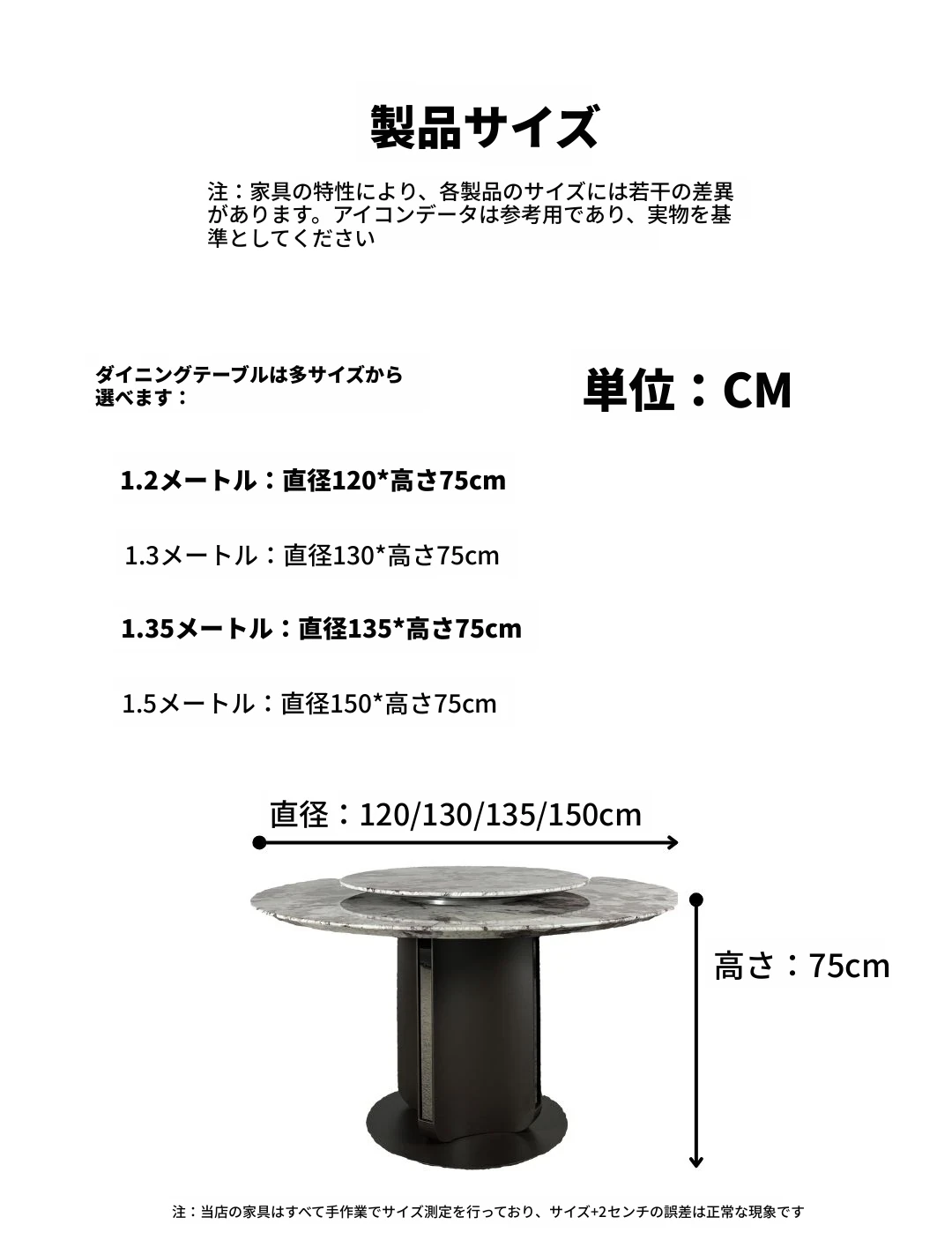 【高級大理石/0.8m回転盤付き】1.35m単独ダイニングテーブル