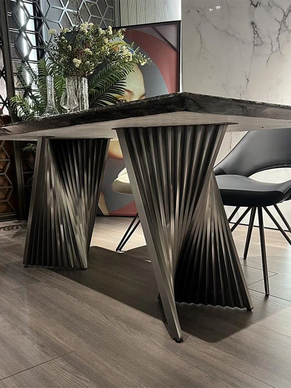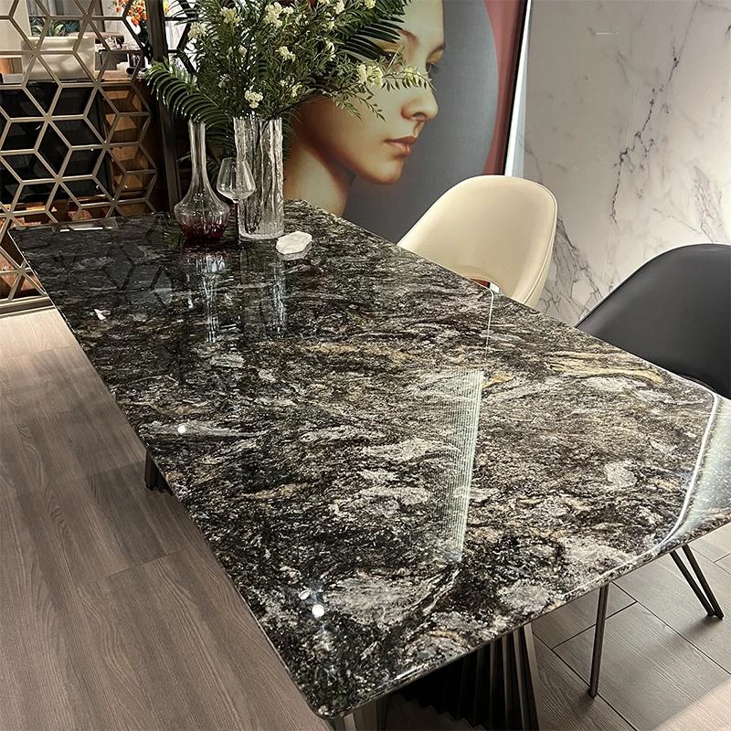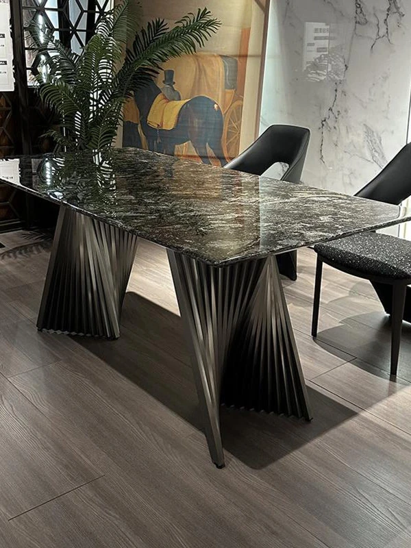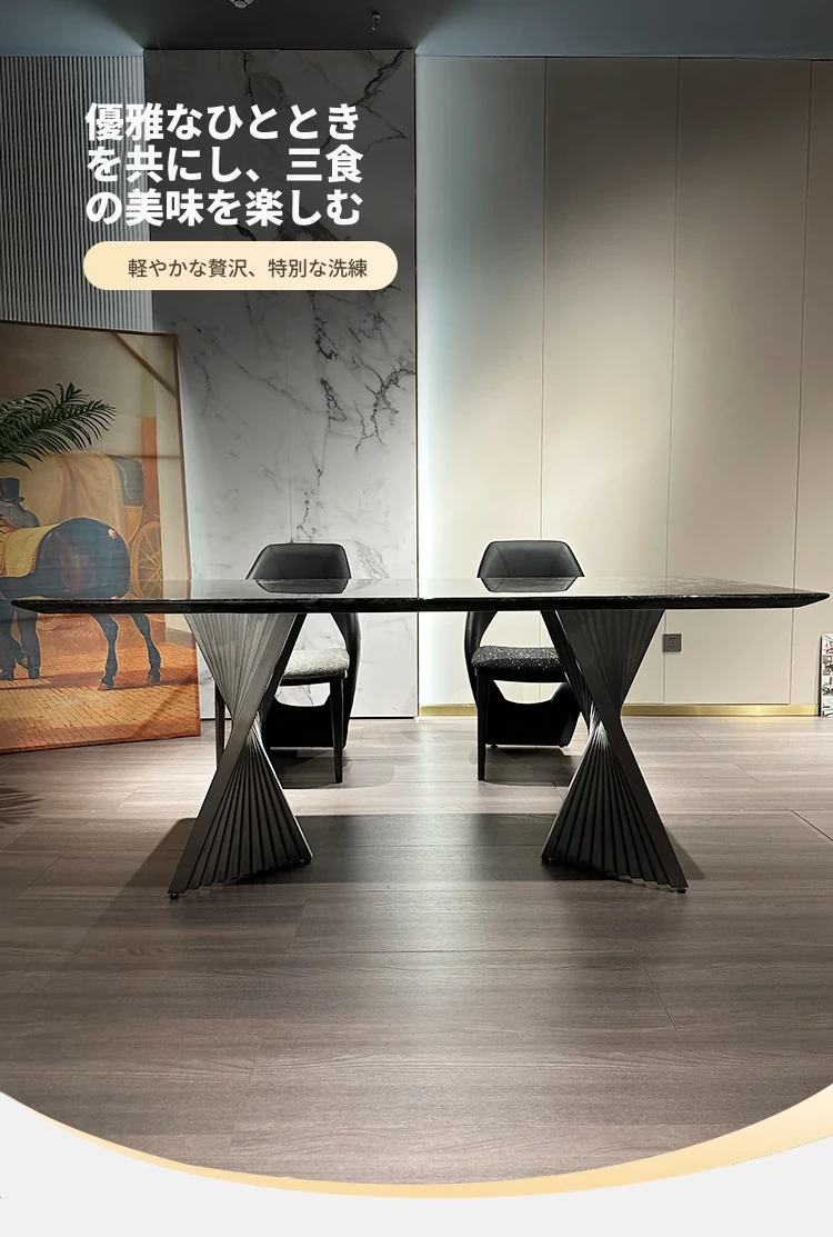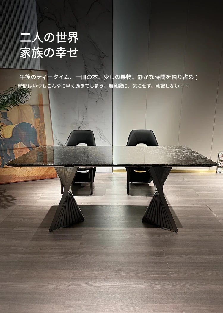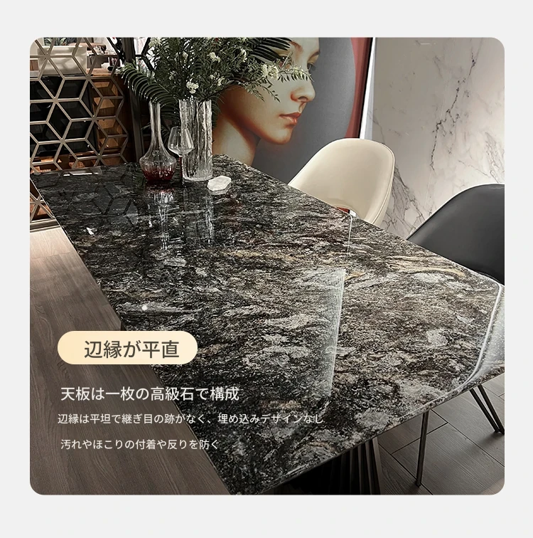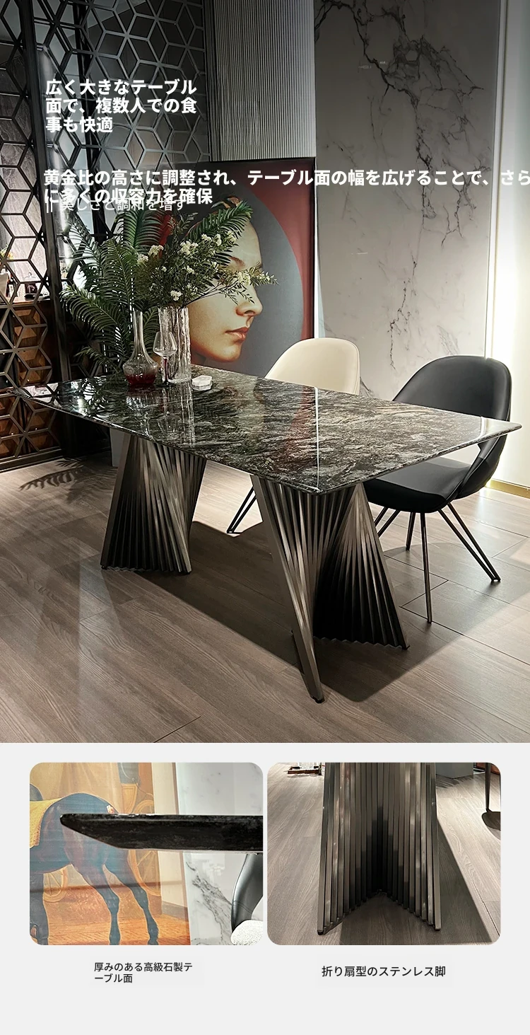イタリアンラグジュアリー天然大理石プラチナダイヤモンドデザイン長方形ダイニングテーブル - スタイリッシュな小型住宅に最適な洗練された食卓!