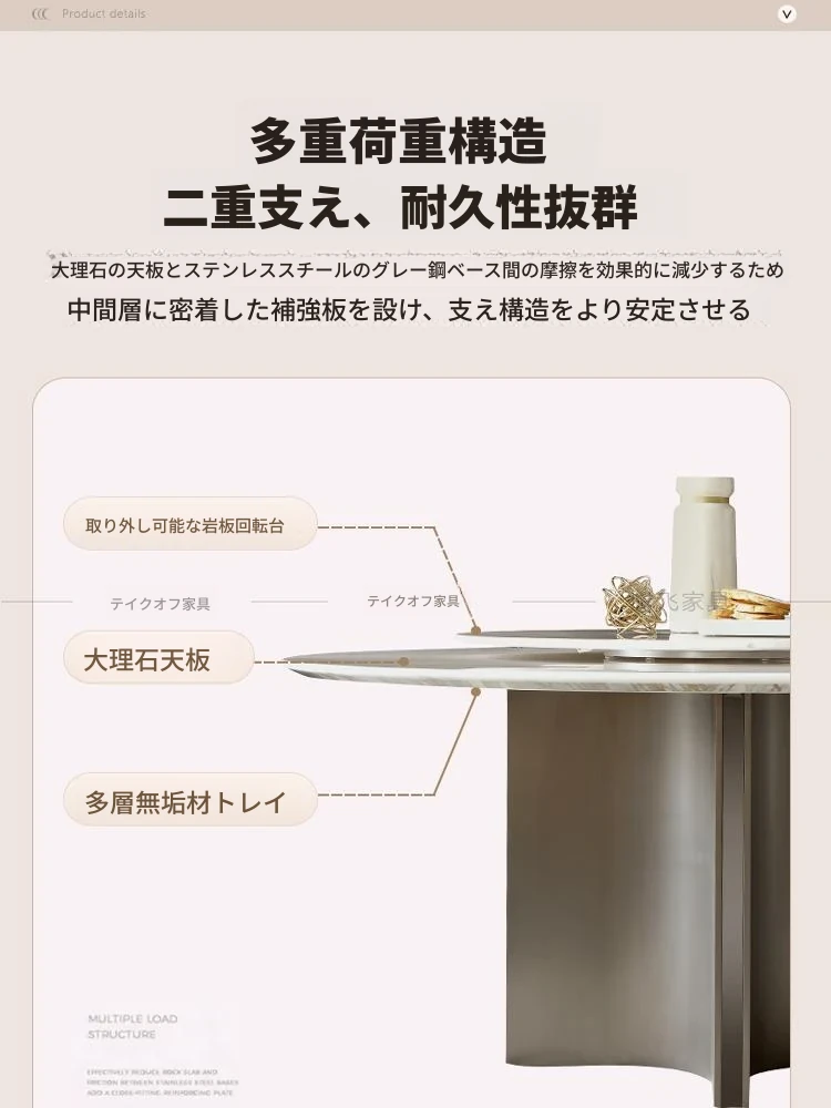 1.8+1.2メートル回転(天然大理石ジャズホワイト)