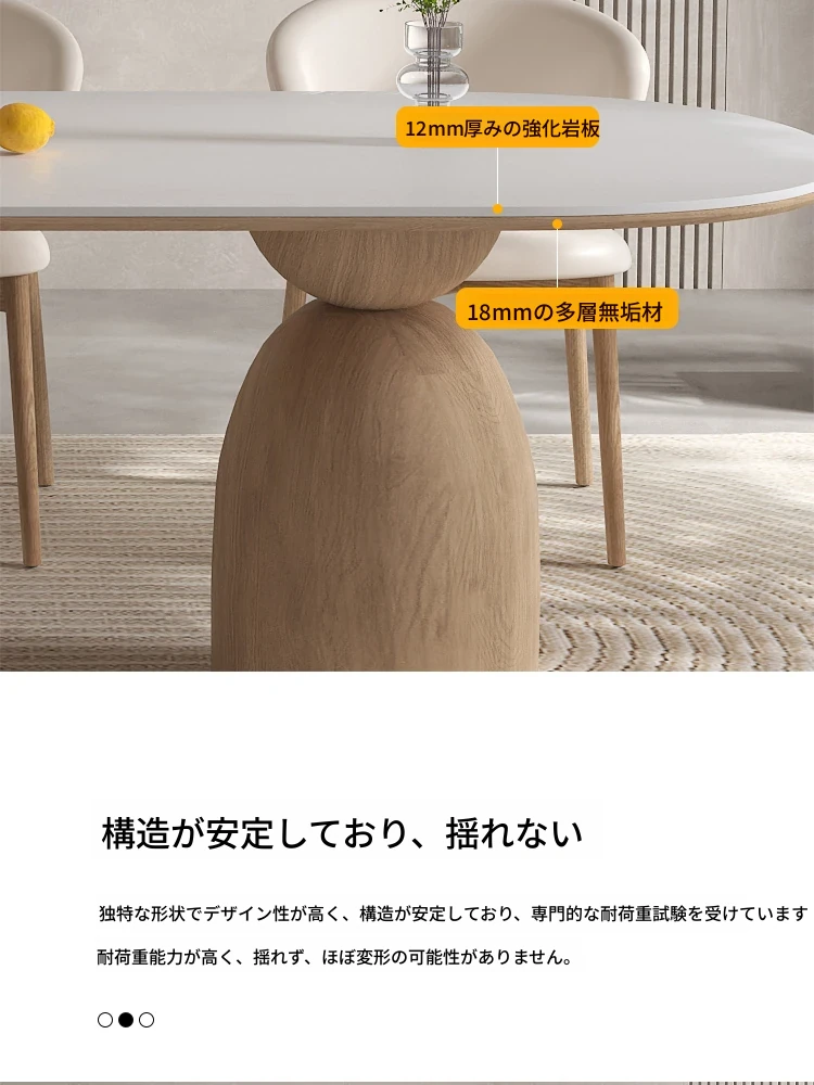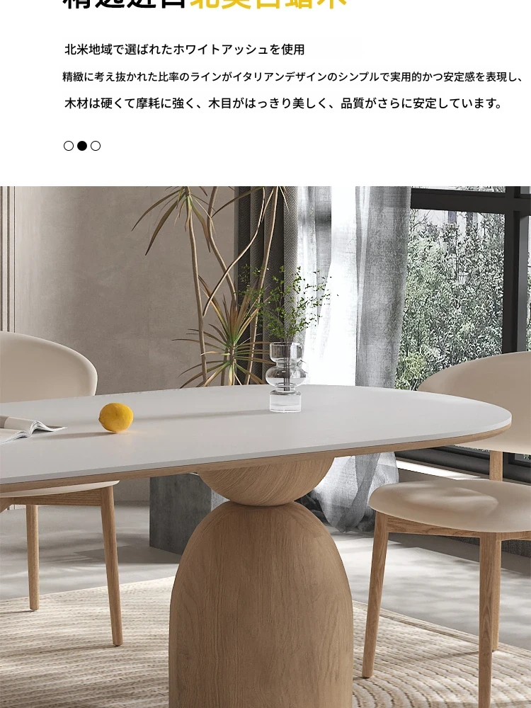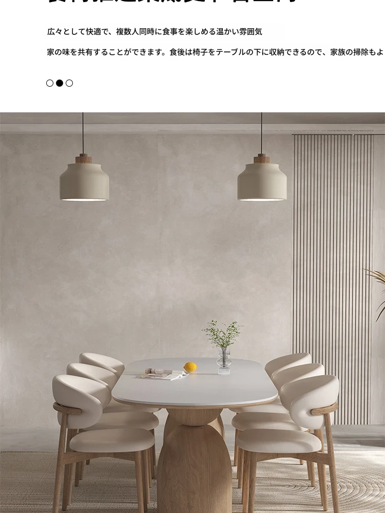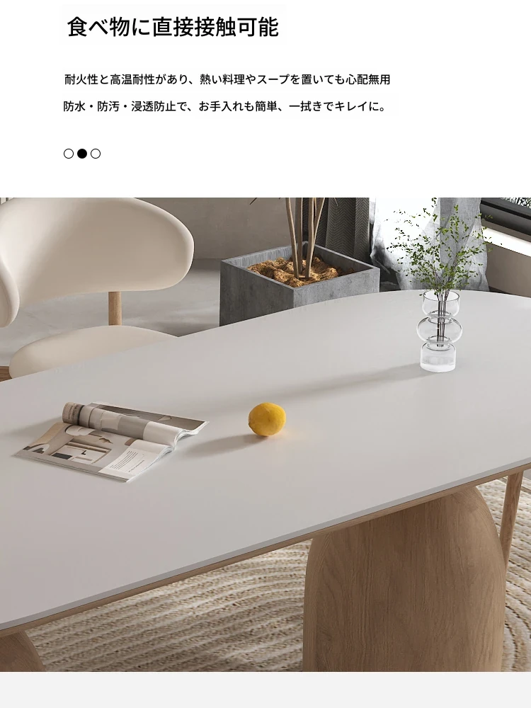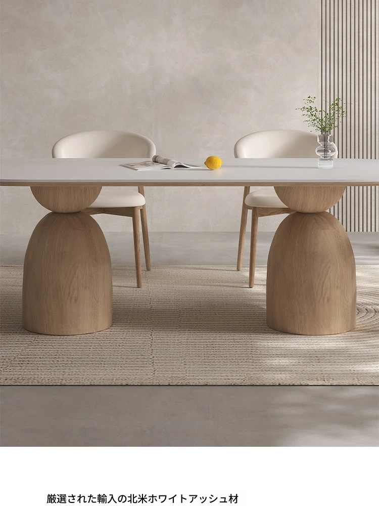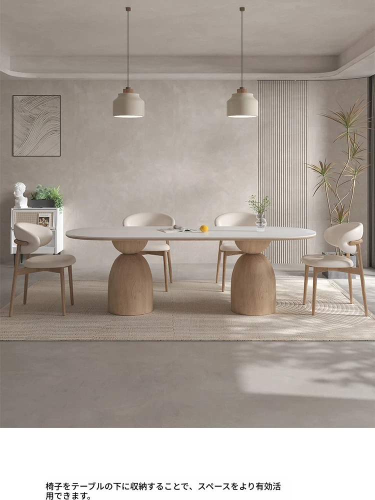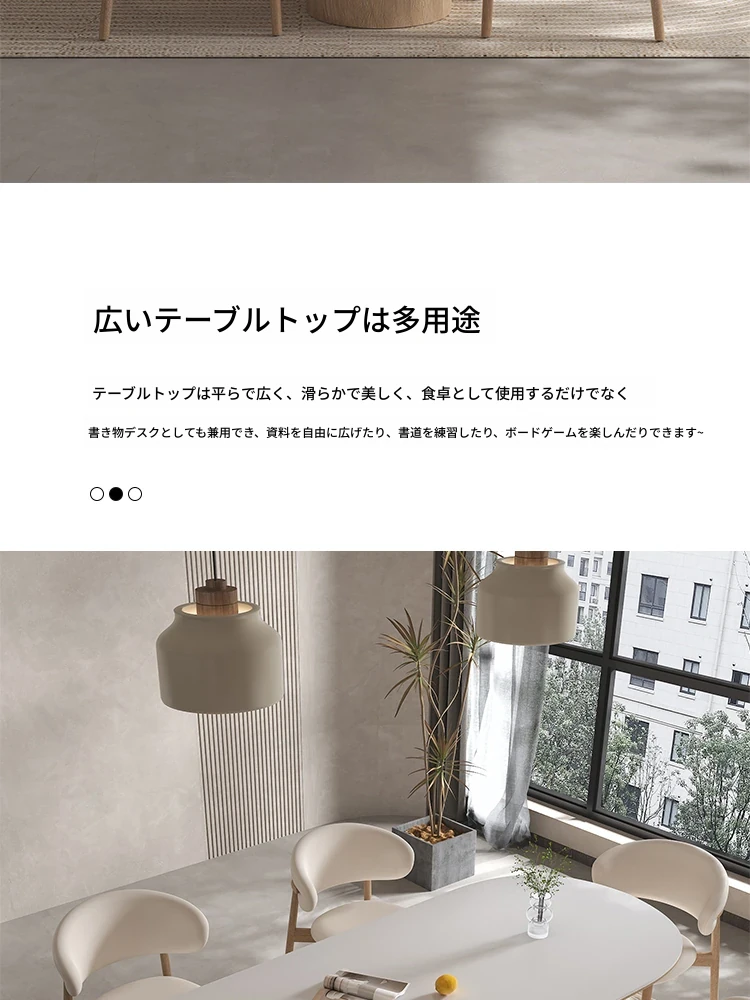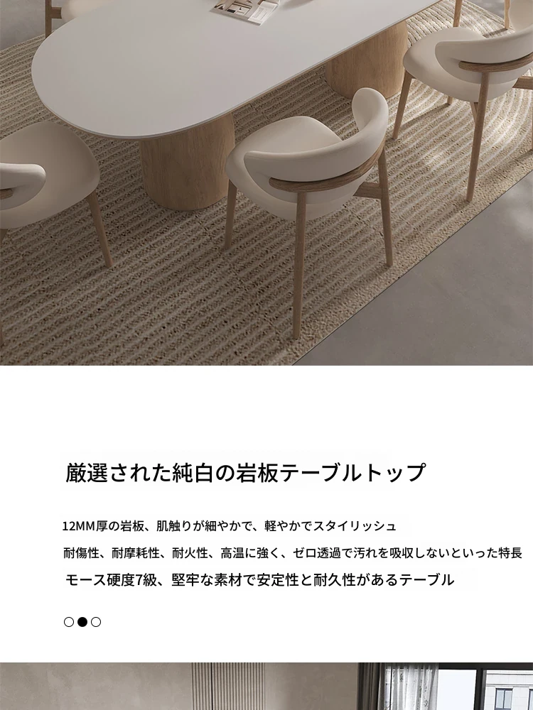 イタリアンスタイルの天然木クリーム風仕上げの無垢岩板ダイニングテーブル&チェアセット!現代的でシンプルなデザイン、軽やかなラグジュアリー感。狭いお部屋でもぴったりな食事用テーブルです!