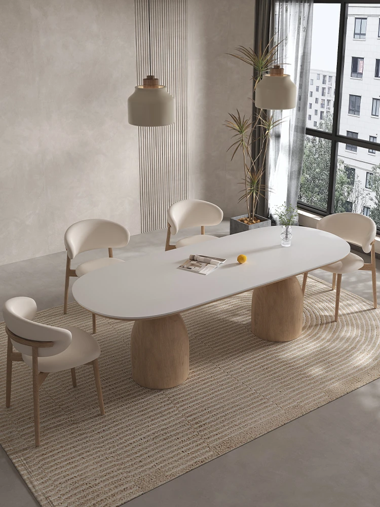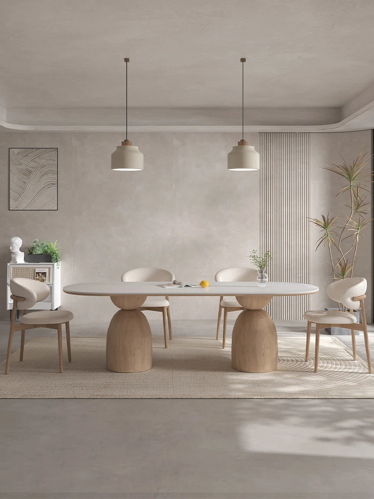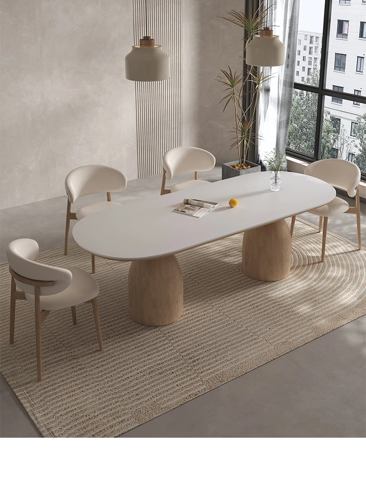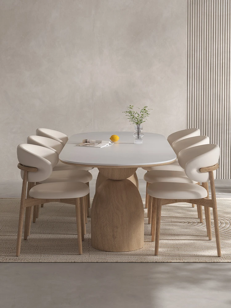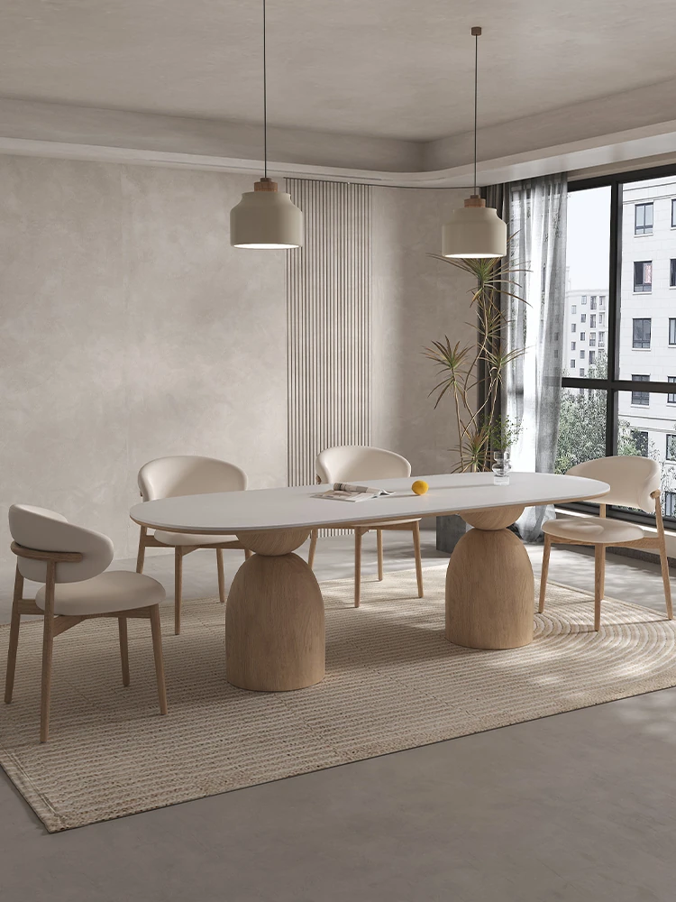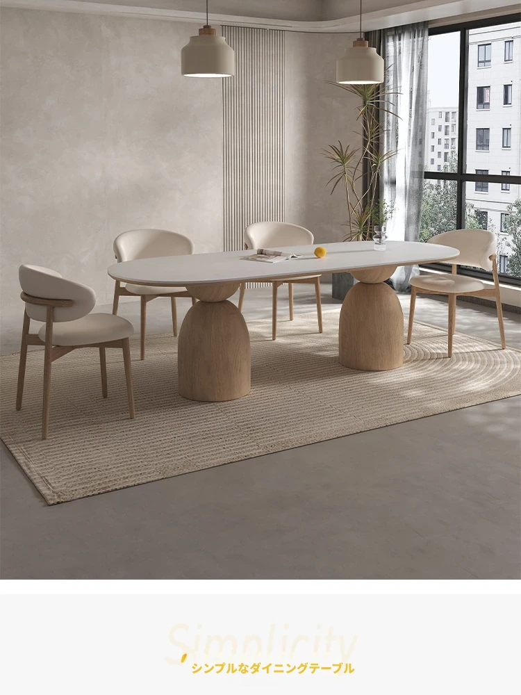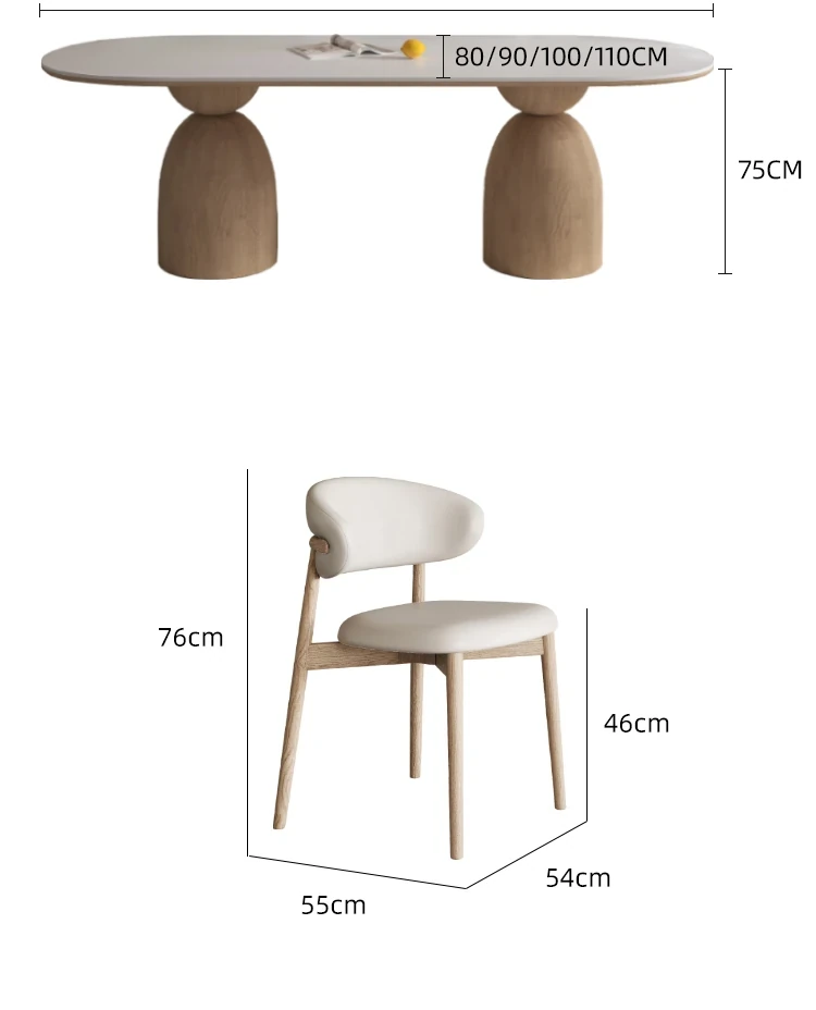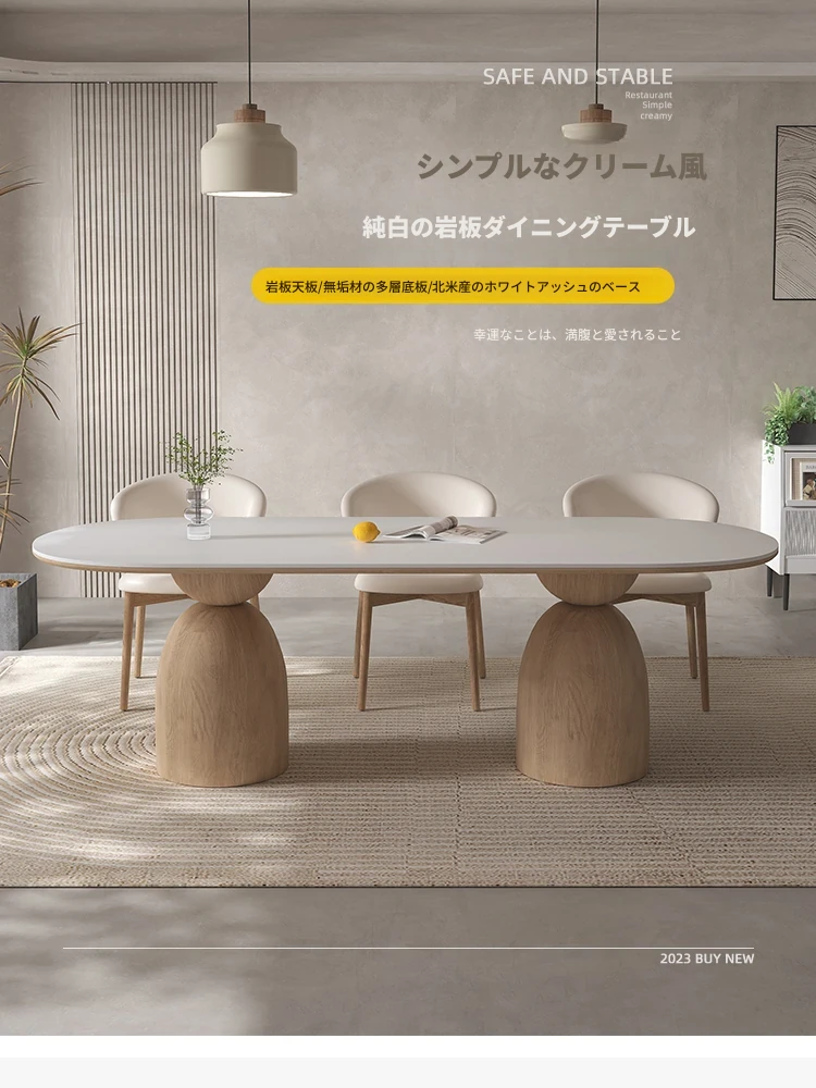 イタリアンスタイルの天然木クリーム風仕上げの無垢岩板ダイニングテーブル&チェアセット!現代的でシンプルなデザイン、軽やかなラグジュアリー感。狭いお部屋でもぴったりな食事用テーブルです!