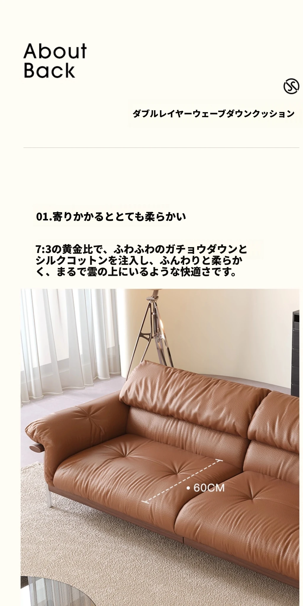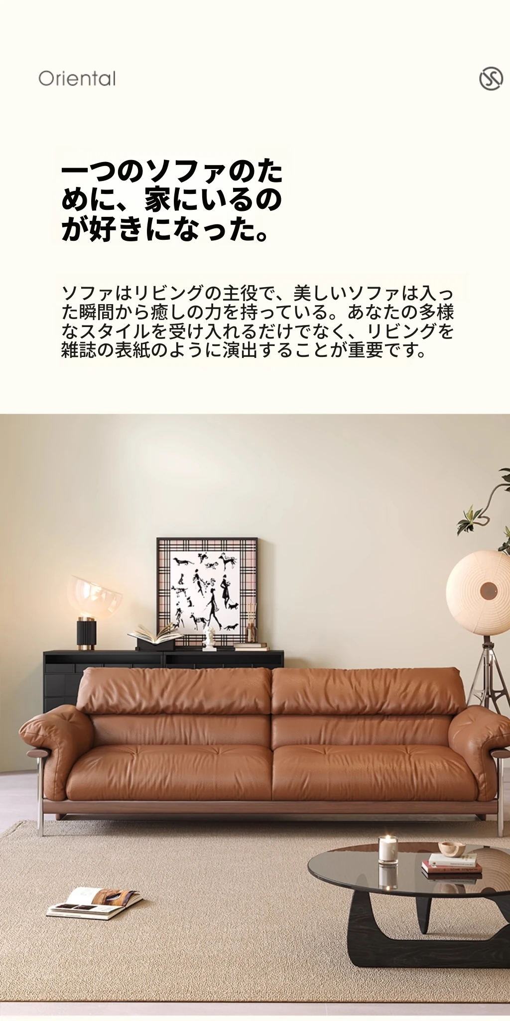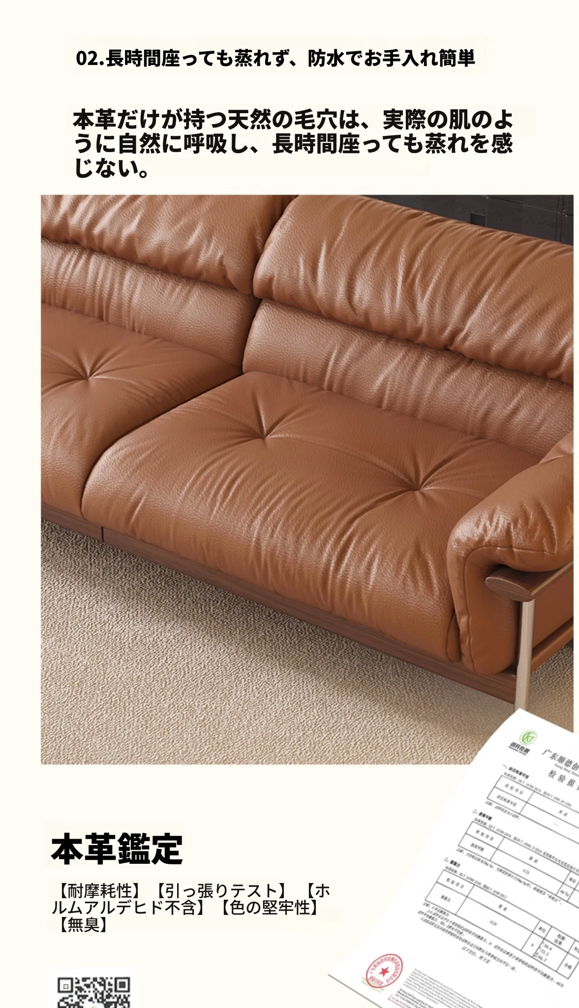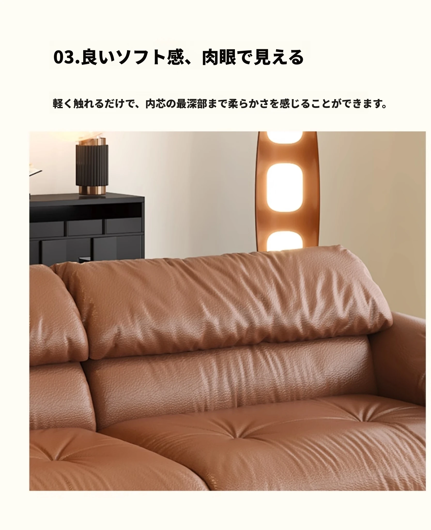 【正規JOソファ】北米ブラックウォールナット/2.65メートルキャラメルブラウン-厚手肉感のトップグレイン牛革{360°全皮}.