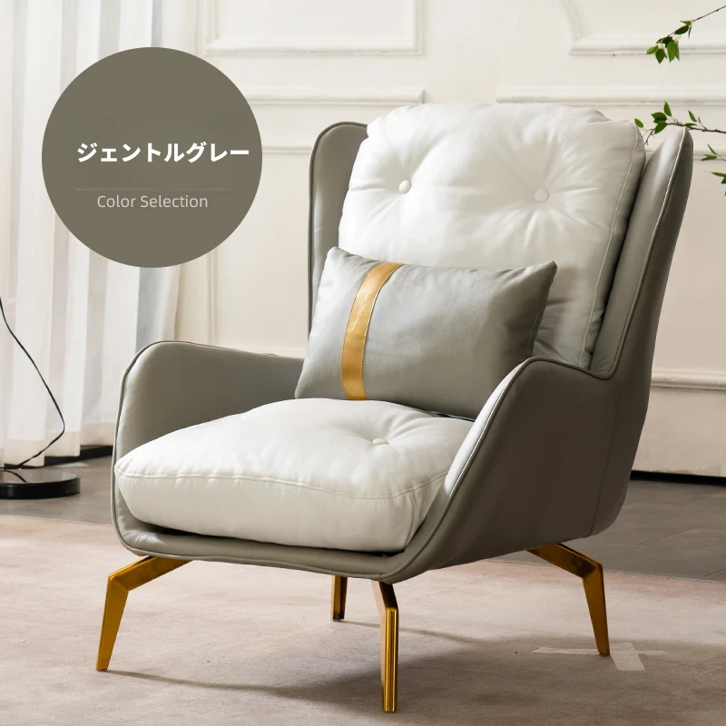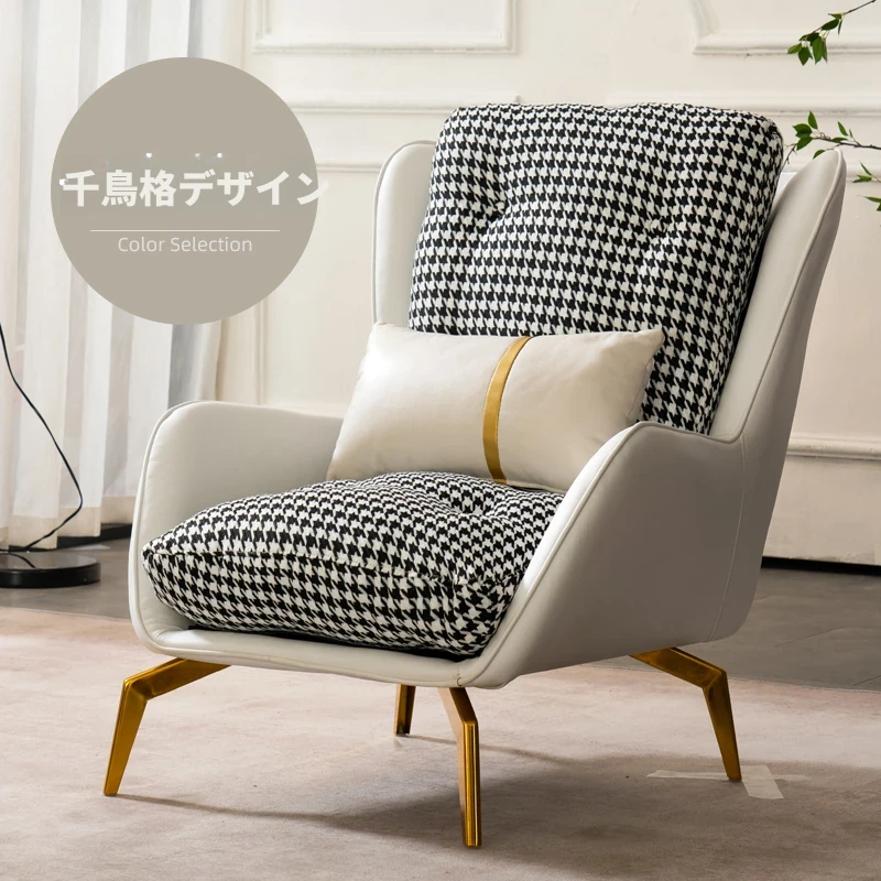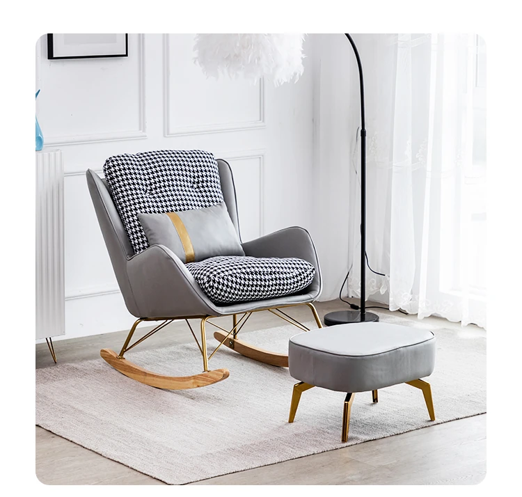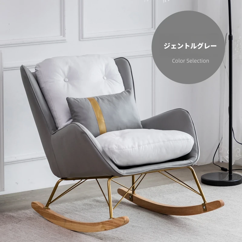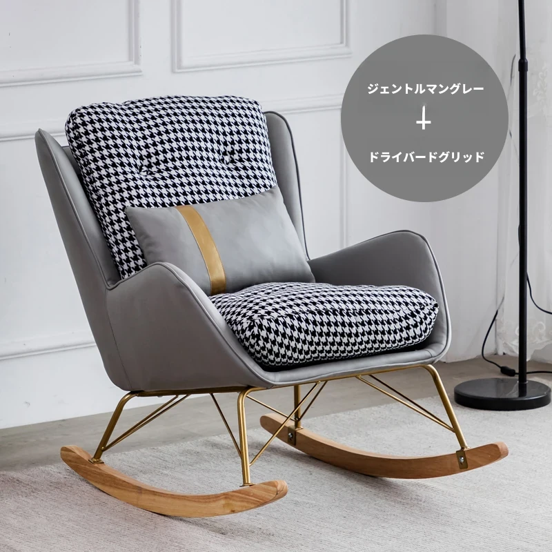ロッキングチェア スタイル グレーテクノロジー布+千鳥格子コットンリネン