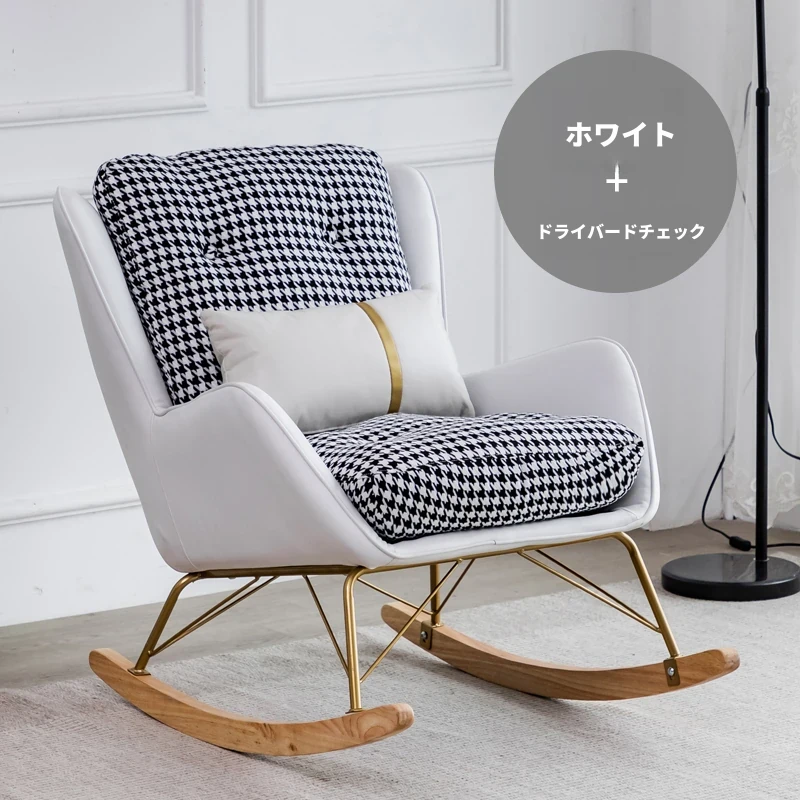 ロッキングチェア スタイル ホワイトテクノロジー布+千鳥格子コットンリネン