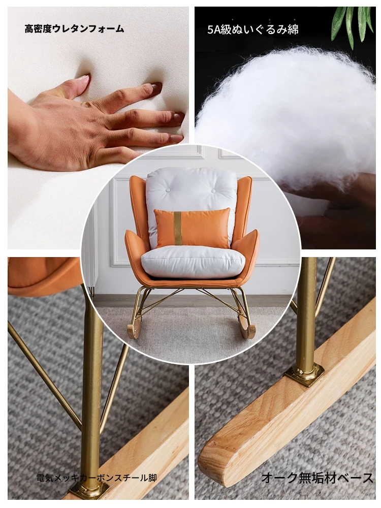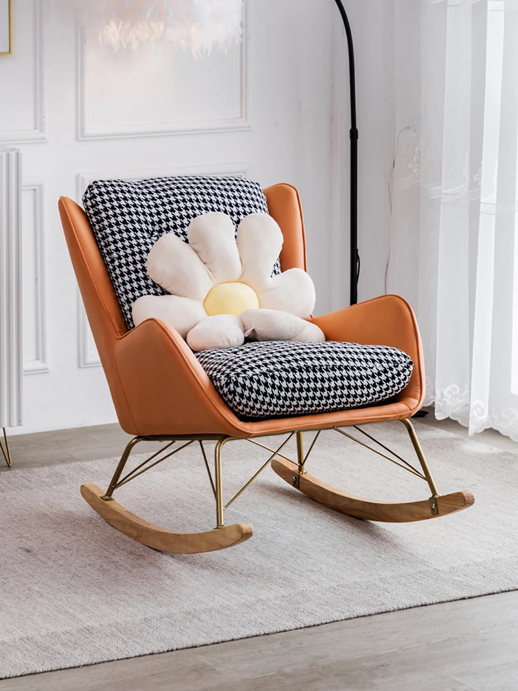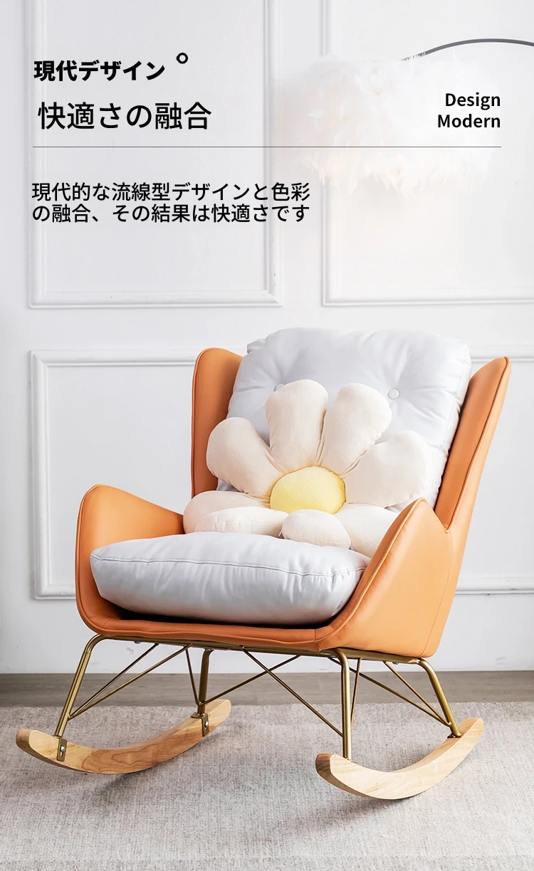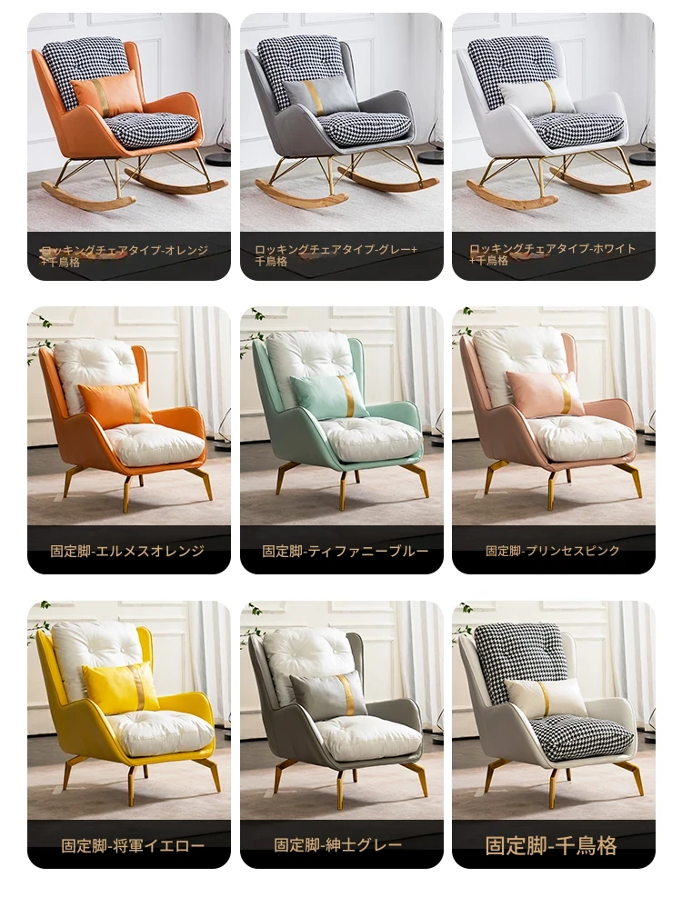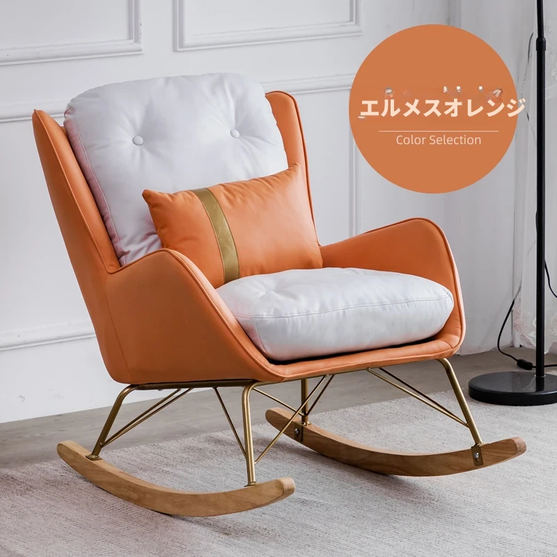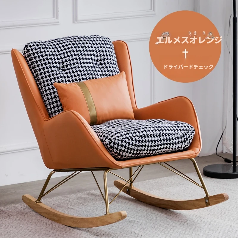 ロッキングチェア スタイル オレンジテクノロジー布+千鳥格子コットンリネン