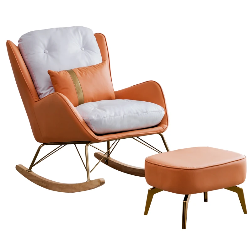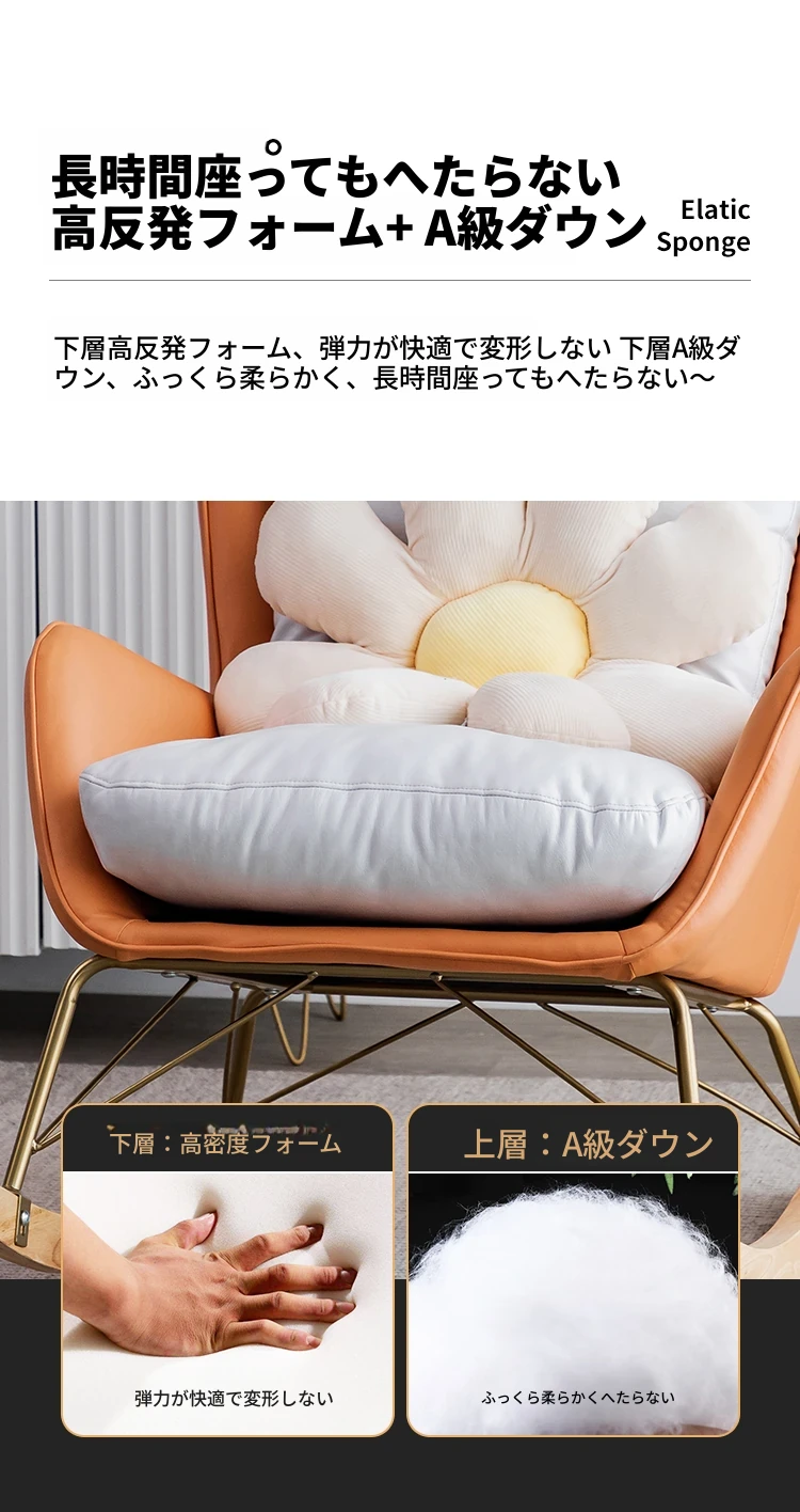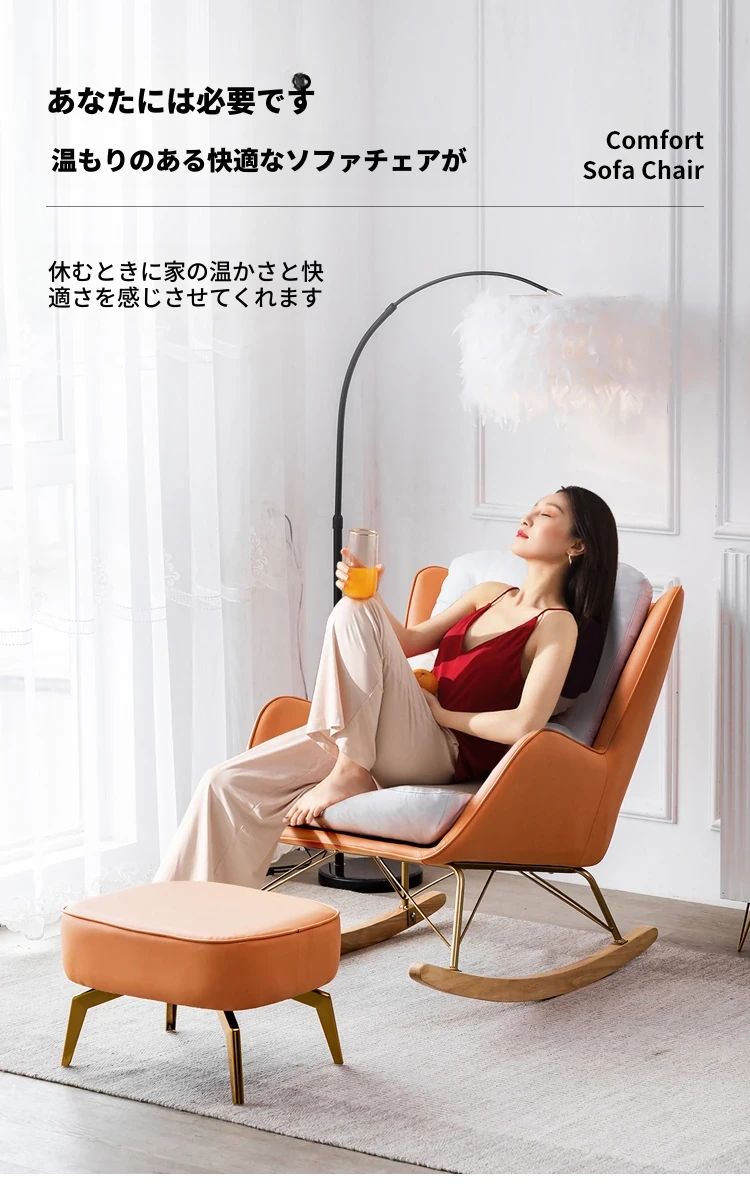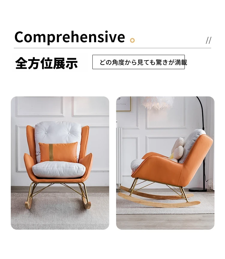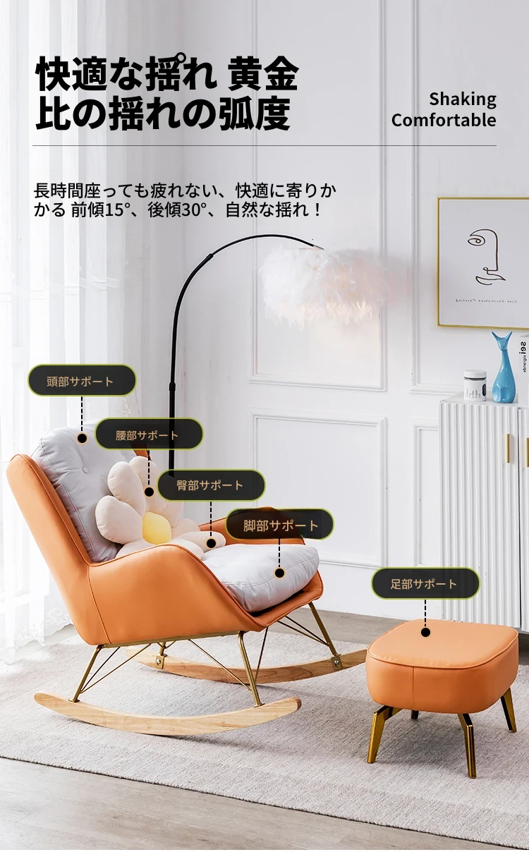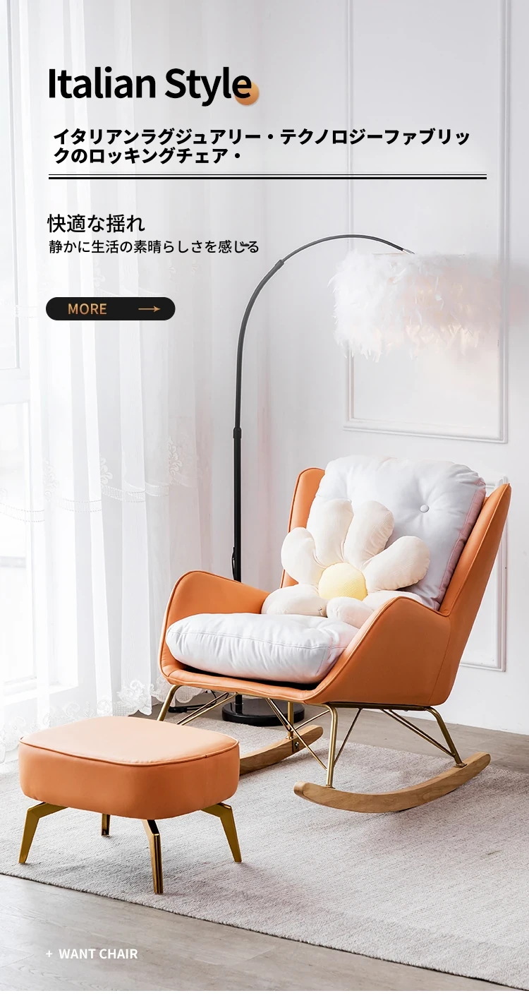ロッキングチェア スタイル オレンジテクノロジー布+千鳥格子コットンリネン