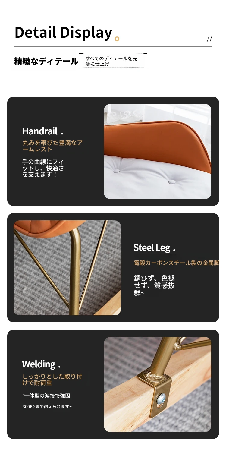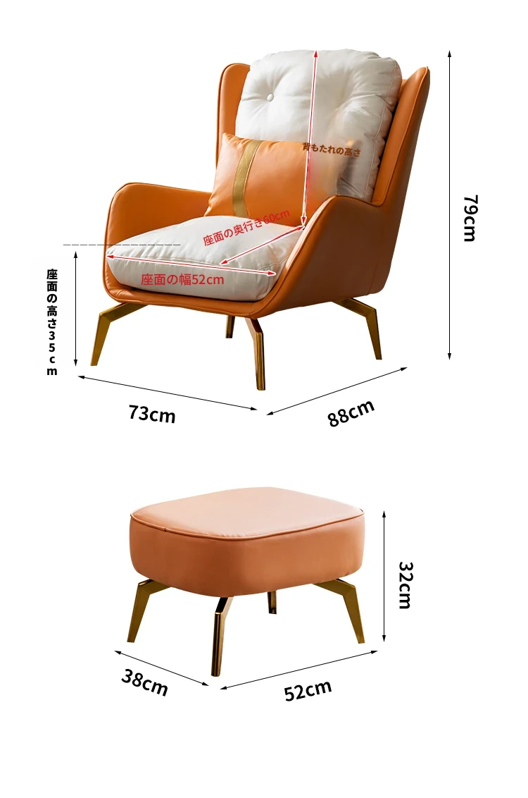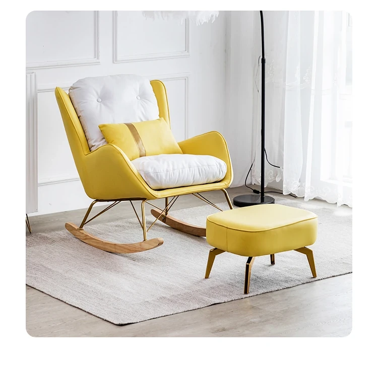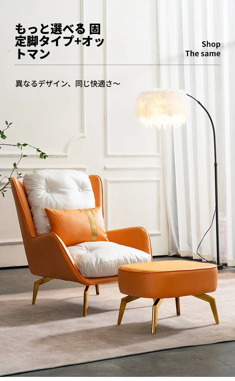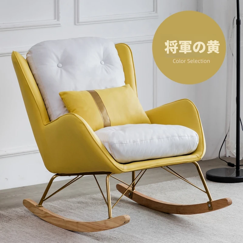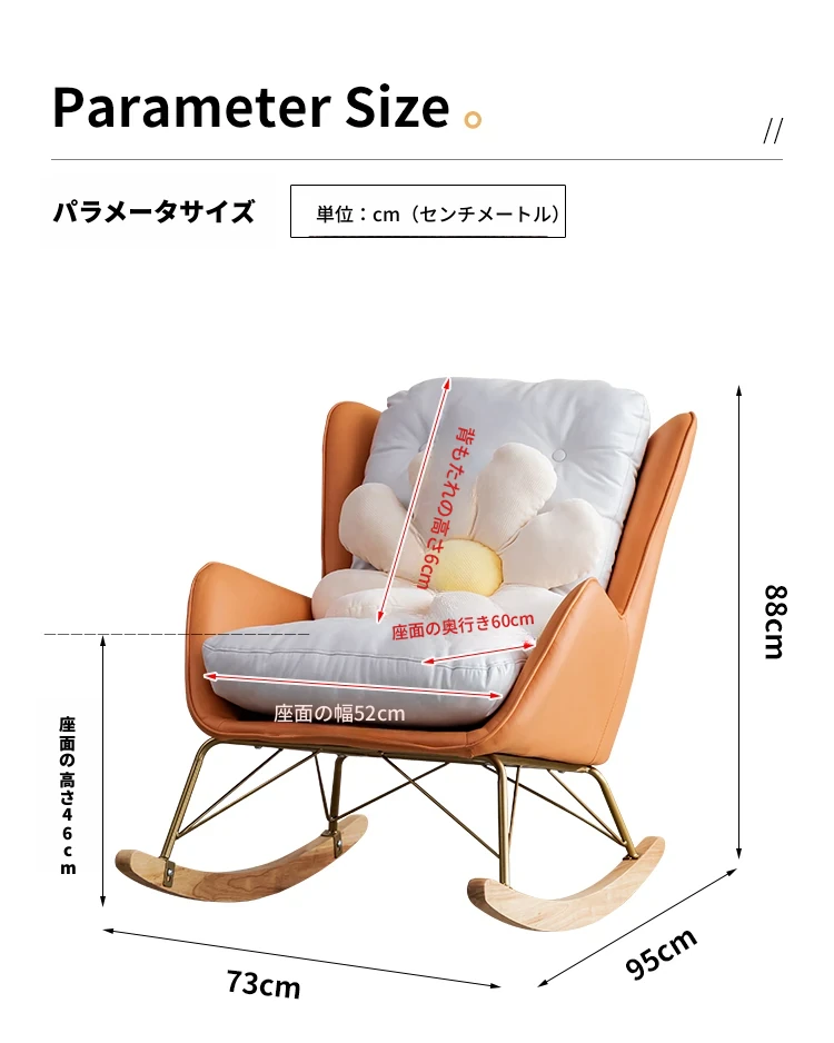 ロッキングチェア スタイル オレンジテクノロジー布+千鳥格子コットンリネン
