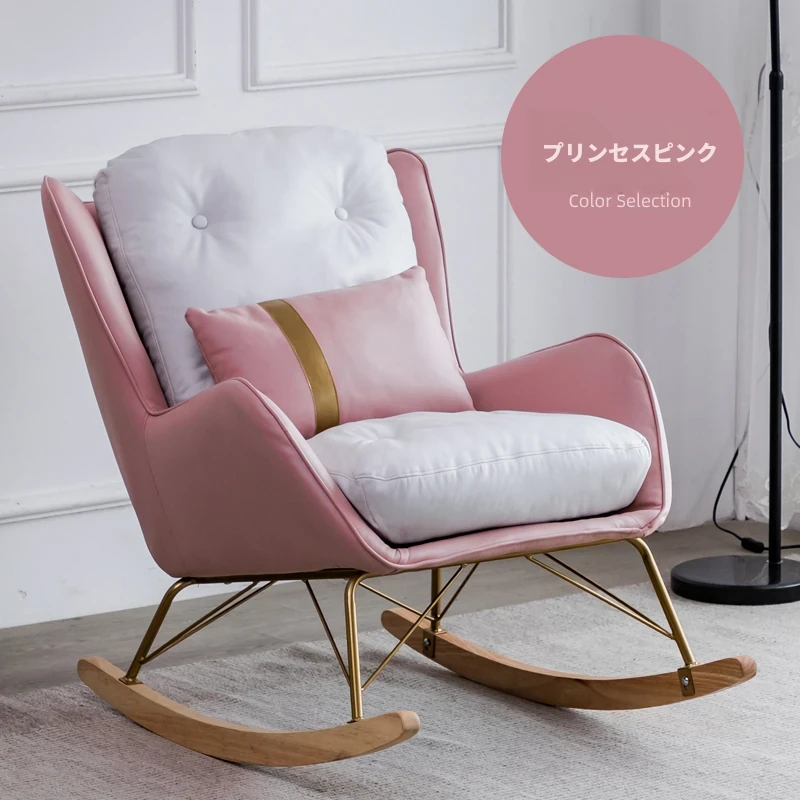 ロッキングチェア スタイル ピンク+ホワイト 【防汚テクノロジー布】