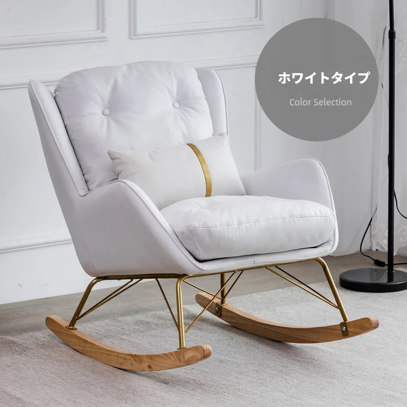 ロッキングチェア スタイル 純ホワイト 【防汚テクノロジー布】