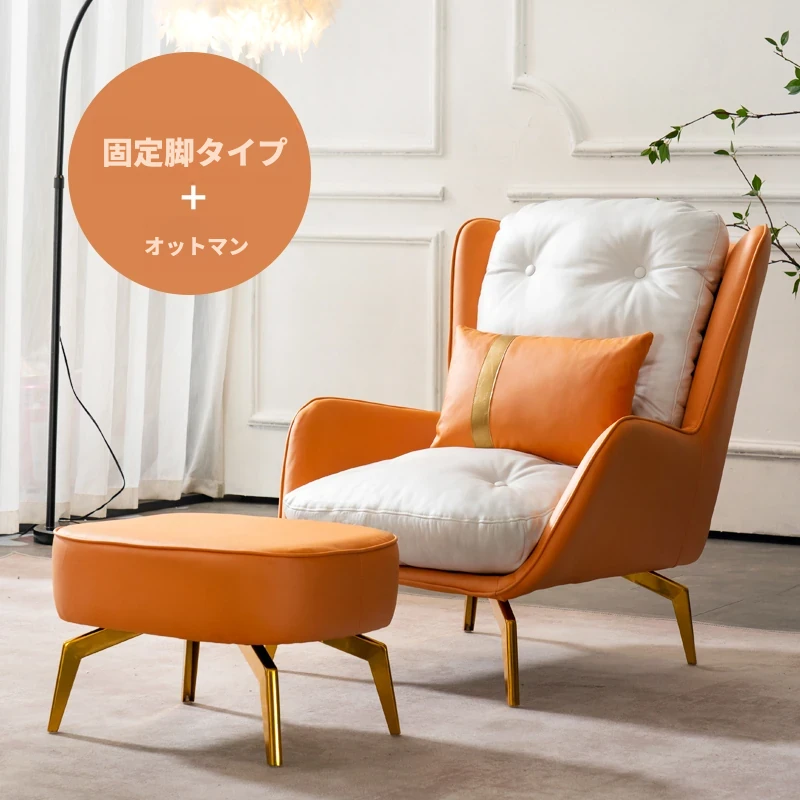 ロッキングチェア スタイル オレンジ+ホワイト 【防汚テクノロジー布】