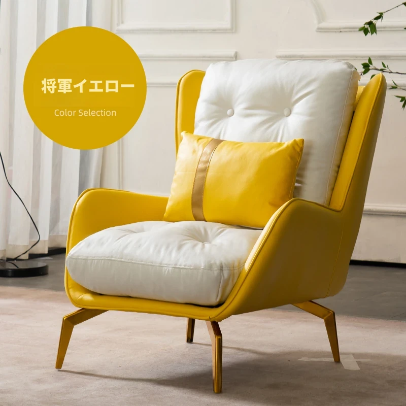 ロッキングチェア スタイル イエロー+ホワイト 【防汚テクノロジー布】