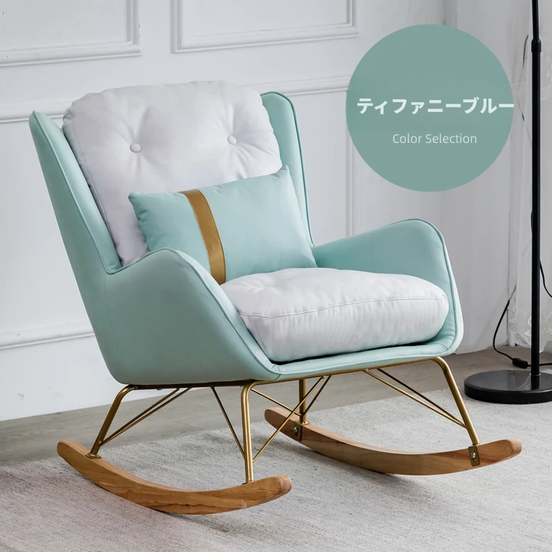 ロッキングチェア スタイル ティファニーブルー+ホワイト 【防汚テクノロジー布】