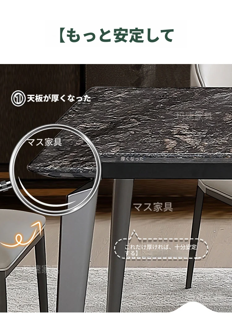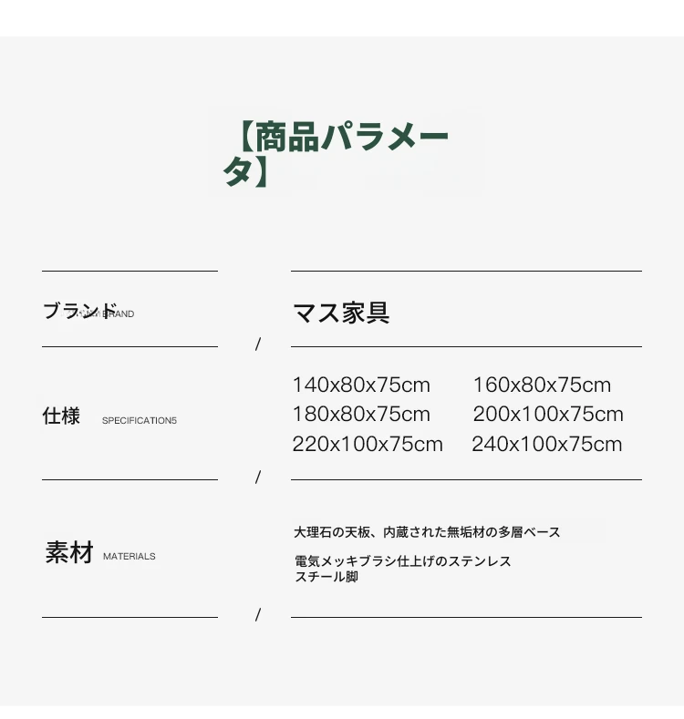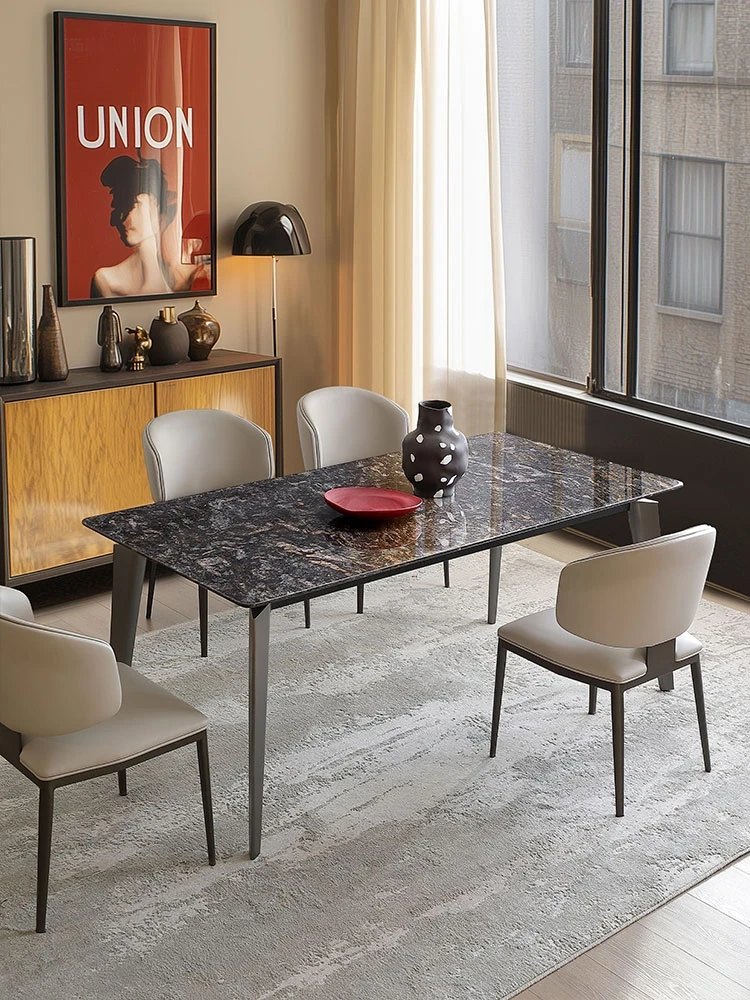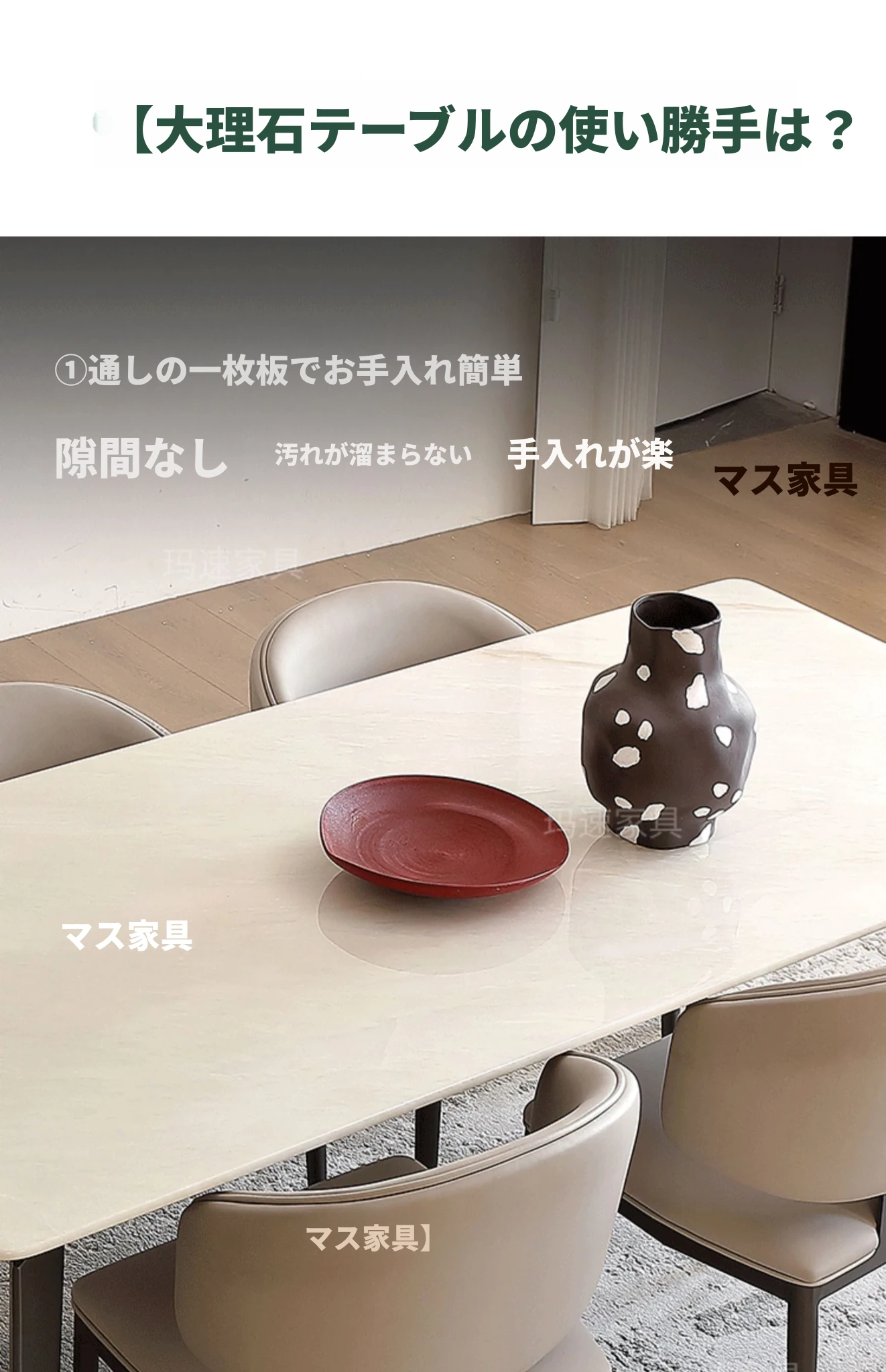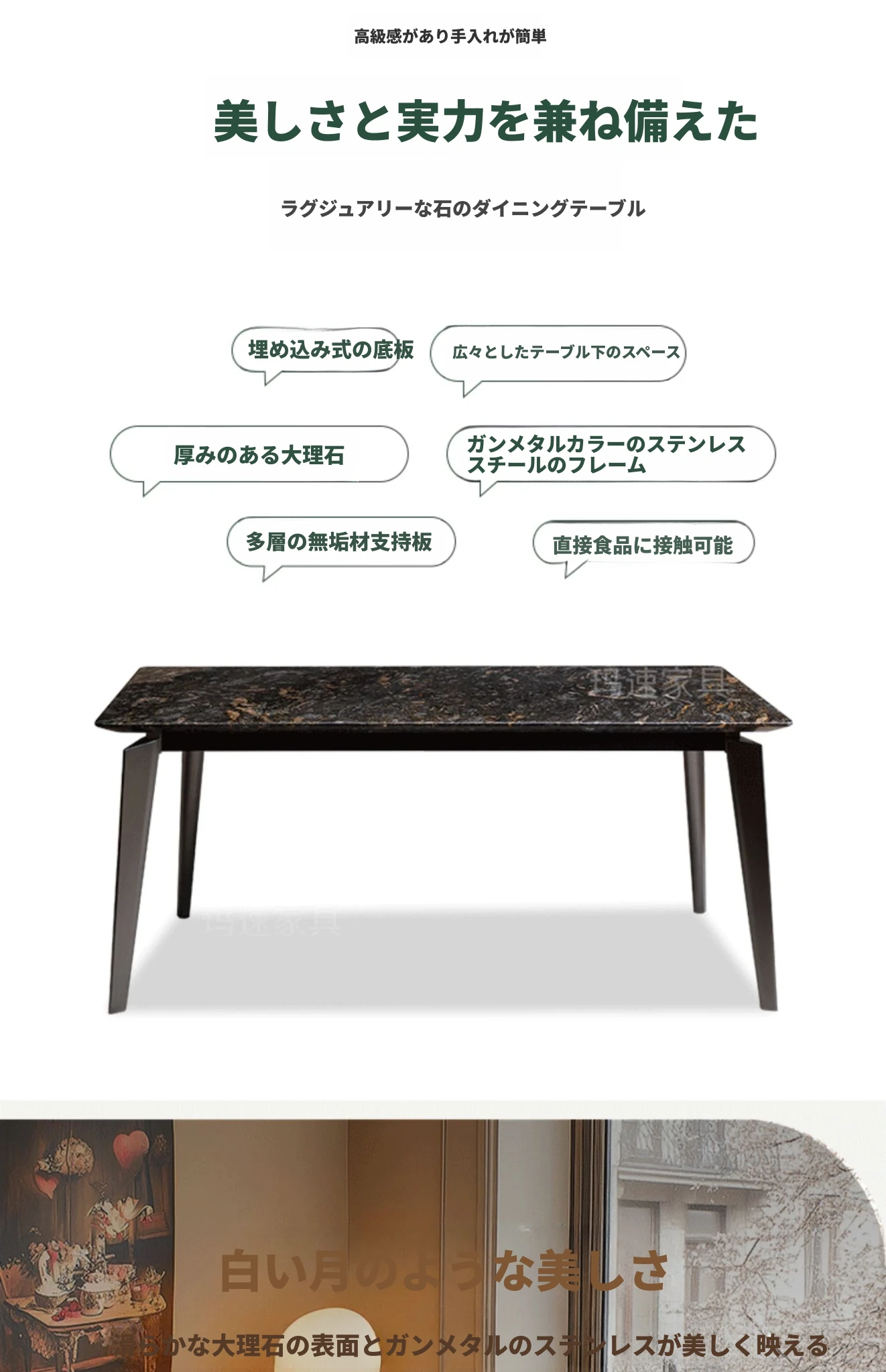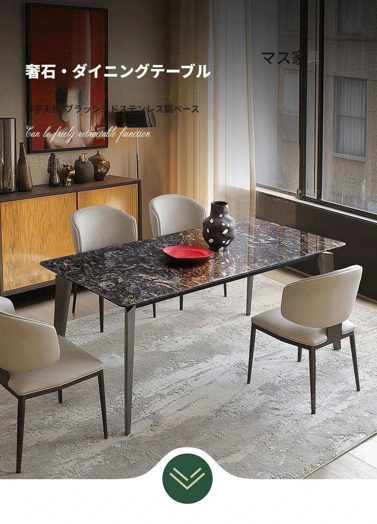 マスイ イタリアン ラグジュアリー 大理石 ダイニングテーブル プラチナダイヤモンド 天然石 厚型 2024年新作 シンプル長方形テーブル - 高級感あふれるデザインで、特別な食卓を演出します!