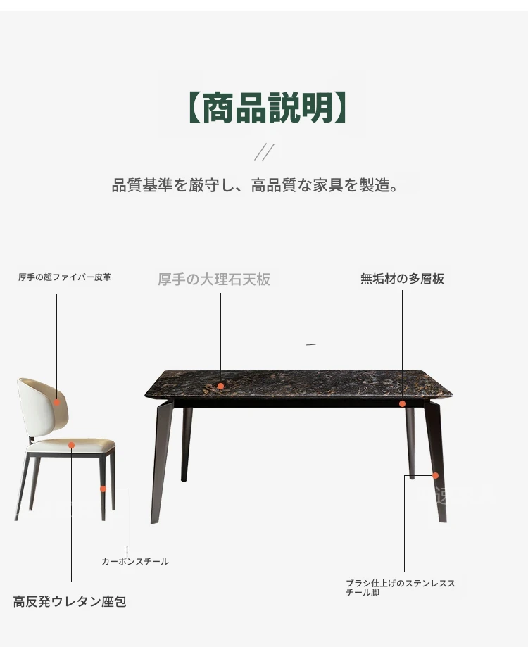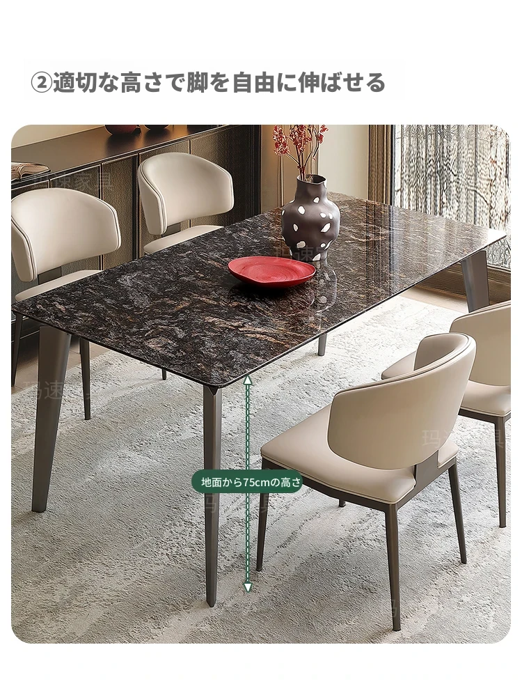 プラチナダイヤモンド天然ラグジュアリーストーンダイニングテーブル+055椅子6脚