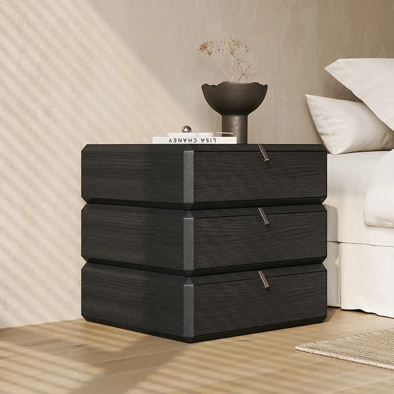 パースン記 イタリアンミニマリストデザイン ベッドサイドキャビネット 輸入ウォールナット色 多機能回転引き出し付き おしゃれで便利な収納家具