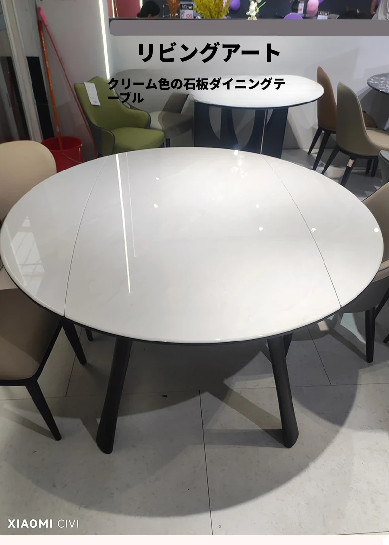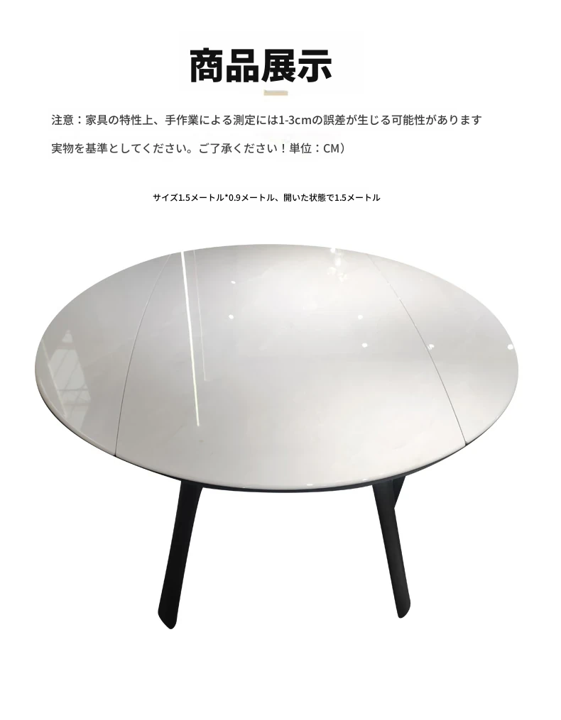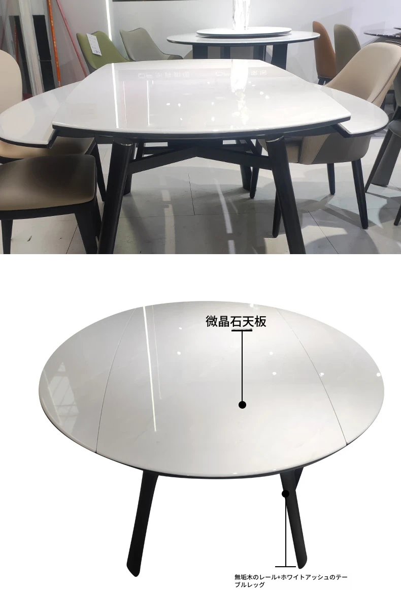 1.5メートル実木ダイニングテーブル&チェアセット|モダンシンプルで伸縮可能な岩板テーブル|家庭用可変円形テーブル|美しい微晶石デザインでおしゃれな食卓を演出!