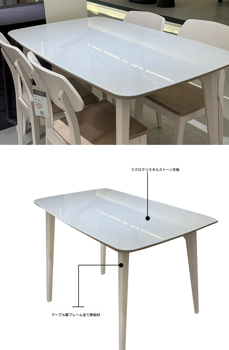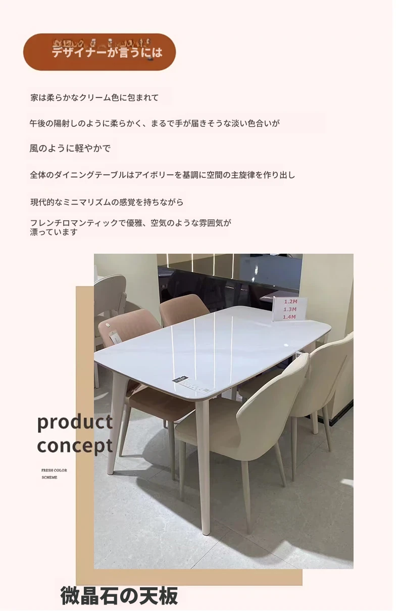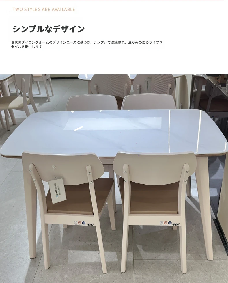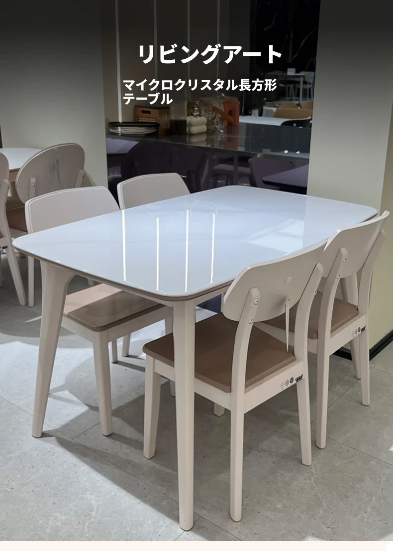 クリーム風の長方形ダイニングテーブル新作!モダンでシンプルなデザイン、小型の居住空間に最適な天然木とミクロクリスタル石の組み合わせ。リビングや家庭での使用にぴったりです!