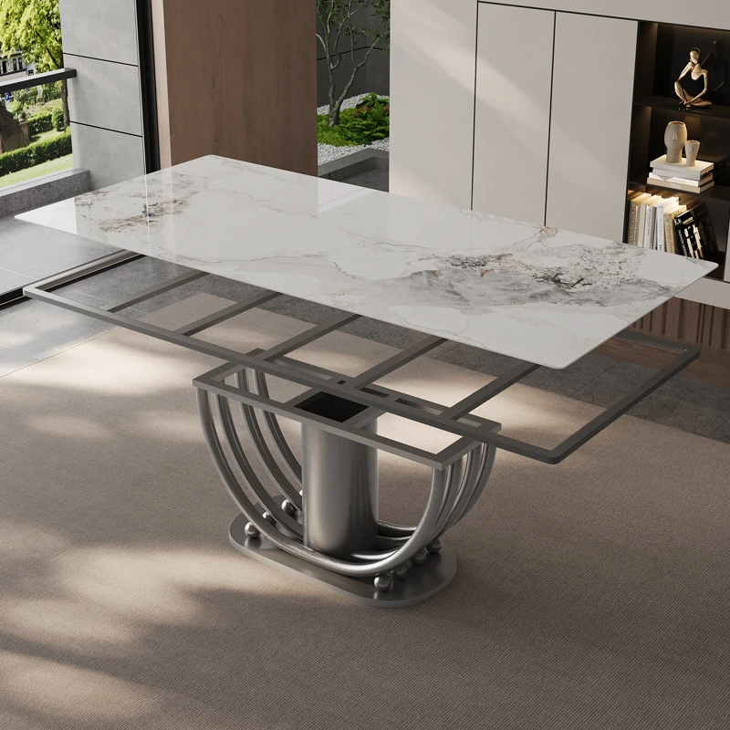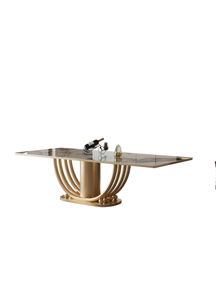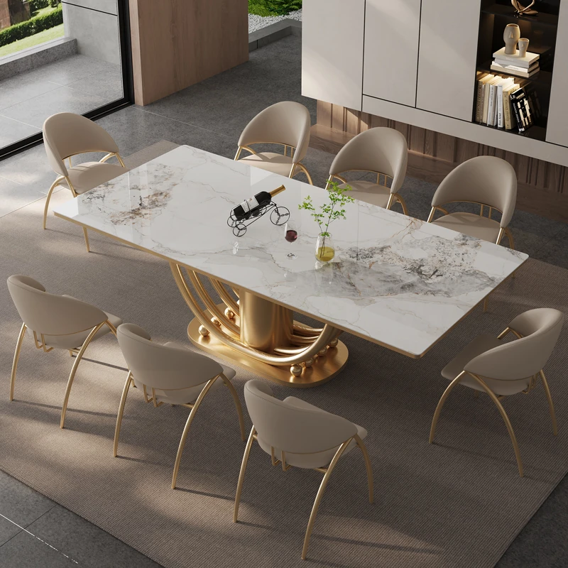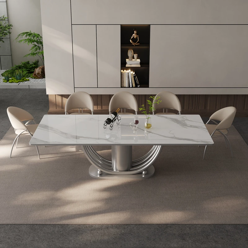 イタリアンラグジュアリーの天然大理石製ダイニングテーブル - モダンでシンプルなデザイン、高級感あふれる長方形、別荘にぴったりの食卓セット。おしゃれな食事空間を演出します!