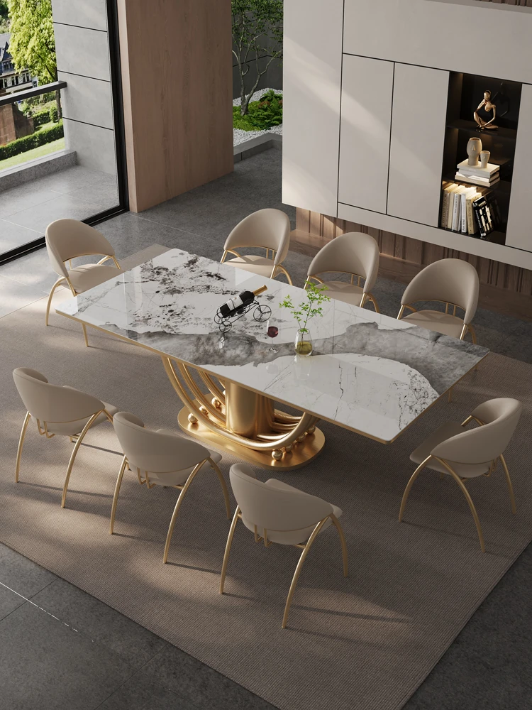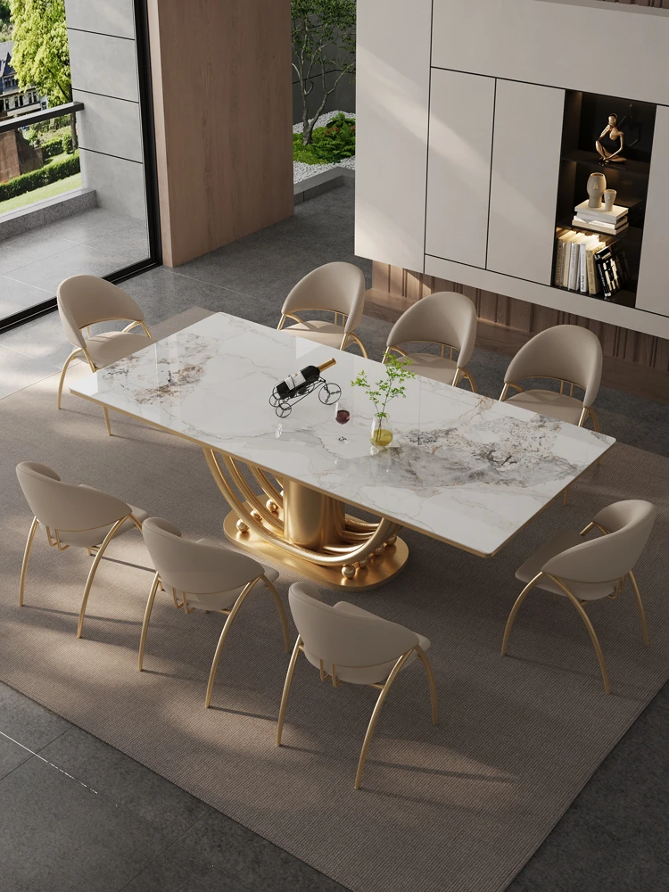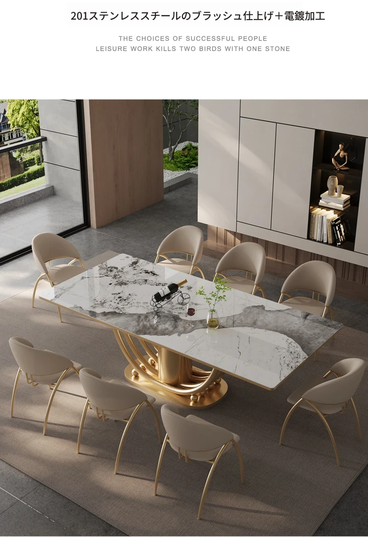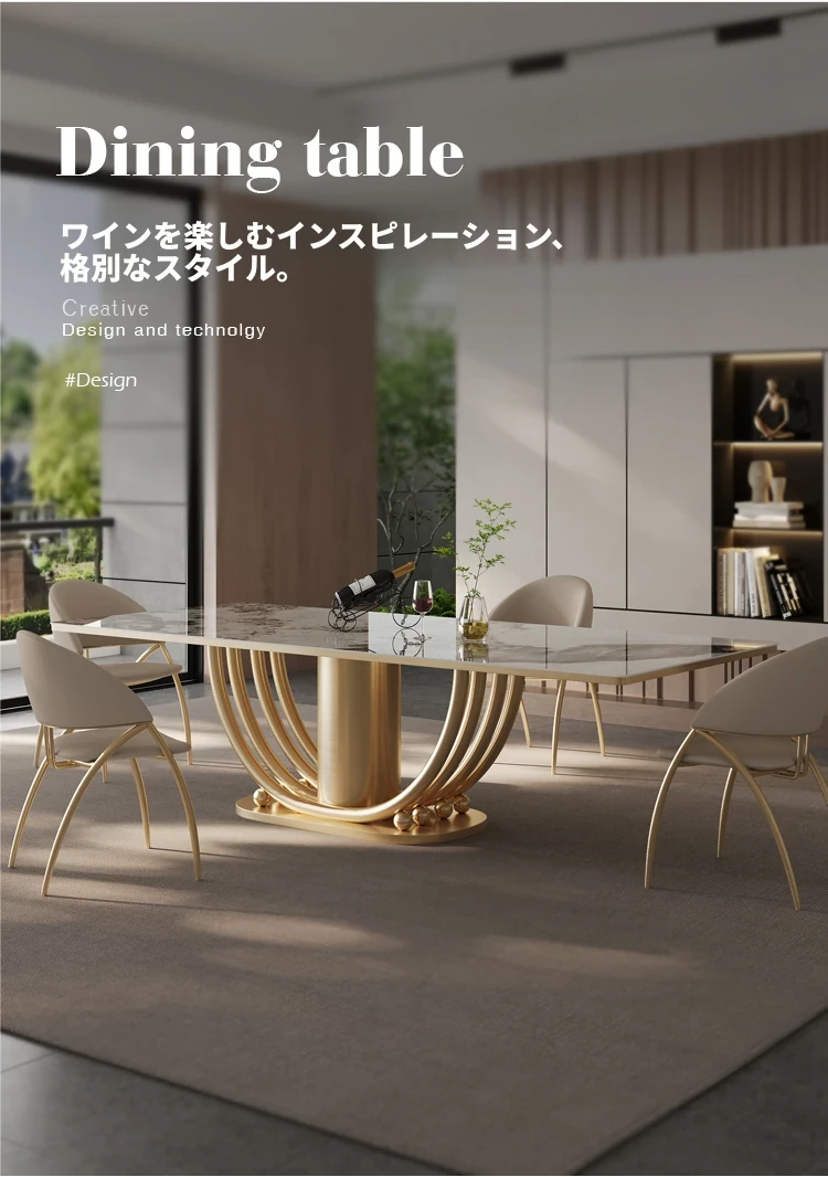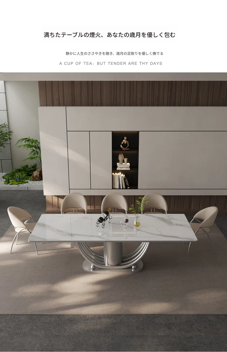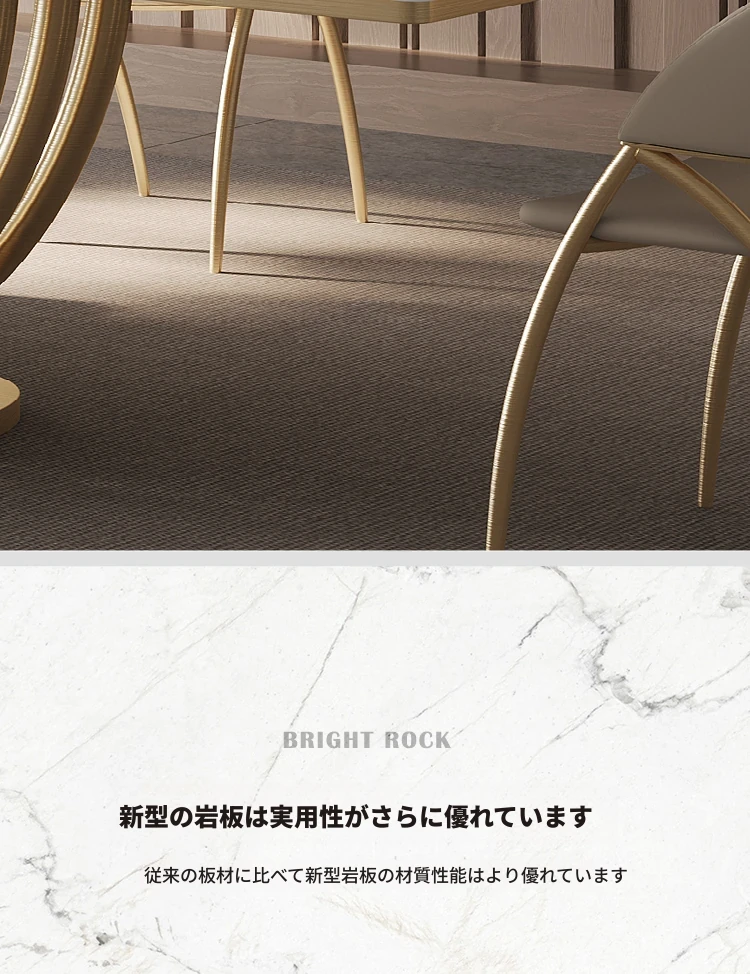 2025年新作!イタリアンスタイルのライトラグジュアリーな岩板ダイニングテーブル&チェアセット。モダンでシンプル、小さな家でも使える長方形デザイン。食卓を華やかに演出します!