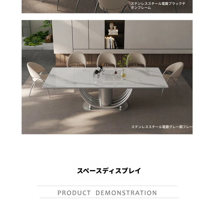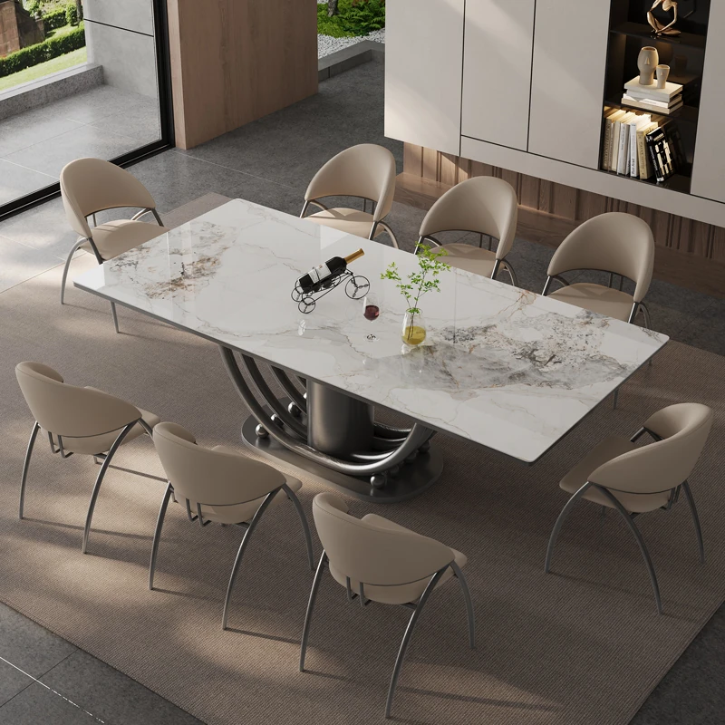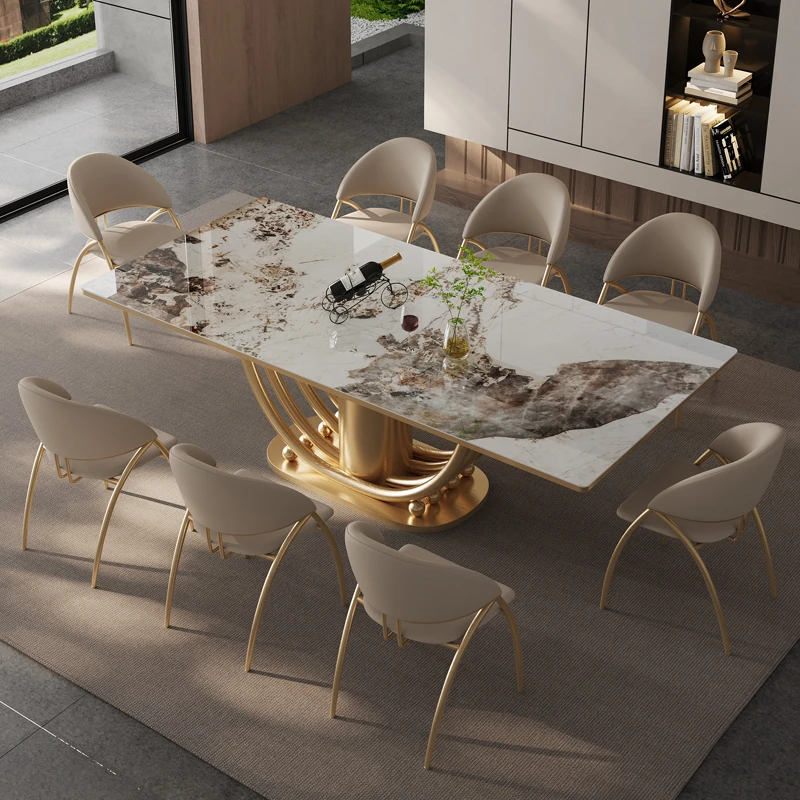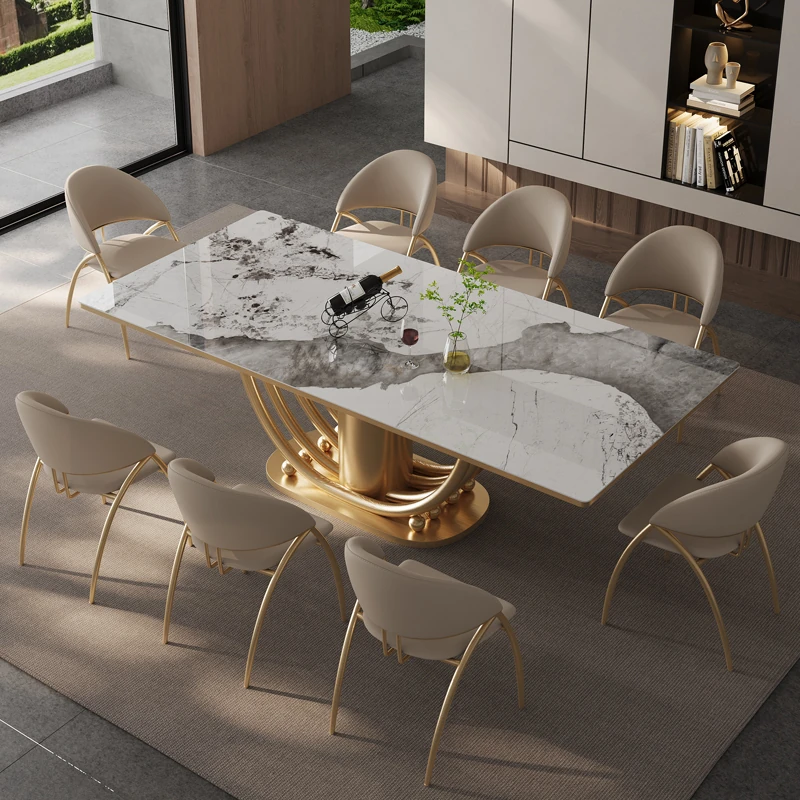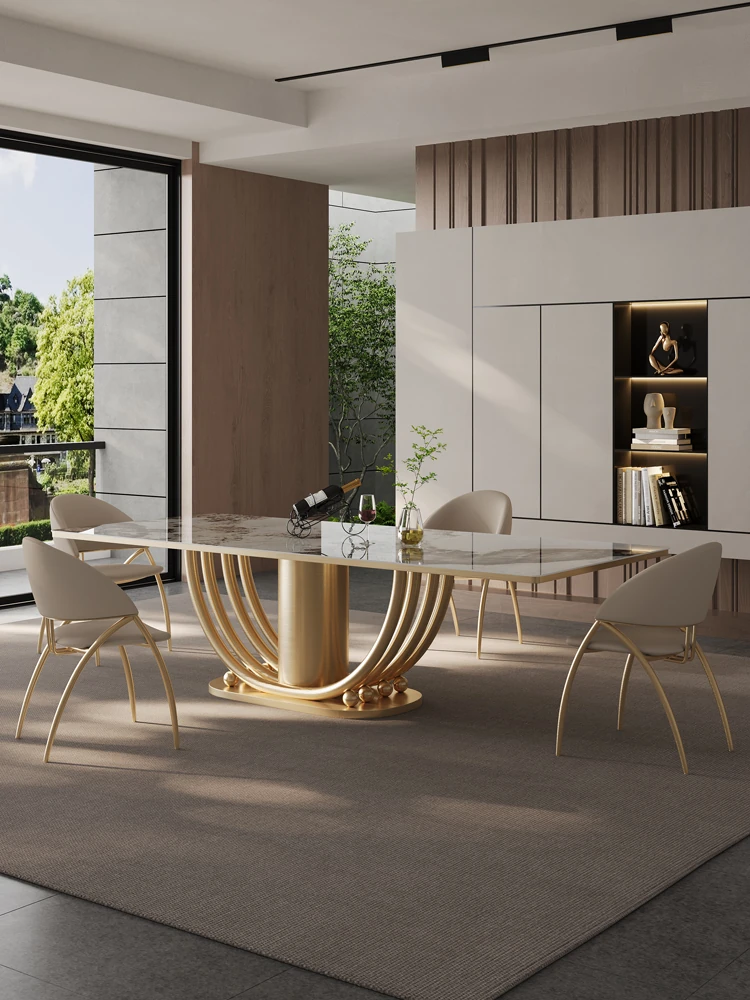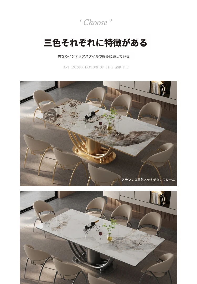 2025年新作!イタリアンスタイルのライトラグジュアリーな岩板ダイニングテーブル&チェアセット。モダンでシンプル、小さな家でも使える長方形デザイン。食卓を華やかに演出します!