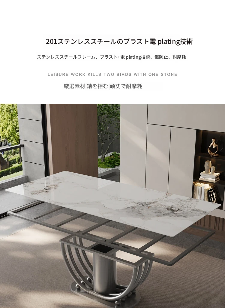 【新疆送料無料】光沢ある岩板製ダイニングテーブル&チェアセット!伸縮&折りたたみ可能、モダンでシンプルなデザイン。狭いお部屋にもぴったりな軽やかな贅沢感をお楽しみください!