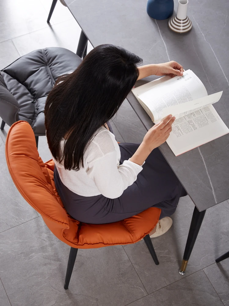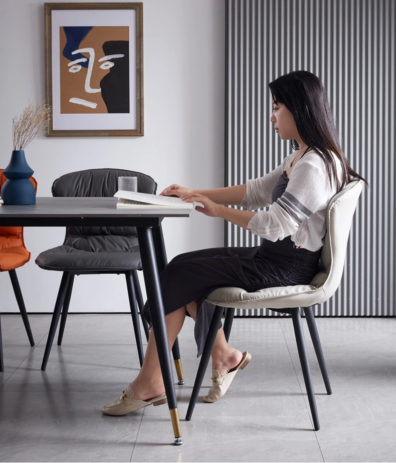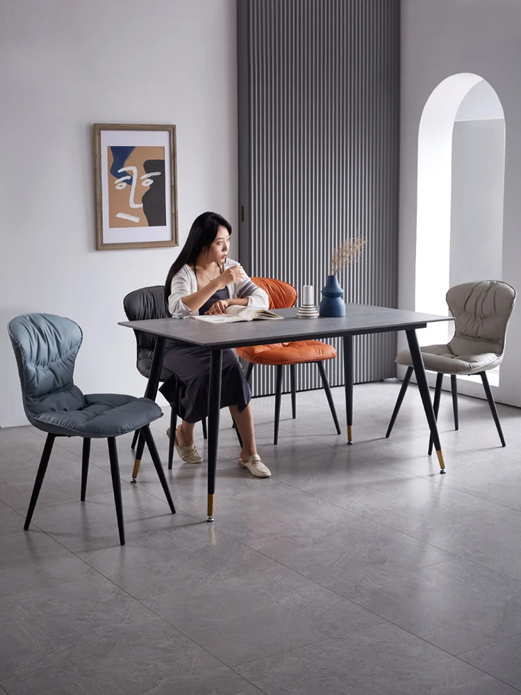モダンなシンプルデザインの家庭用ダイニングチェア!軽やかなラグジュアリー感を演出し、人気のインスタ映え椅子。鉄製の背もたれで、ホテルやカフェ、ネイルサロンにも最適な一脚です。