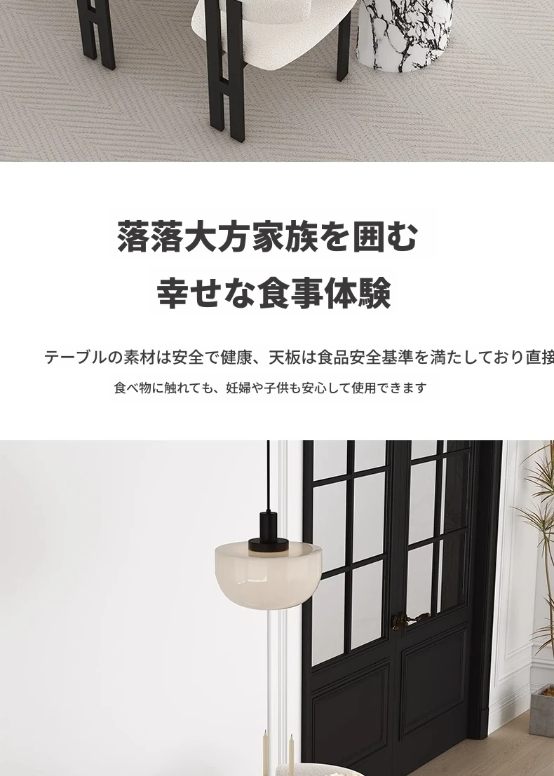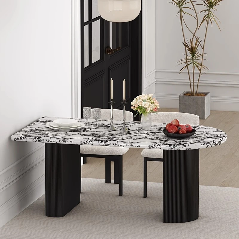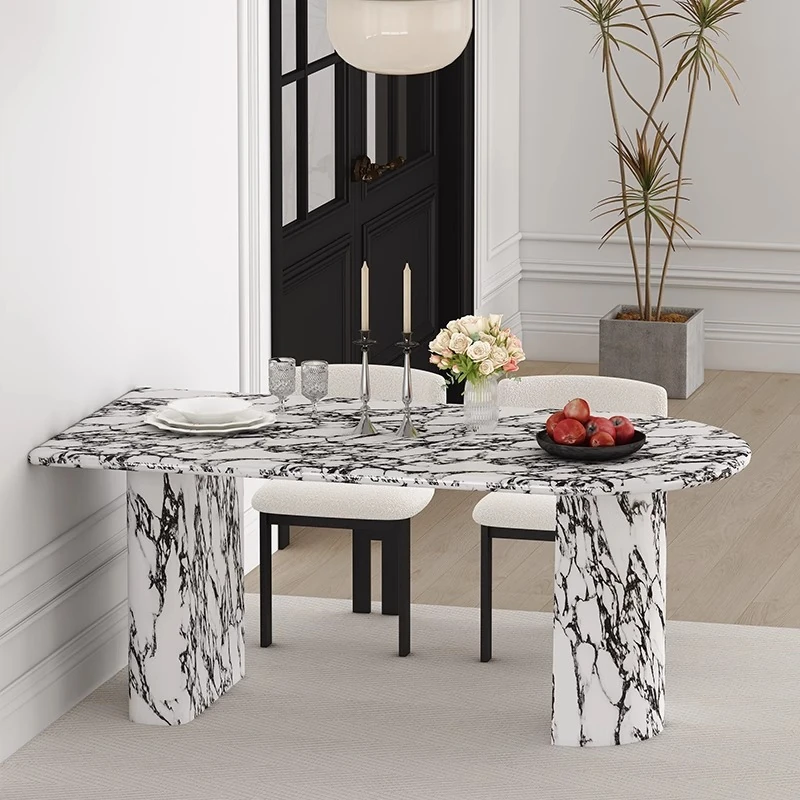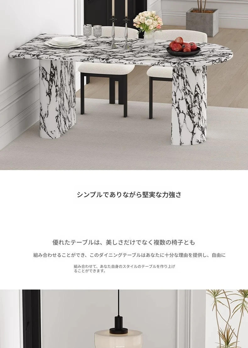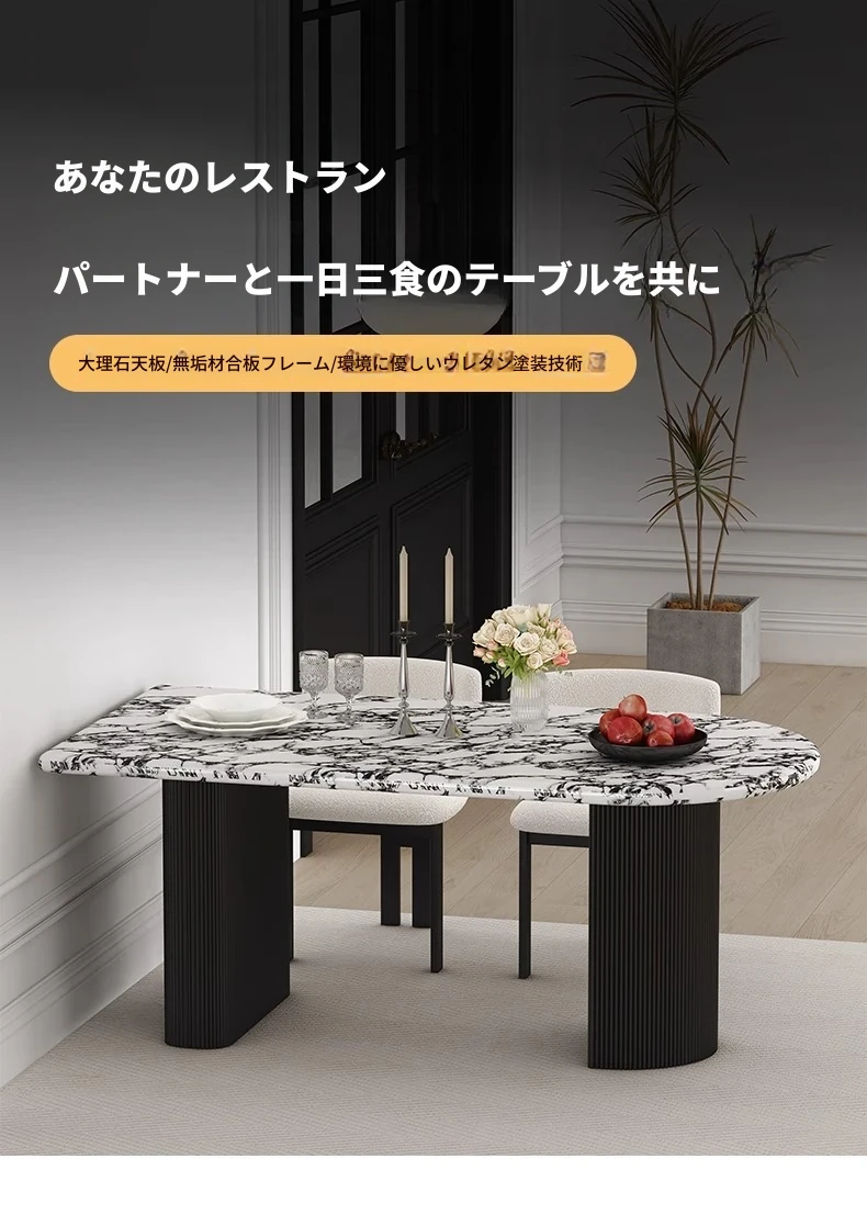 モダンでシンプルな大理石ダイニングテーブル - フレンチ・ヨーロピアン・ビンテージスタイル、ラグジュアリーな実木仕上げ、ボッテガ・ヴェネタの高級感を演出!