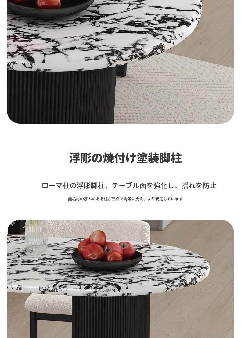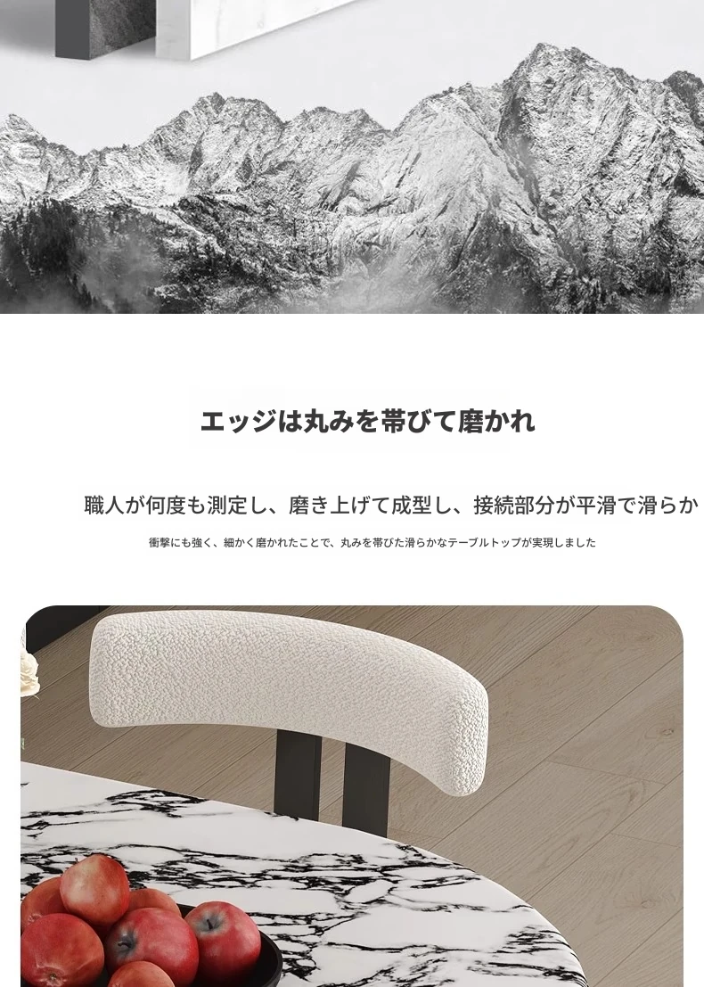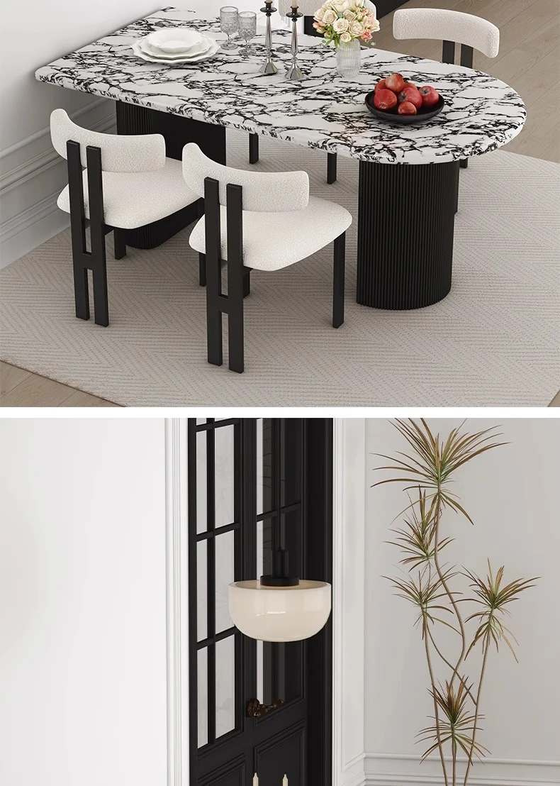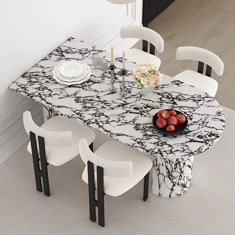 モダンでシンプルな大理石ダイニングテーブル - フレンチ・ヨーロピアン・ビンテージスタイル、ラグジュアリーな実木仕上げ、ボッテガ・ヴェネタの高級感を演出!