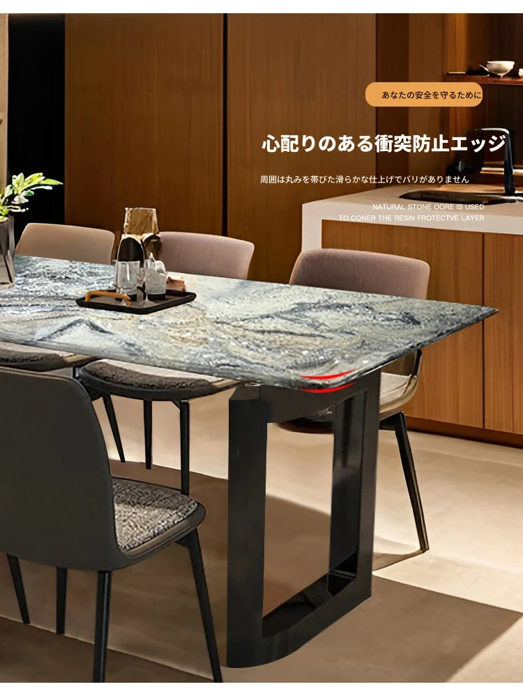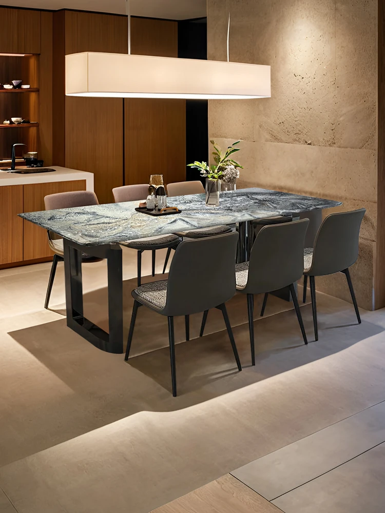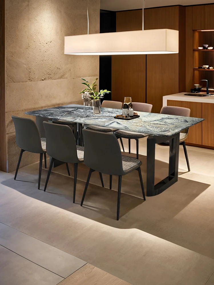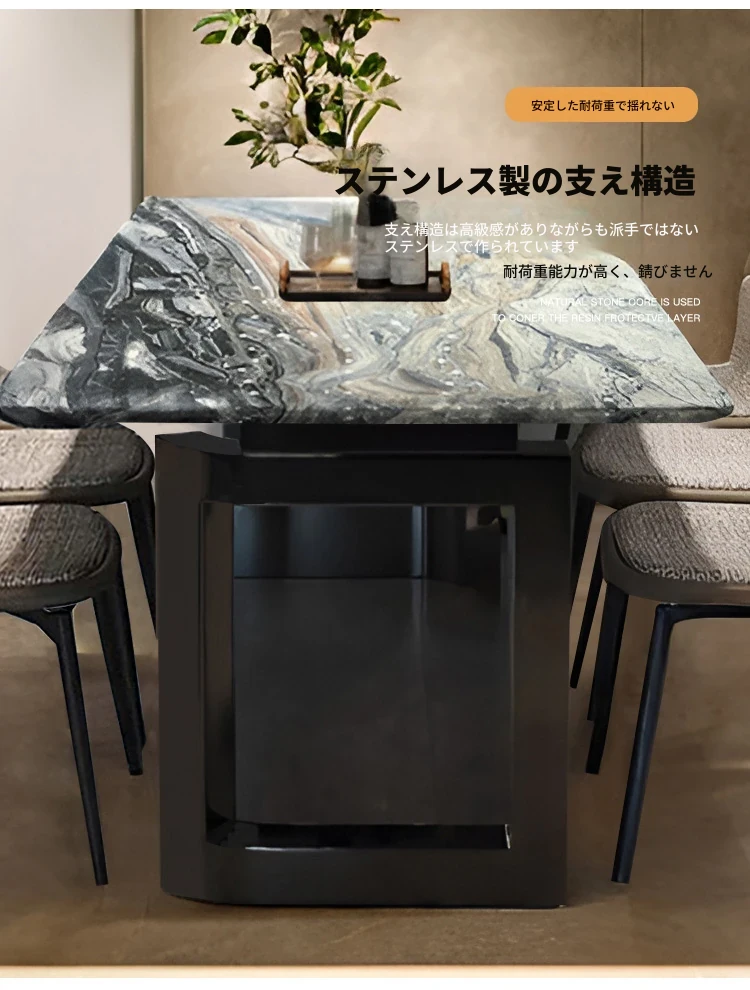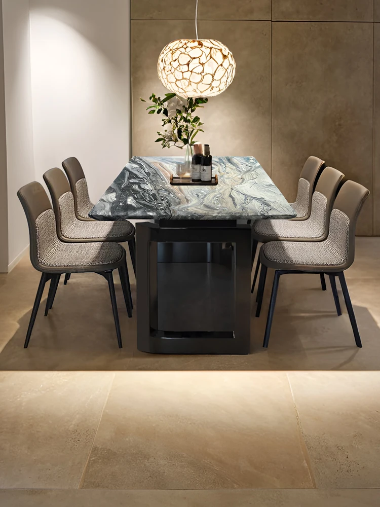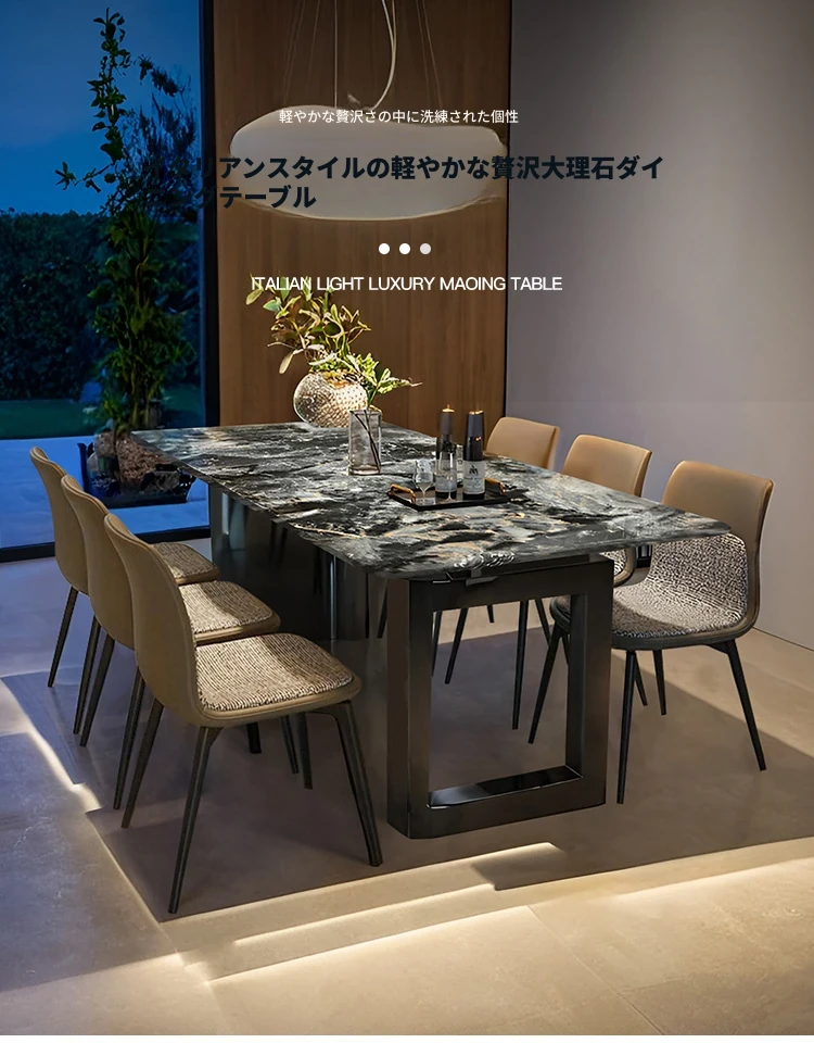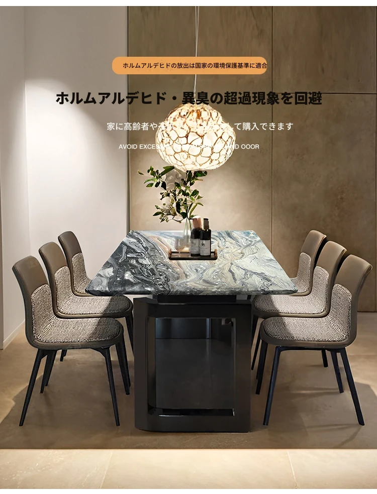 マスオリオグレーラグジュアリーストーン大理石ダイニングテーブルセット|モダンミニマルデザイン|小スペースに最適な長方形テーブルとチェアの組み合わせ|洗練された食卓を演出します!