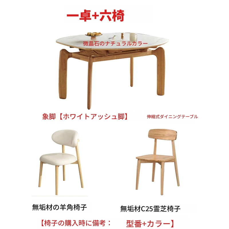 一卓六椅子【無垢椅子】ナチュラルカラーのホワイトアッシュテーブル脚