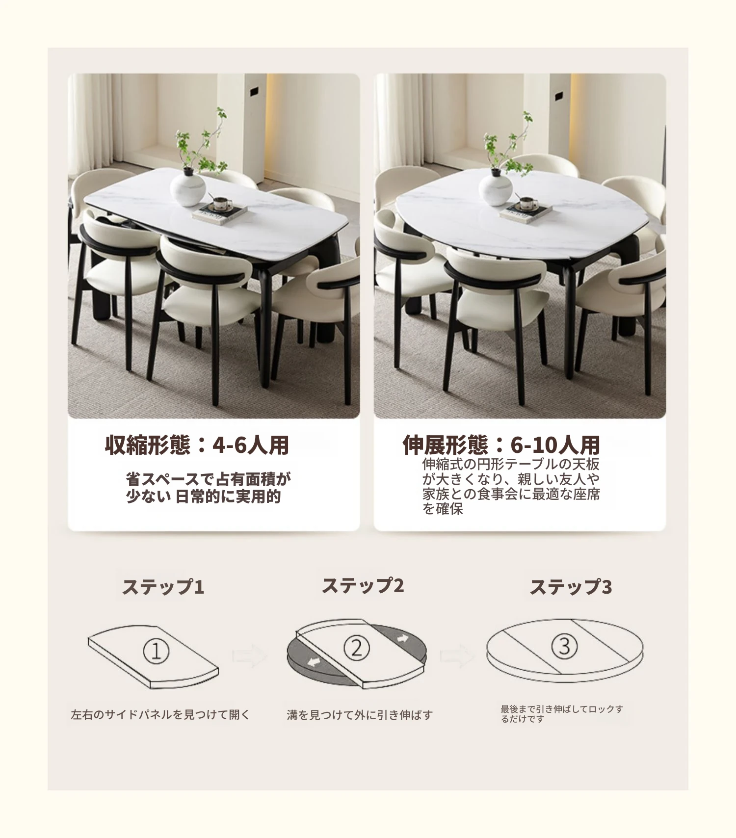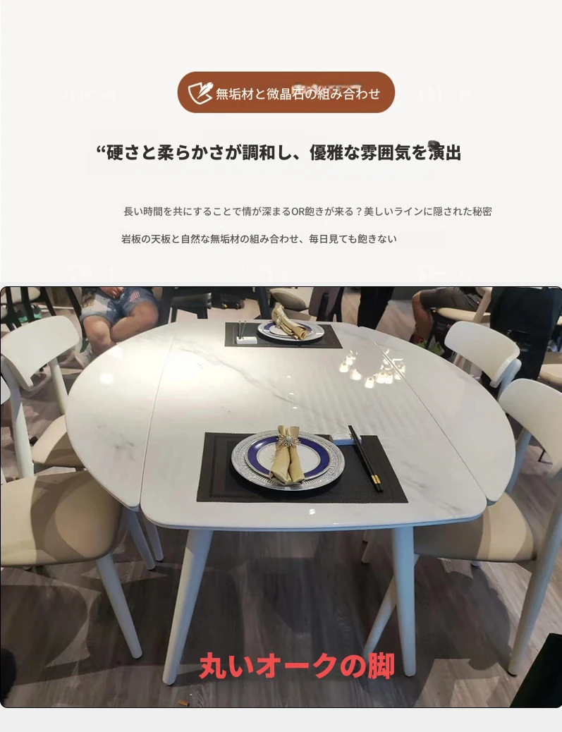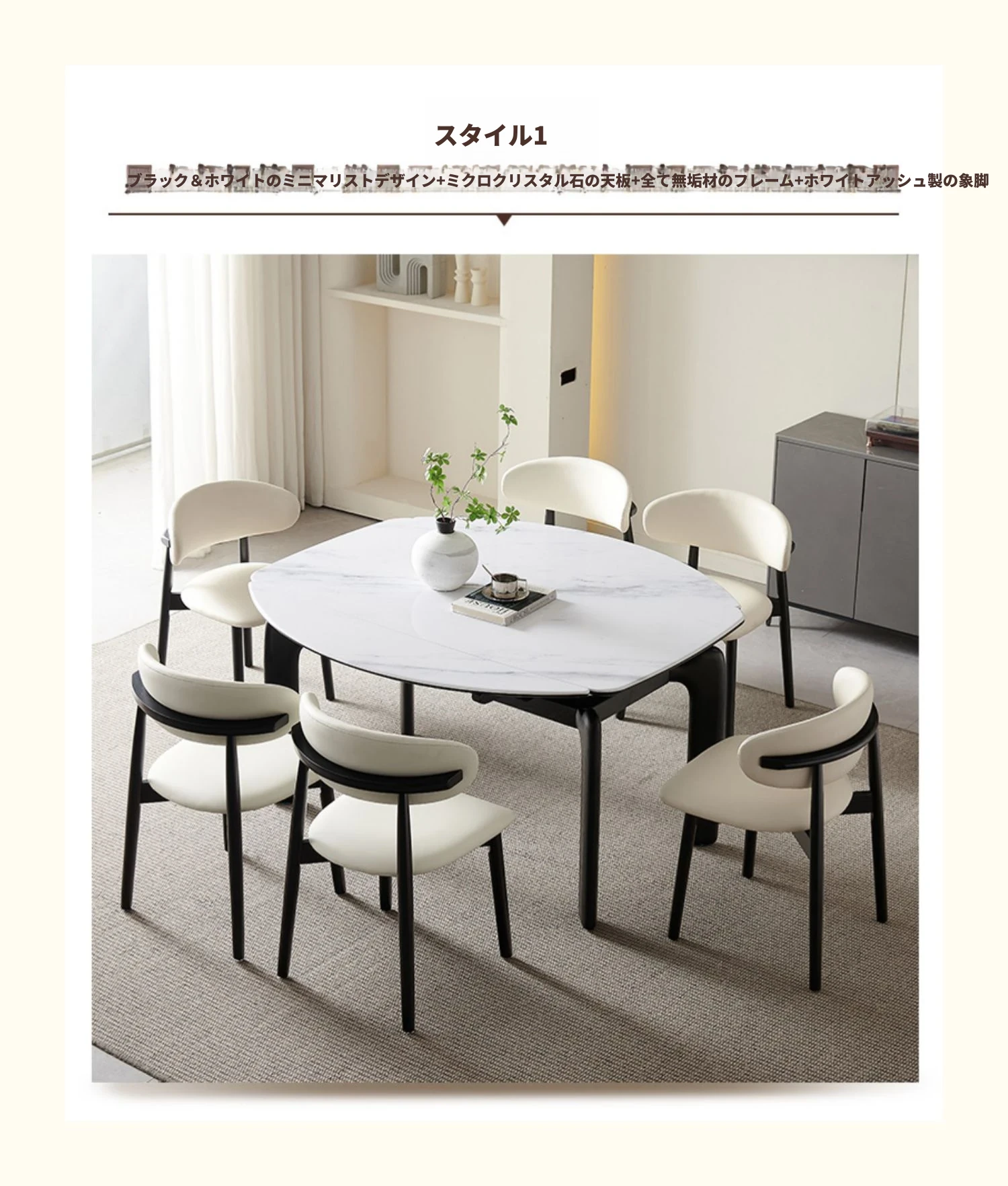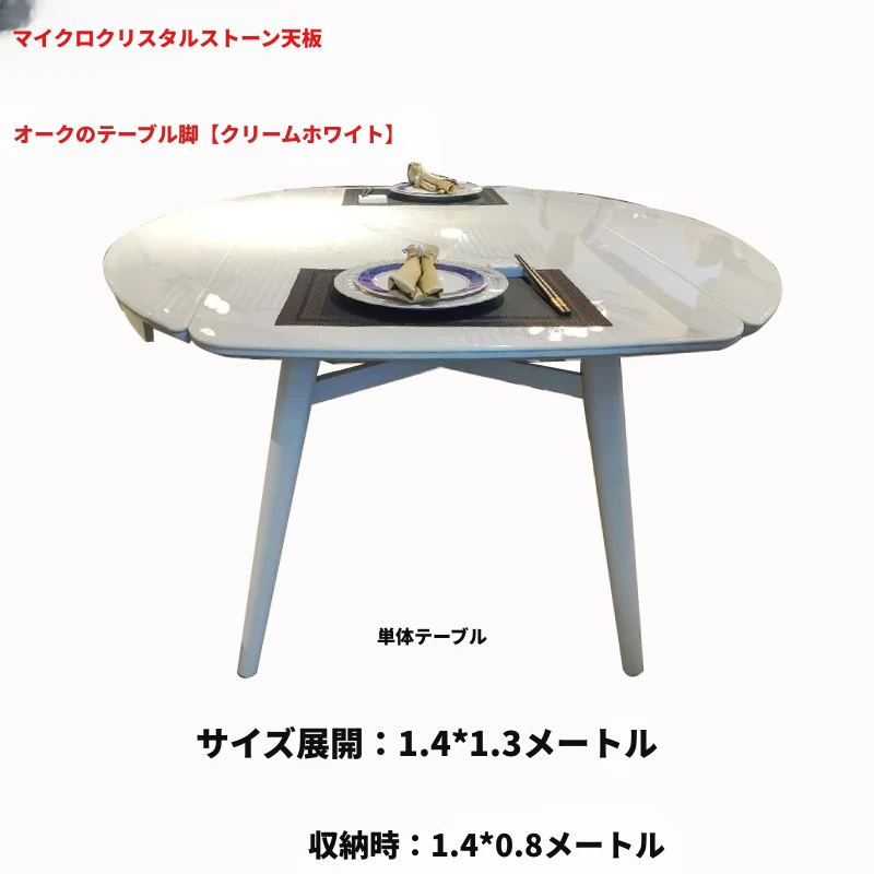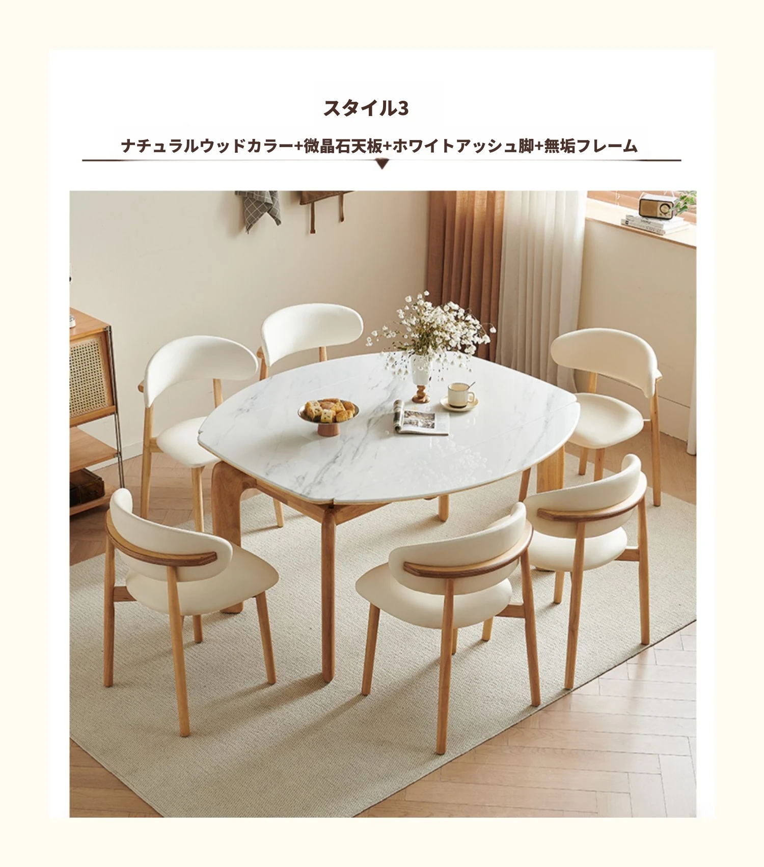 現代的なミニマリズム!折りたたみ式の微晶石ダイニングテーブル&チェアセット - 小さなスペースに最適な白アッシュ材使用。四角形と円形の2WAYデザインで、家族や友人との食事をスタイリッシュに楽しめます!