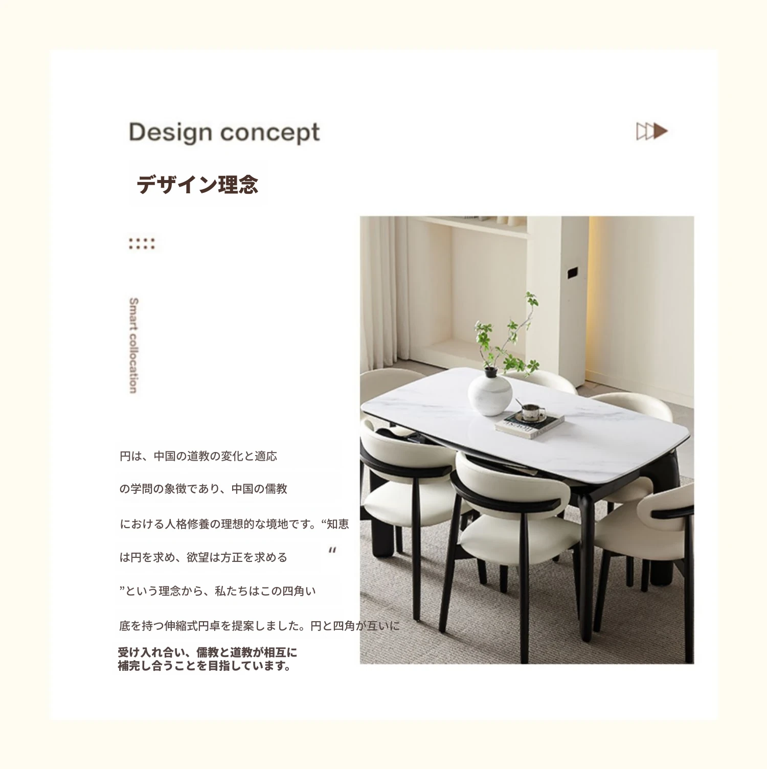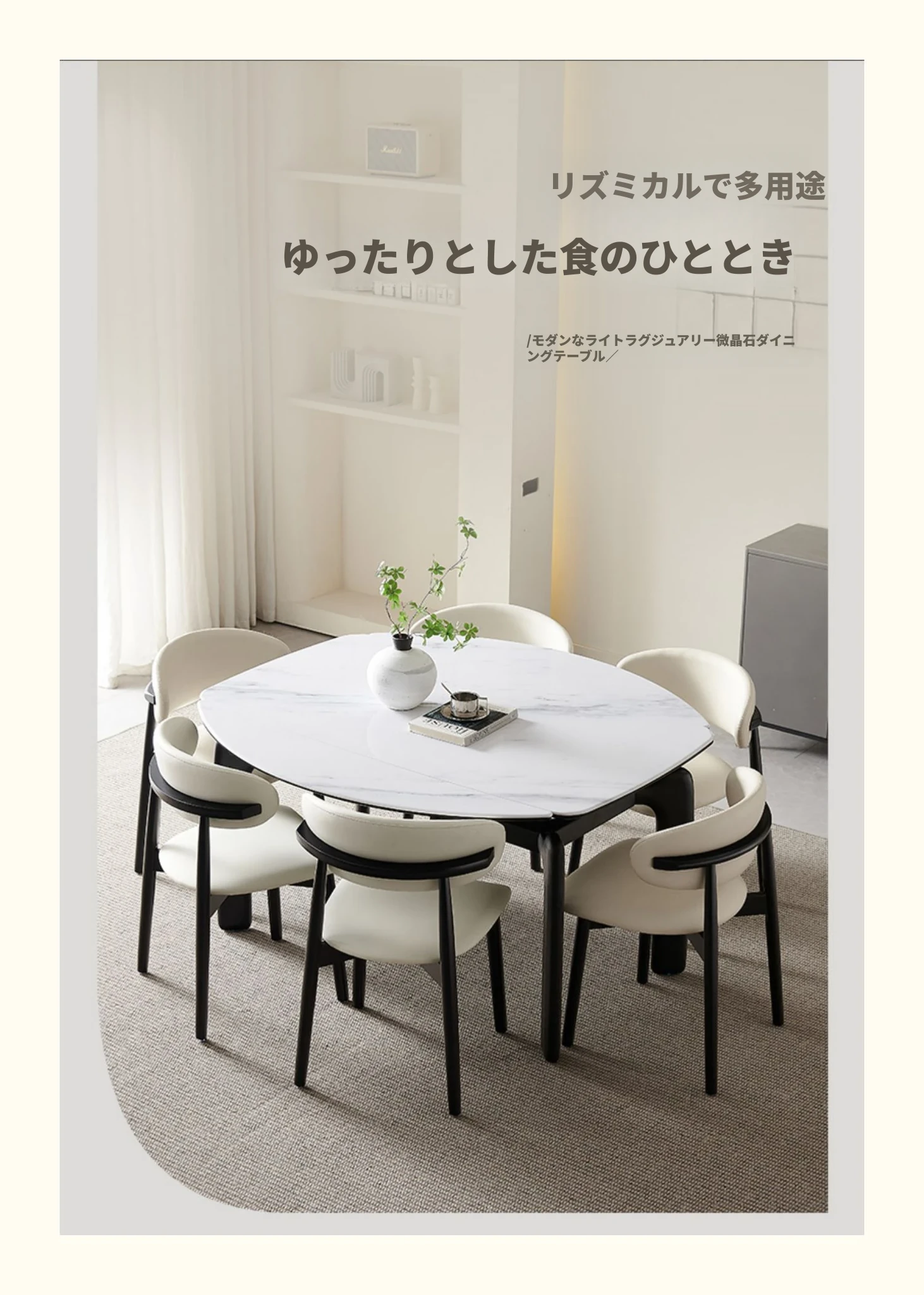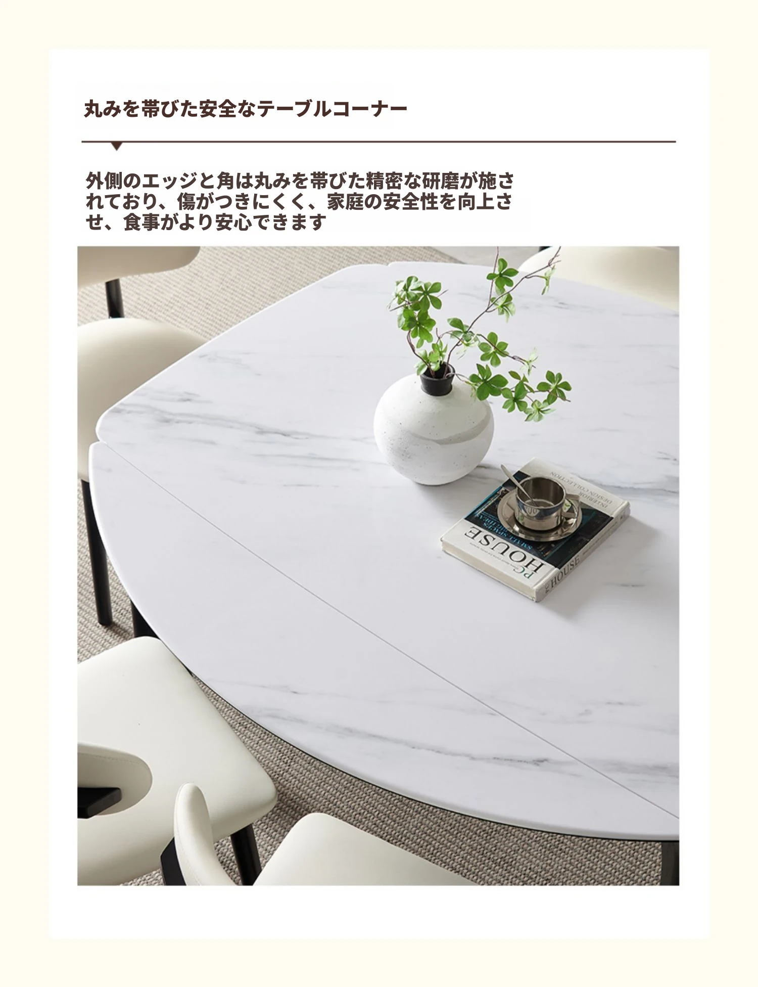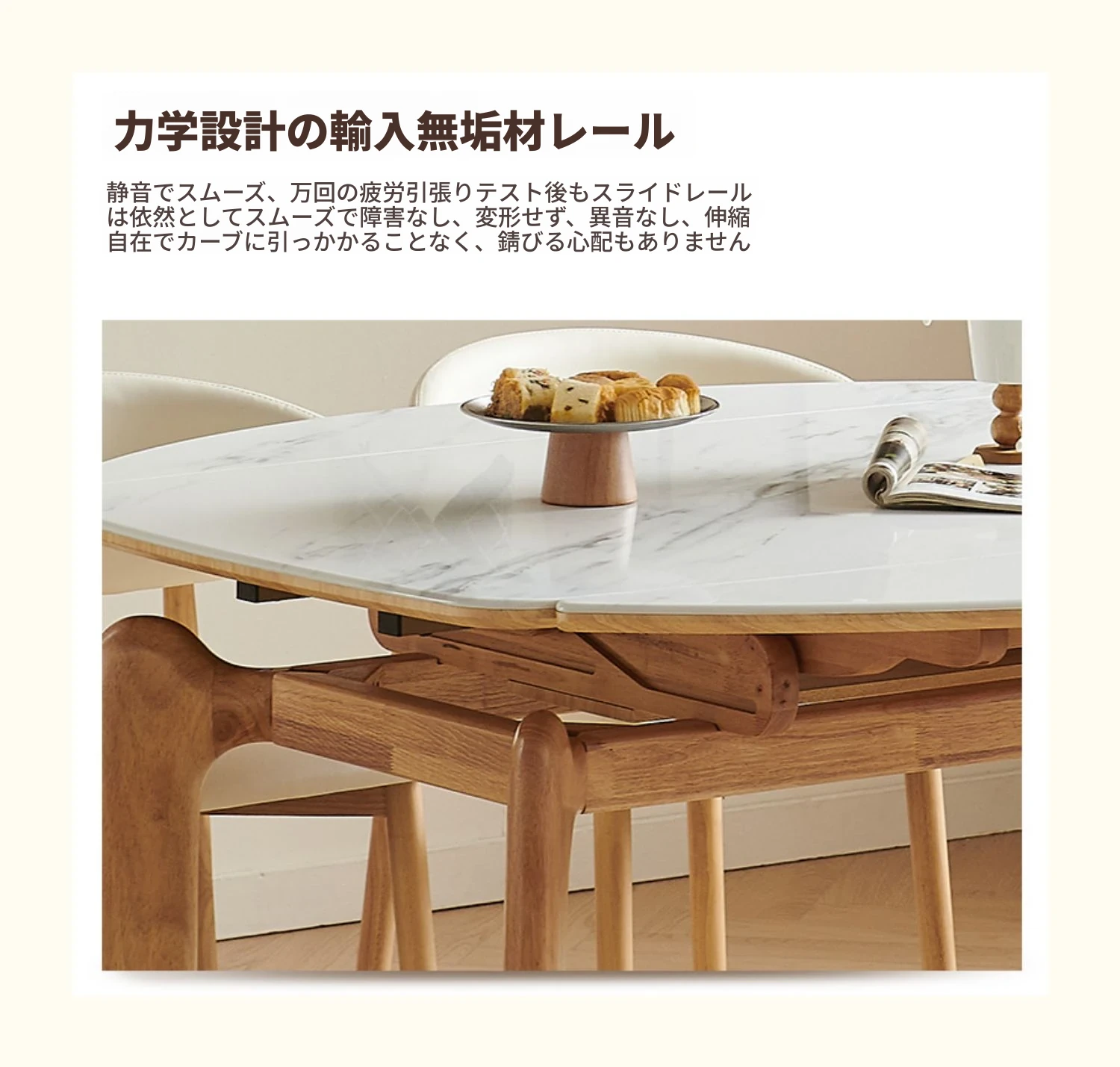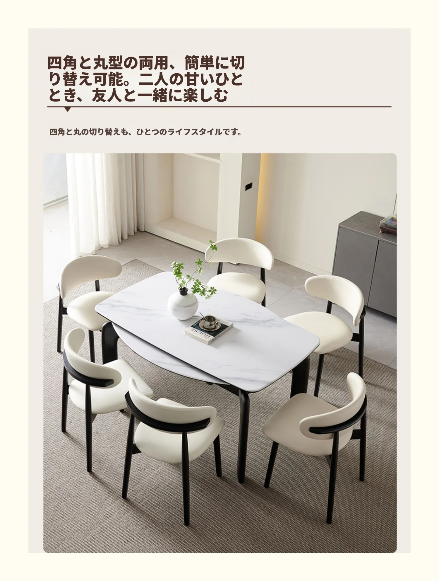 現代的なミニマリズム!折りたたみ式の微晶石ダイニングテーブル&チェアセット - 小さなスペースに最適な白アッシュ材使用。四角形と円形の2WAYデザインで、家族や友人との食事をスタイリッシュに楽しめます!